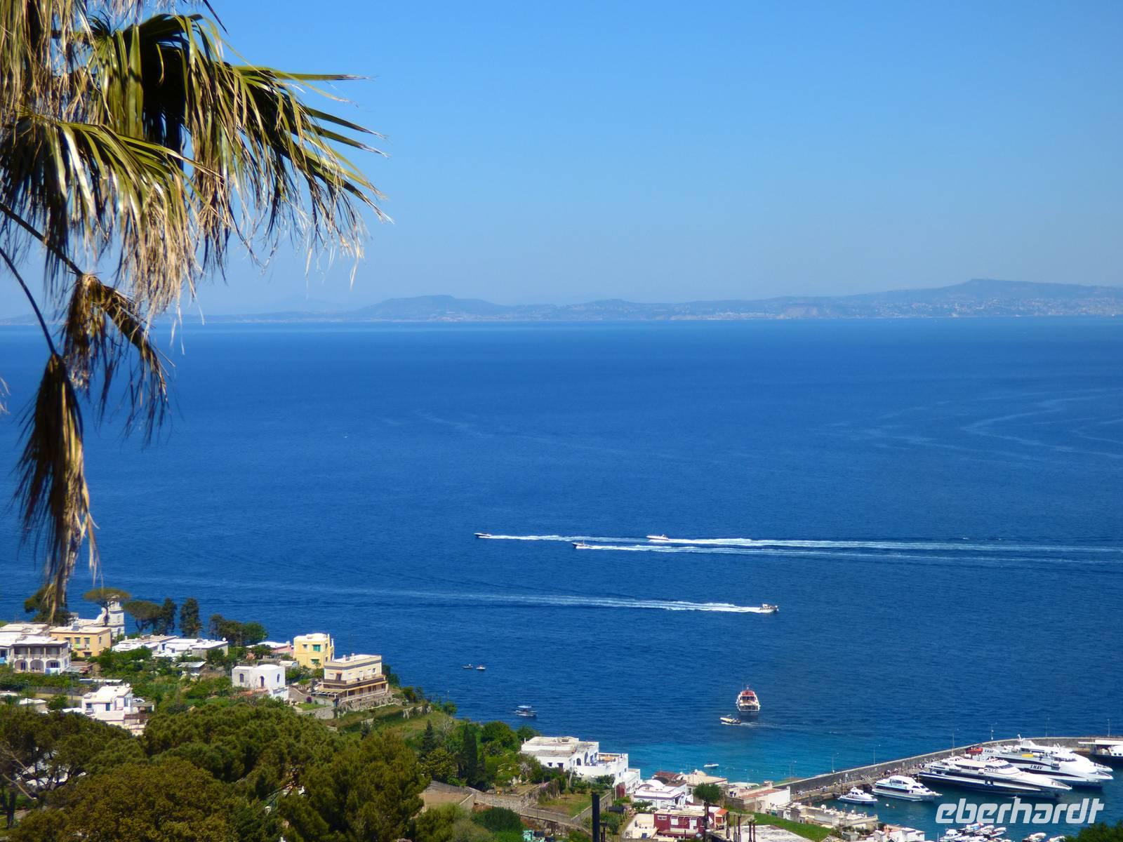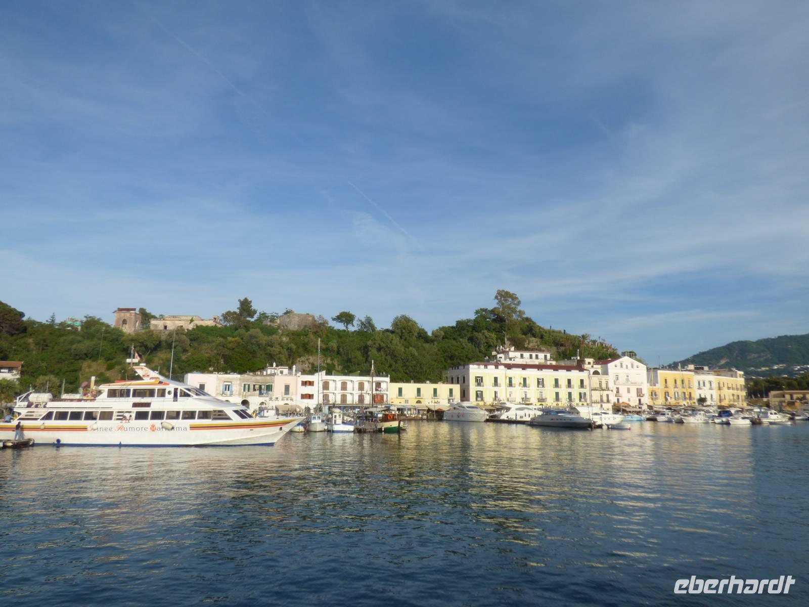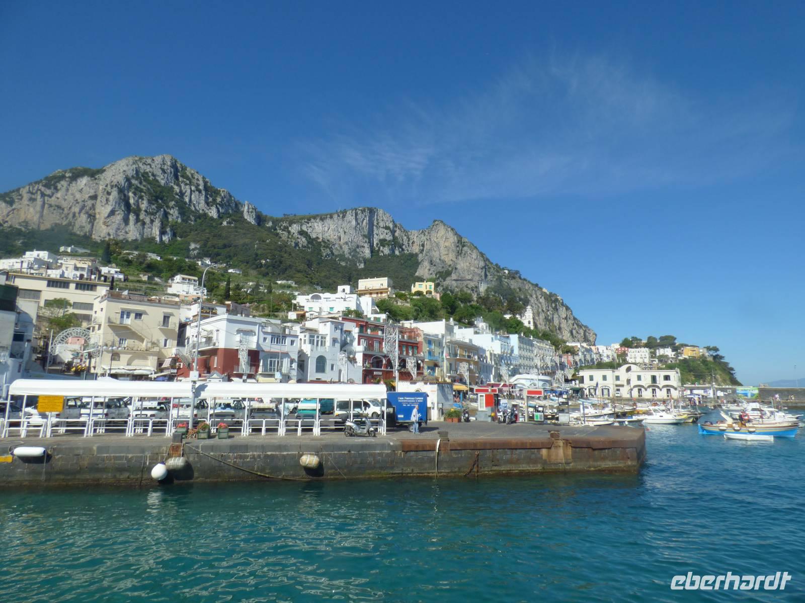 Die Sonne enttäuschte uns nicht und begrüßte uns bei angenehmen 29-30°C im Schatten. So setzten wir mit dem Schiff vom italienischen Festland auf die größte Insel des Golfs von Neapel über und genossen am Abend bereits den ersten „schönen Fisch" in unserem Hotelrestaurant.