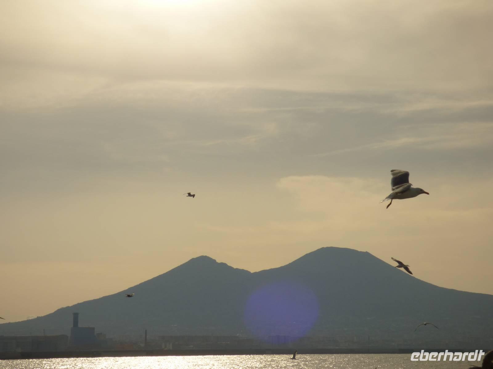 Der wohl längste Tag unserer Reise begann heute bereits um kurz nach halb 6 in der Früh. Wir brachen gen Hafen auf und genossen bereits auf dem Weg den herrlichen Sonnenaufgang. Schließlich fuhren wir hinüber auf's Festland und im Hafen von Pozzuoli empfing uns Antonio, der uns heute den Tag über die Schönheit der Gegend näherbrachte.