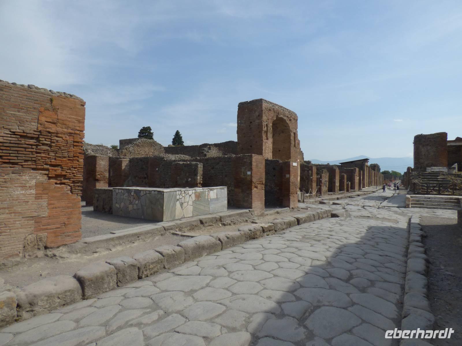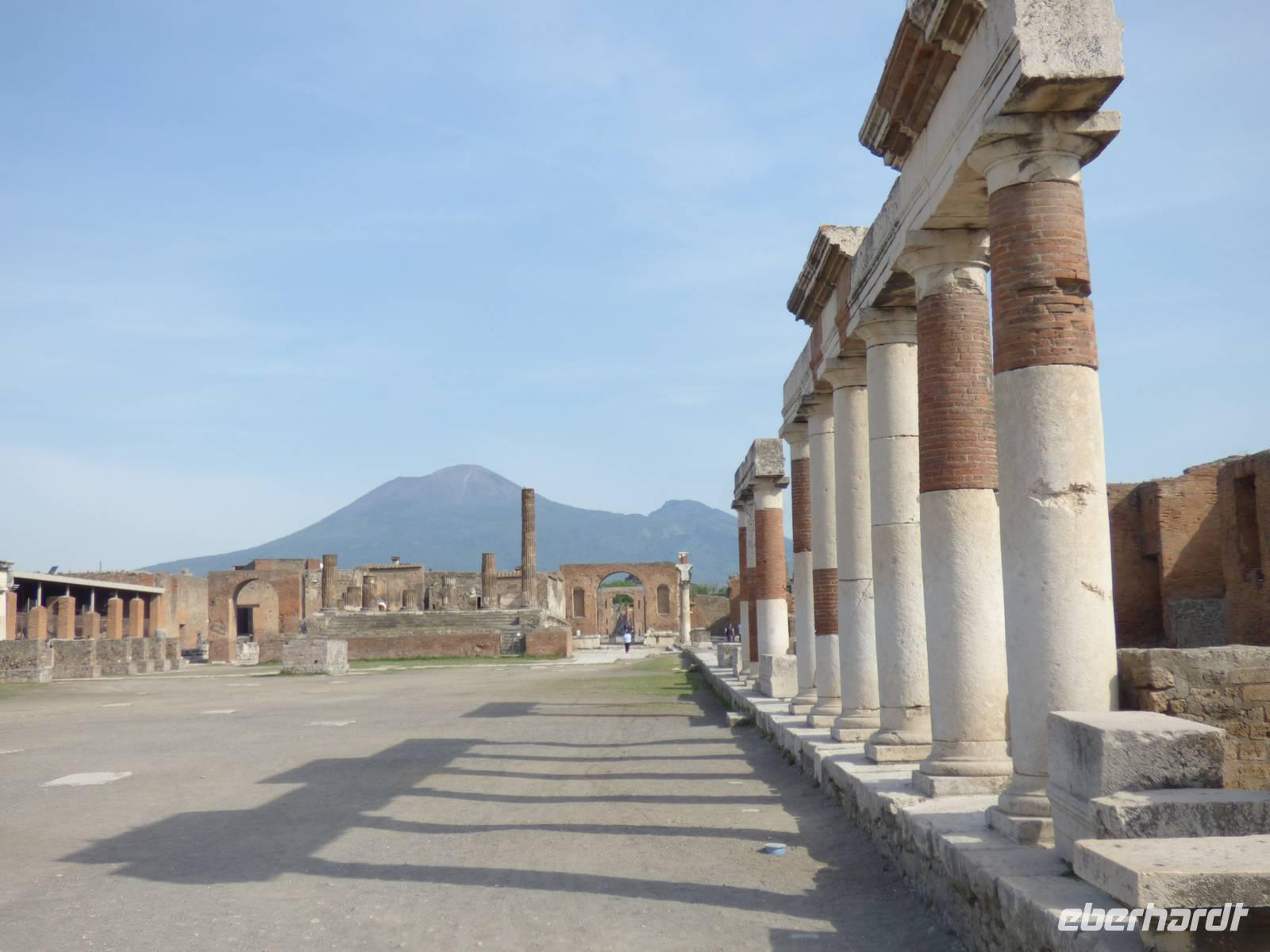 In Pompeji legten wir einen Stopp ein und erkundeten die staubigen Straßen der Stadt, welche früher einmal so belebt sein mussten und voll von Schlamm waren wie wir erfuhren. Wir hatten unsere Freude an den doch etwas speziellen Glückssymbolen der Stadt und lernten die Vorfahren von McDonald's, Burger Kind & Co. kennen.