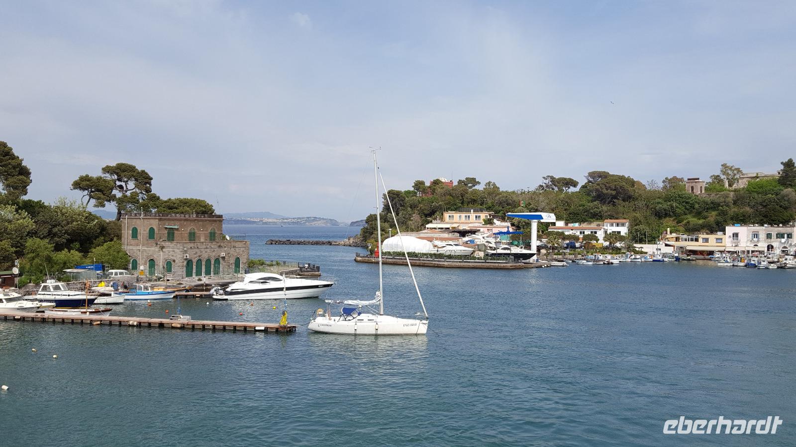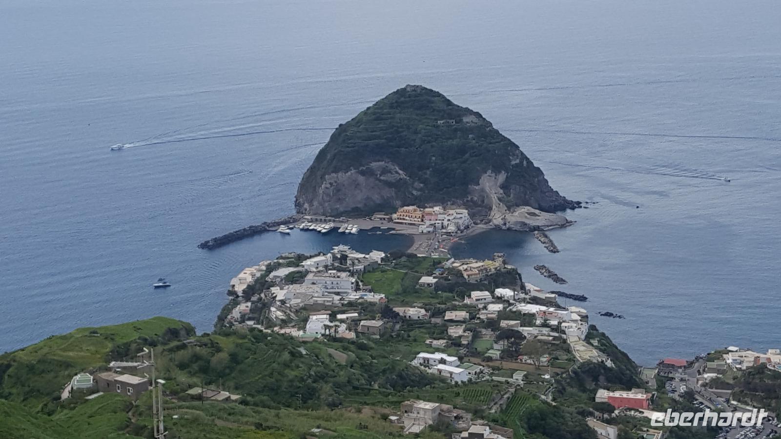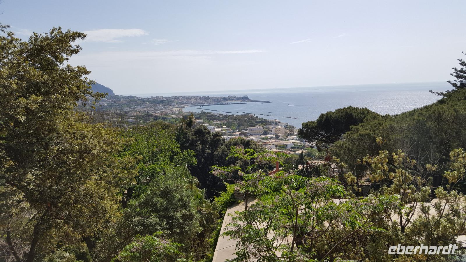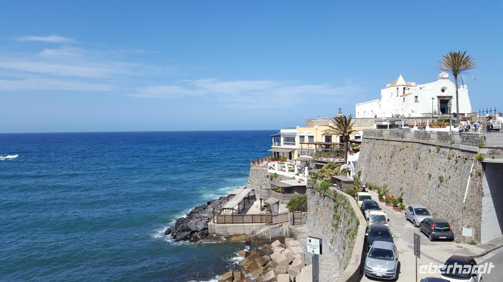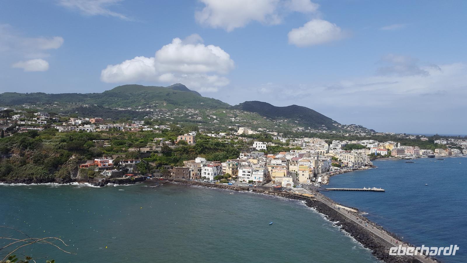 Wir passierten Lacco Ameno und nach wenigen Minuten erreichten wir Casamicciola Terme. Weiter folgten wir der Küstenstraße und erblickten den runden Naturhafen von Ischia Porto. Von dort aus führte die Straße steil hinauf in Richtung Barano.
