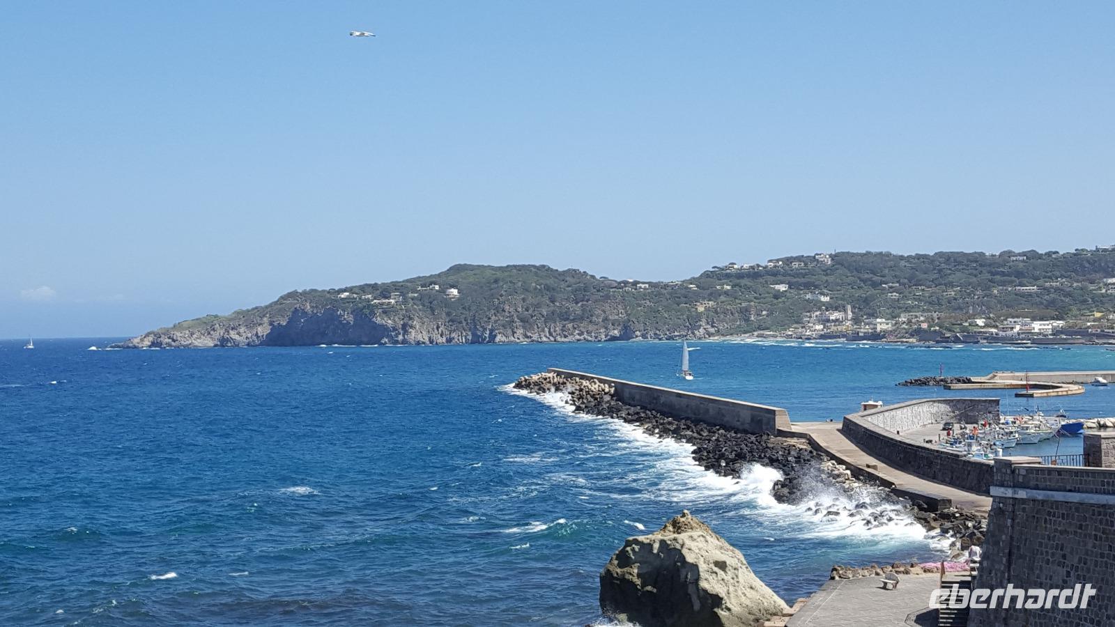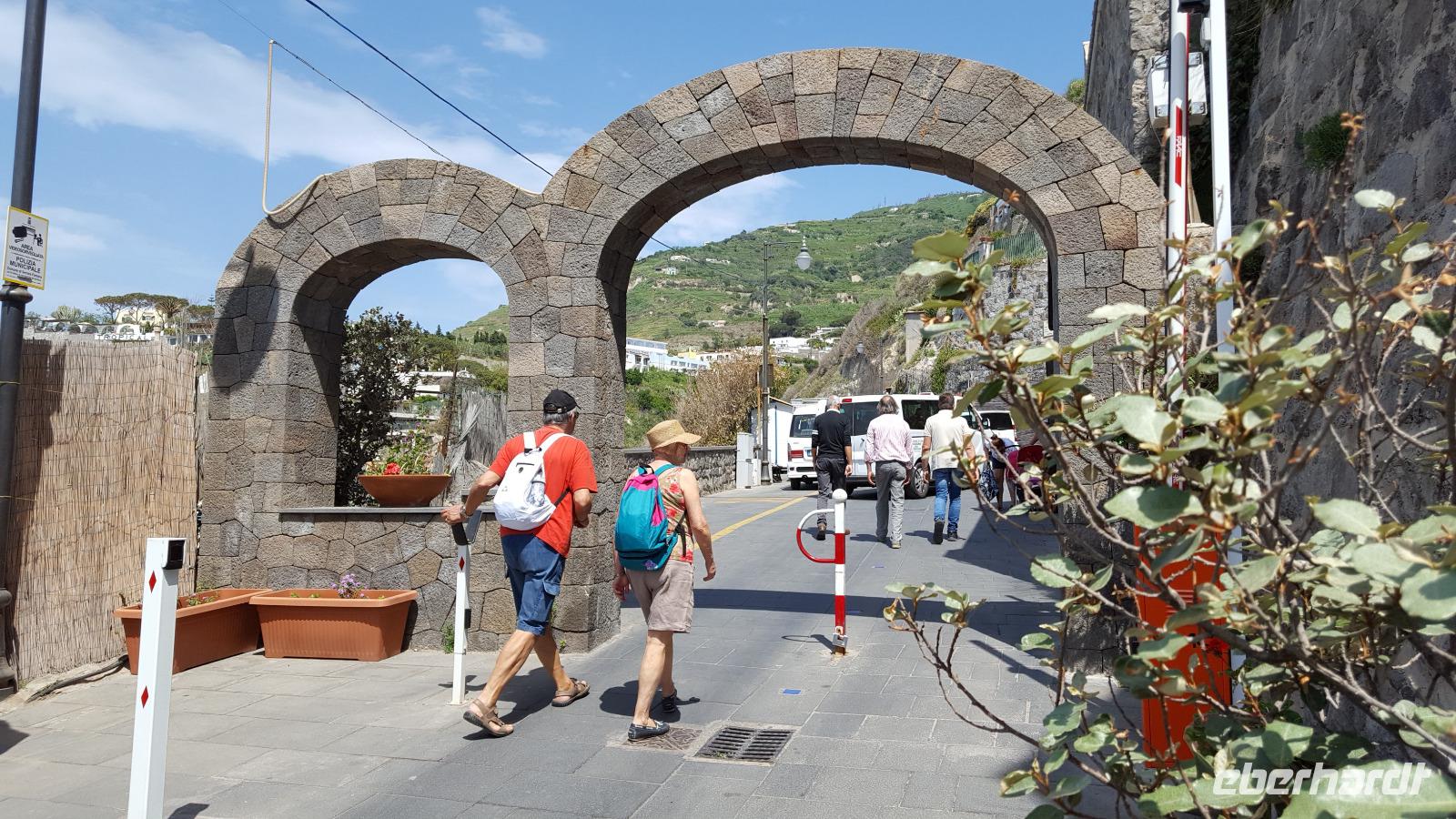 Nach der Besichtigung der Hauptkirche gelangten wir in wenigen Minuten zum aufgeschütteten Damm, der die Aragoner Burg mit Ischia Ponte verbindet.