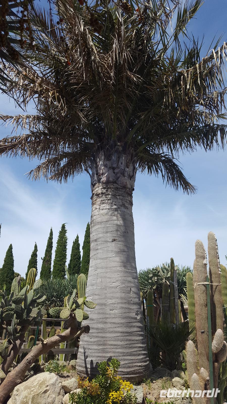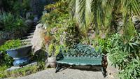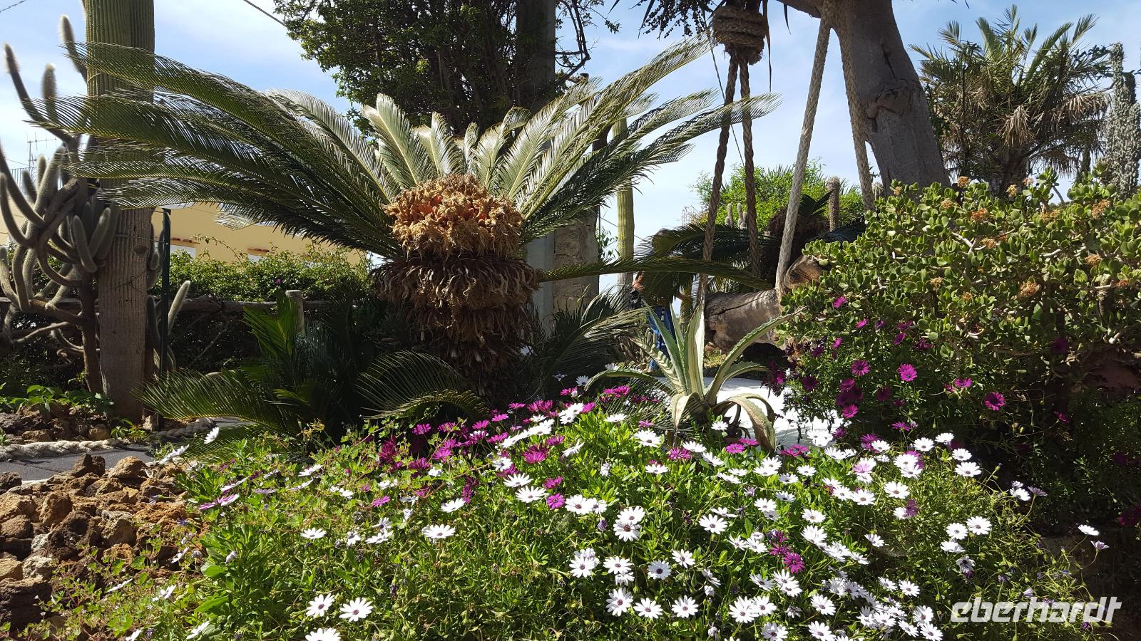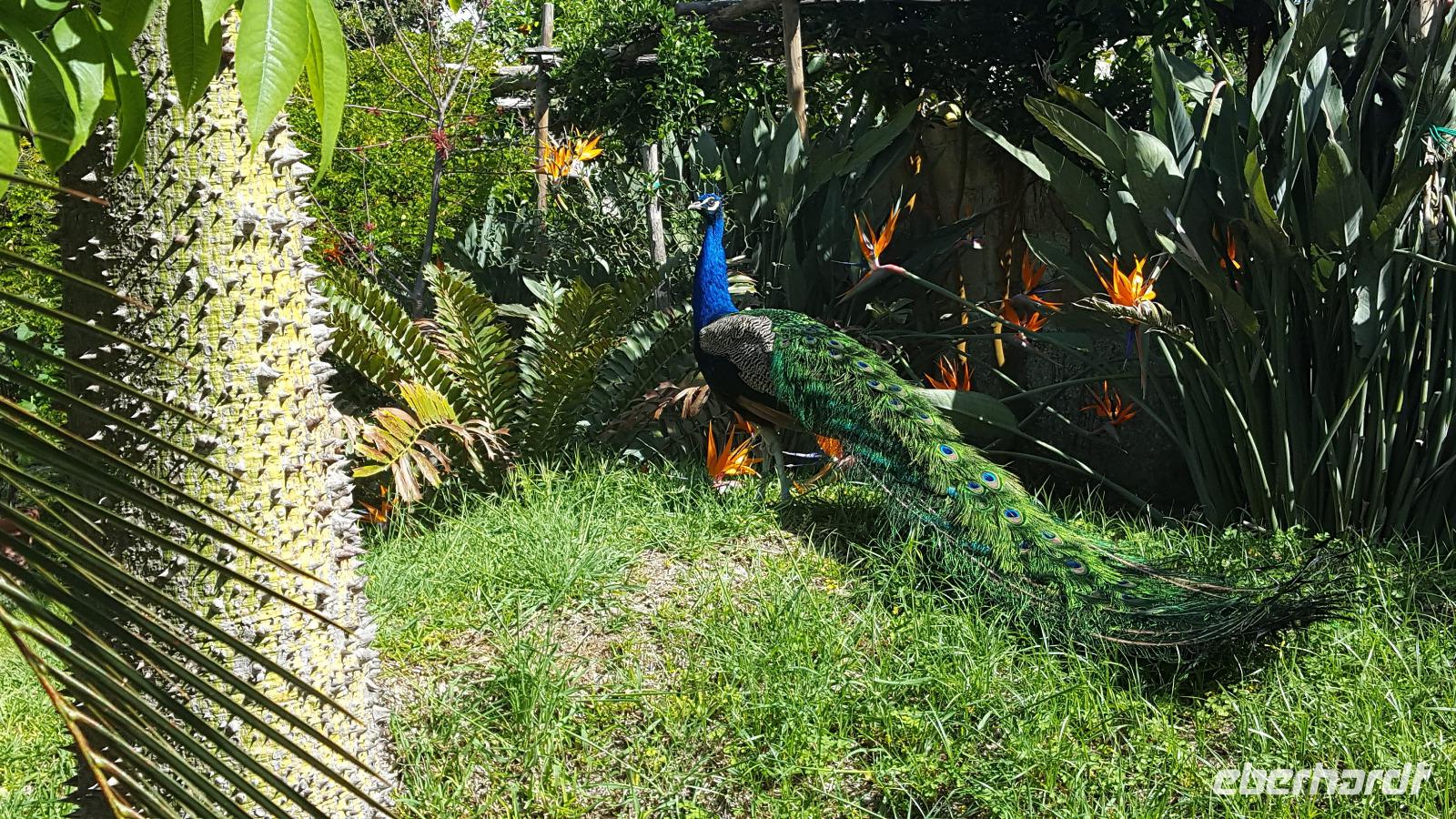 Es ist eine Harmonie von ca. 500 seltenen mediterranen und exotischen Pflanzen, die geschickt in Ebenen zu bestimmten Themen zusammengefasst wurden. Der ebenso abwechslungsreiche wie interessante Garten schlängelt sich terrassenförmig empor bis zum asiatischen Tee Haus und zum Sonnentempel. Wasserläufe und Teiche mit Springbrunnen verliehen dem Garten eine malerische Note.