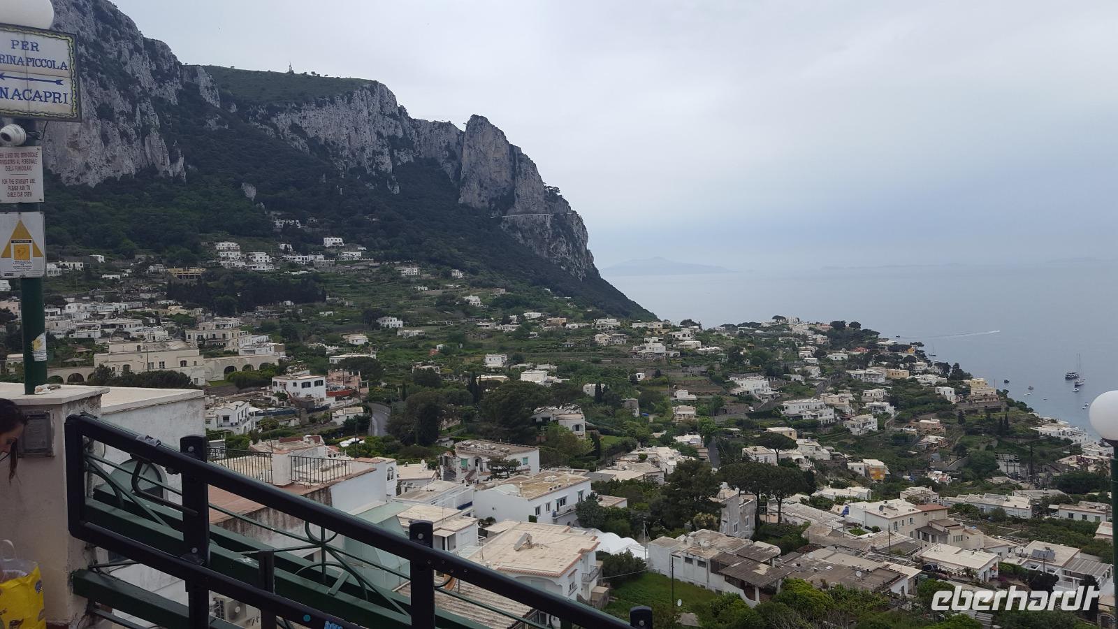 Voller Erwartungen fuhren wir mit der Schnellfähre um 8.00 Uhr ab Casamicciola nach Capri. Nach einer Stunde erblickten wir den Hafen von Marina Grande. Die Mini Busse standen bereit und wir fuhren nach Anacapri. Die schmalen Straßen beeindruckten uns immer wieder aufs Neue und sie schlängelten sich am zentralen Bergmassiv Monte Solaro empor.