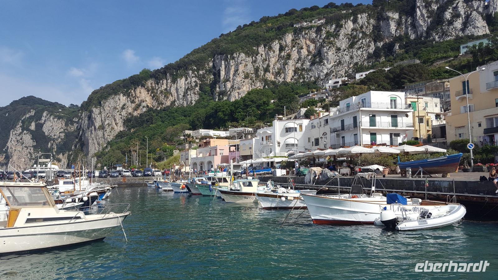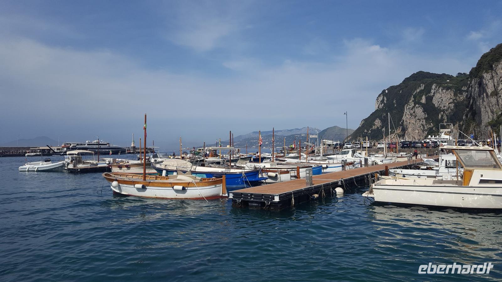 Die Vielfalt vom Vorspeisenteller war vorzüglich und der Tafelwein rundete das Mittagessen ab. Nach einem kurzen Spaziergang erreichten wir den Hafen von Marina Grande.