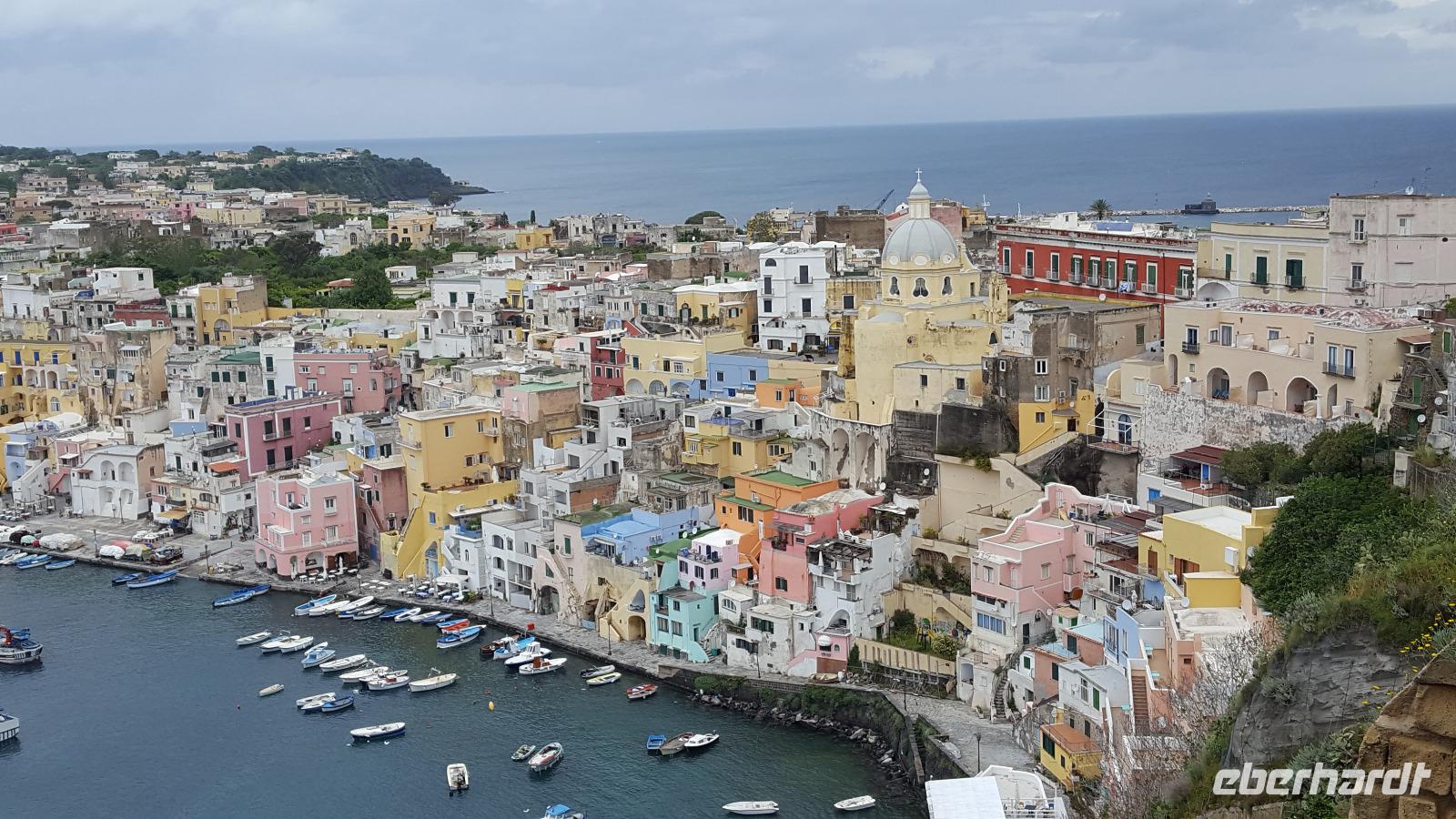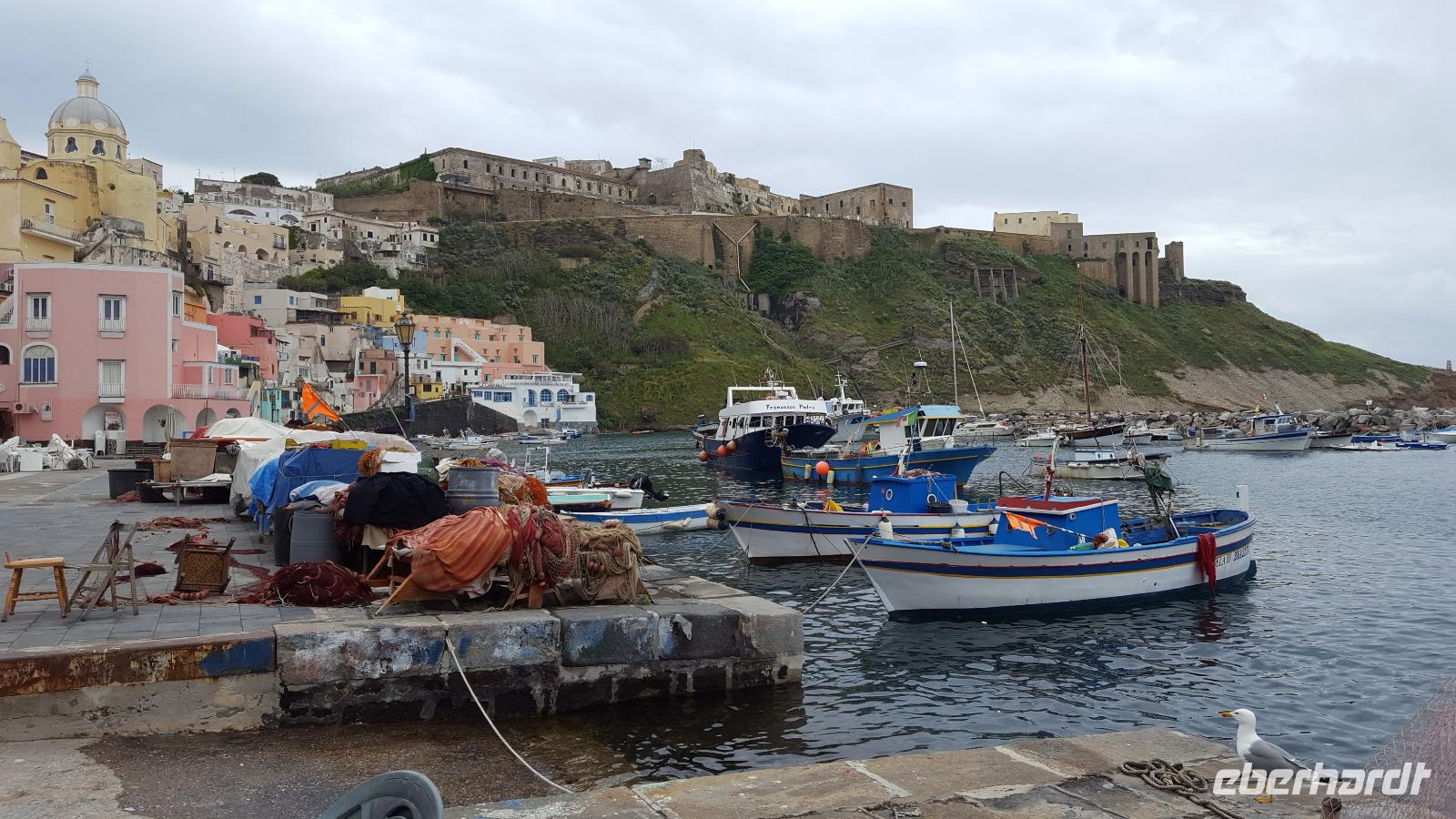 Etwas beschaulicher und ruhiger ging es nach dem Frühstück zu unserem nächsten Ziel, die Fischerinsel Procida. Ab dem Hafen in Casamiccola begleitete und Heike, die örtliche Reiseleiterin. In einer knappen halben Stunde mit der Schnellfähre erreichten wir den Hafen Marina Grande auf Procida.