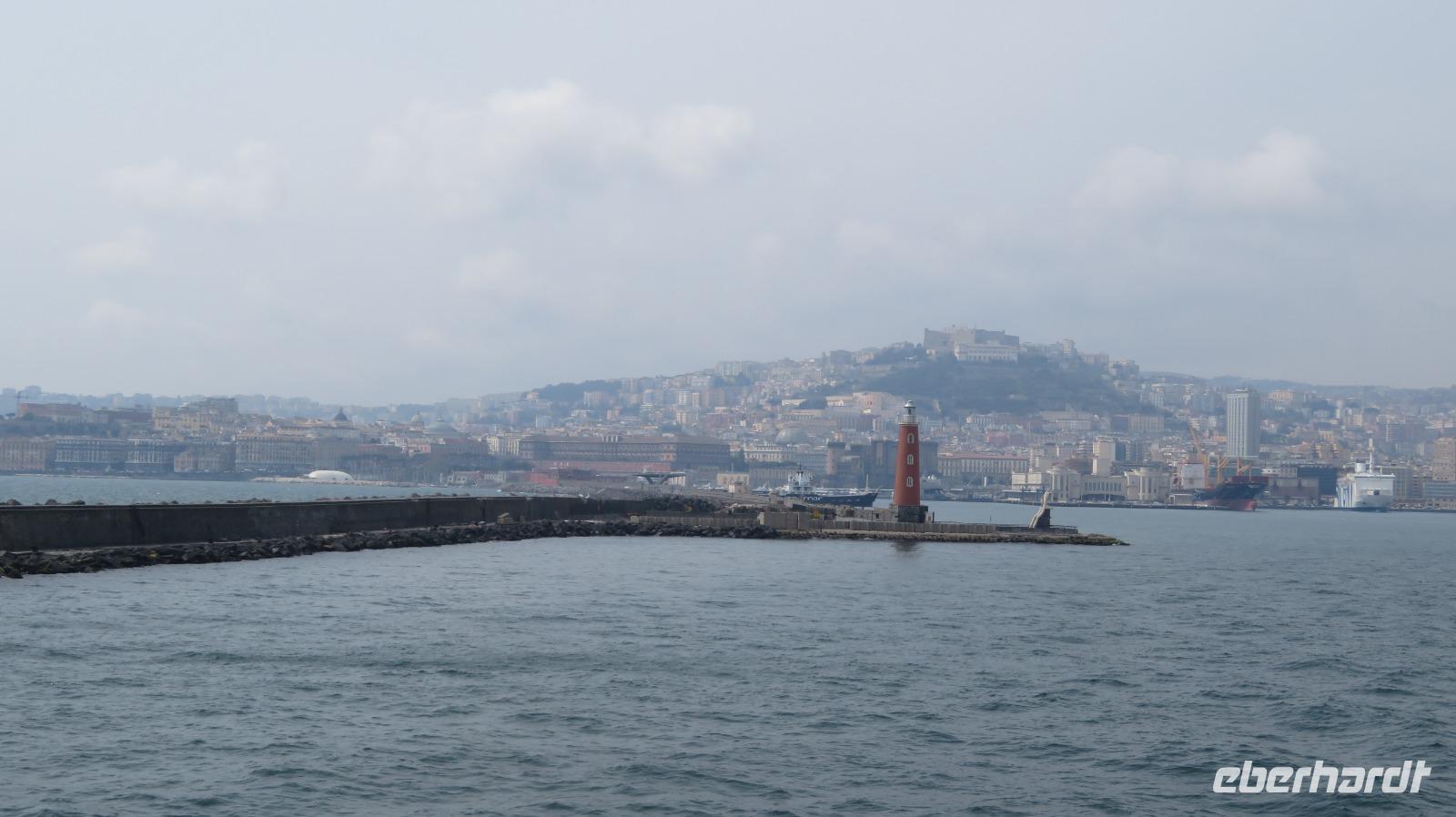 Hier werden wir am Flughafen von unserer örtlichen Agentur in Empfang genommen und zum Hafen von Neapel gebracht, wo der andere Teil der Reisegruppe, die von Leipzig, Frankfurt, Zürich angereist sind, schon wartet.