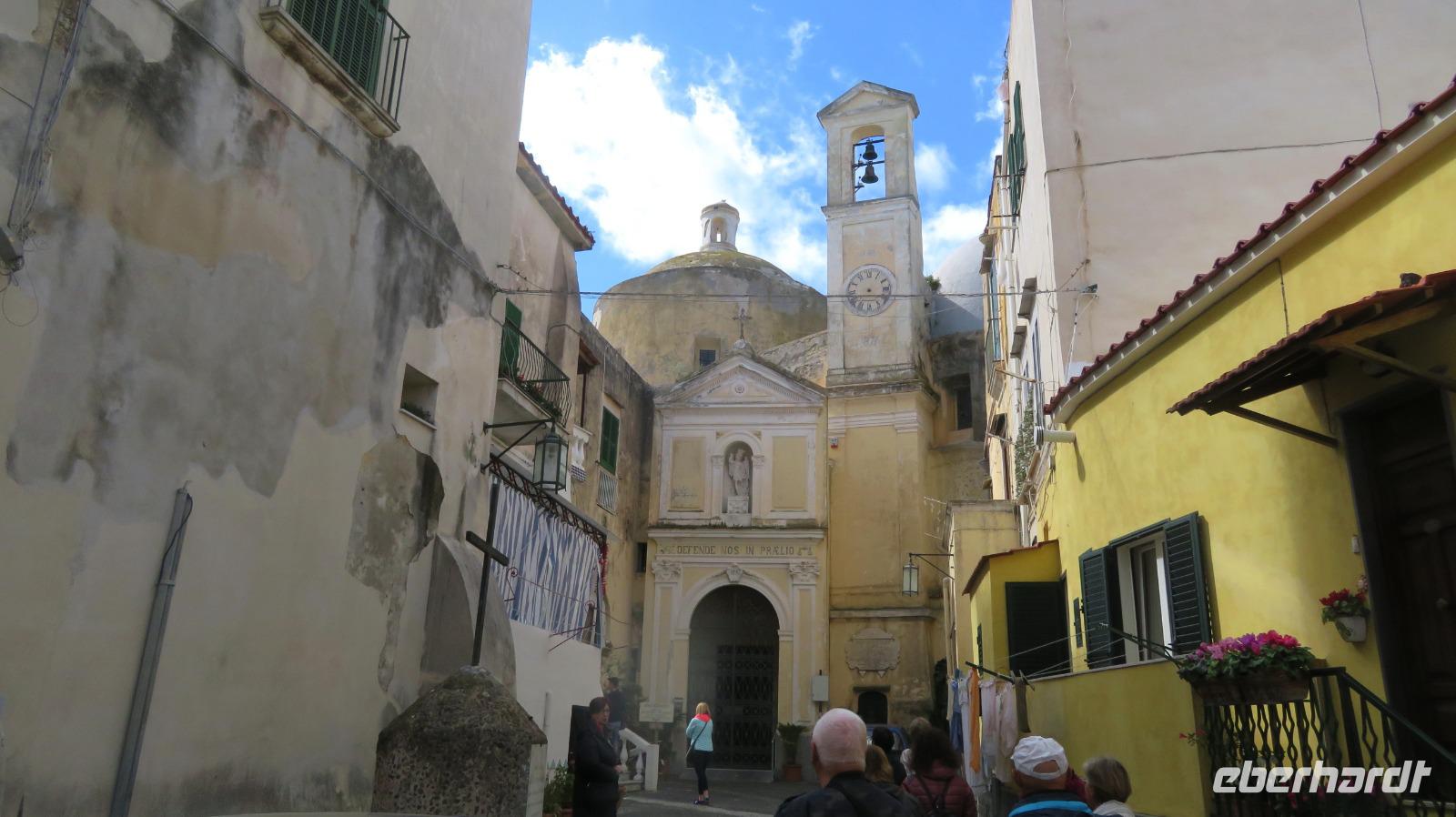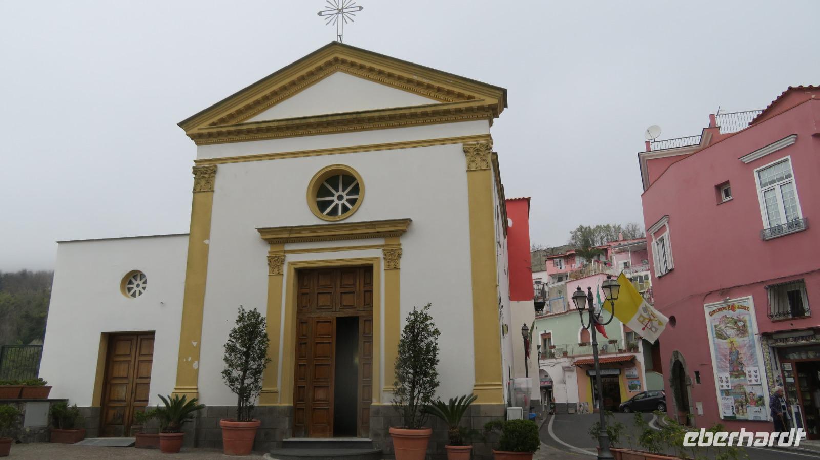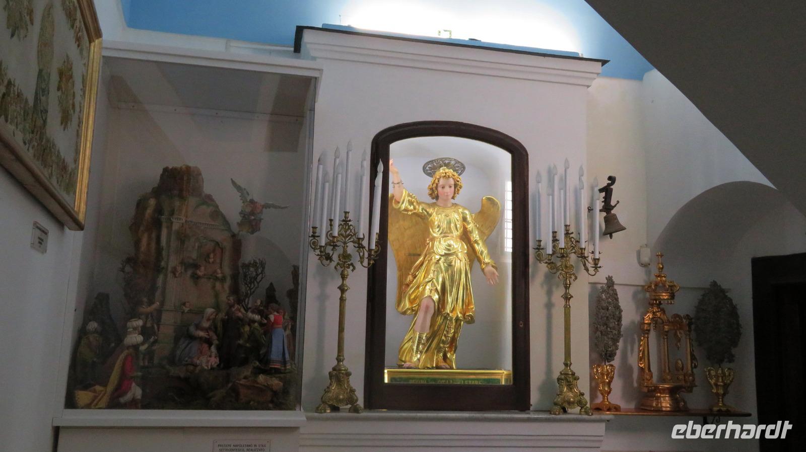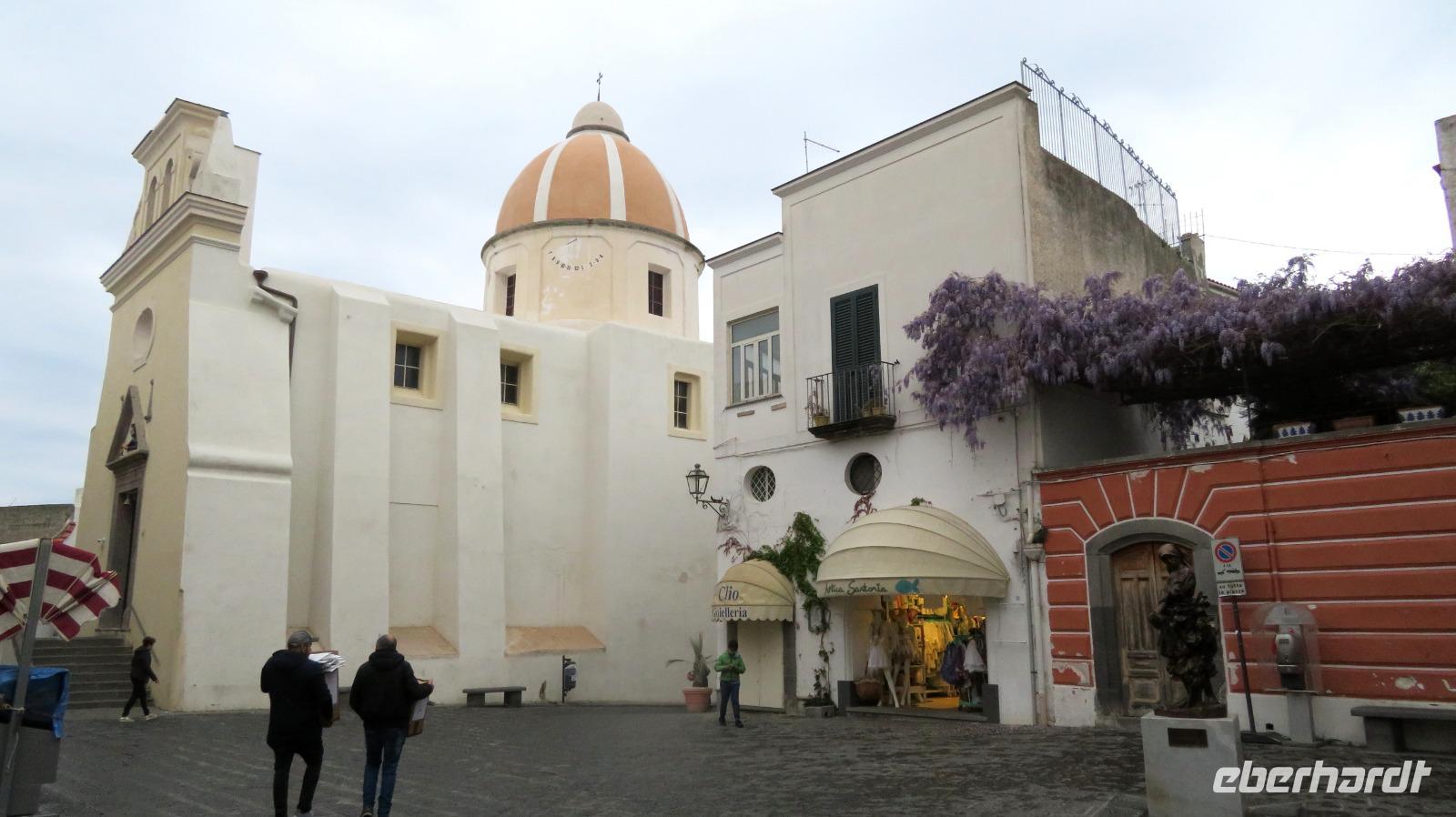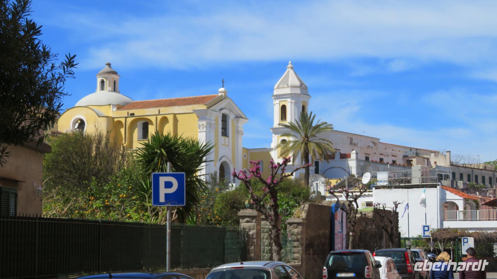 Mit Gaby fahren wir ins nahe Zentrum von Forio. Gemeinsam besichtigen wir die Stadt, bummeln durch die engen Gassen zur Kirche Santa Maria dell Soccorso. Leider ist sie eingerüstet, da sie gerade restauriert wird. Auch die Kirche Arciconfraternita di Santa Maria Visitapoveri besichtigen wir, wo uns u.a. besonders der goldene Engel beeindruckt, der während der Osterprozession durch die Straßen von Forio getragen wird.