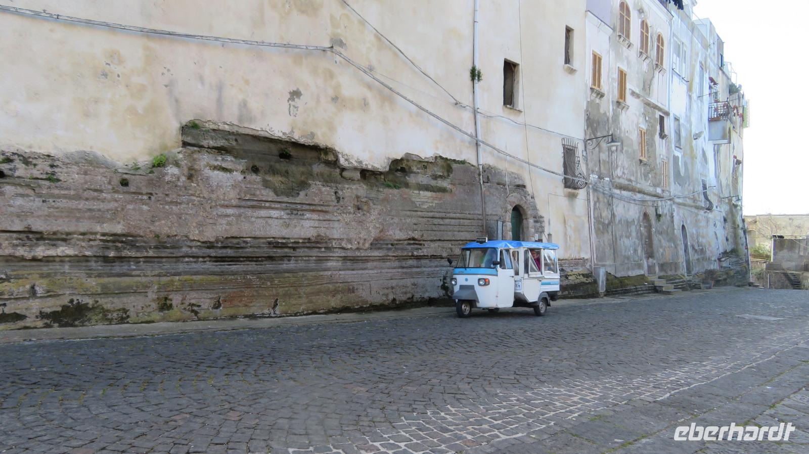 Drei Microtaxis bringen uns durch die engen Straßen auf den Hügel mit dem Castello und der Kirche des Heiligen Michael.