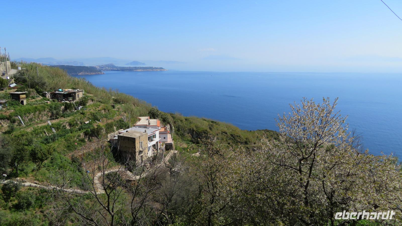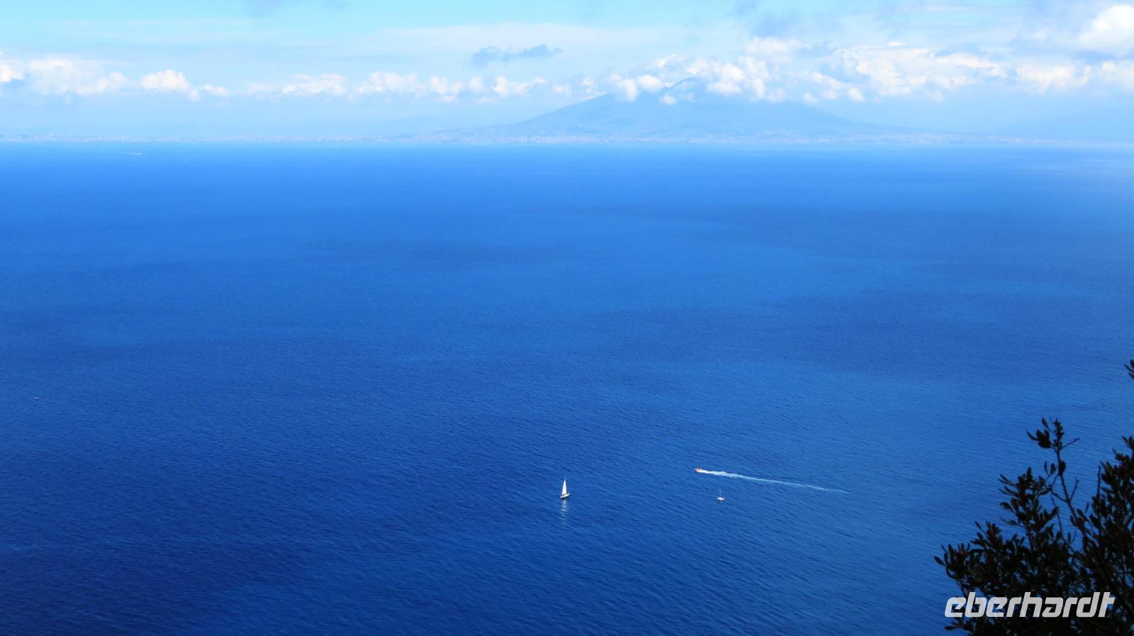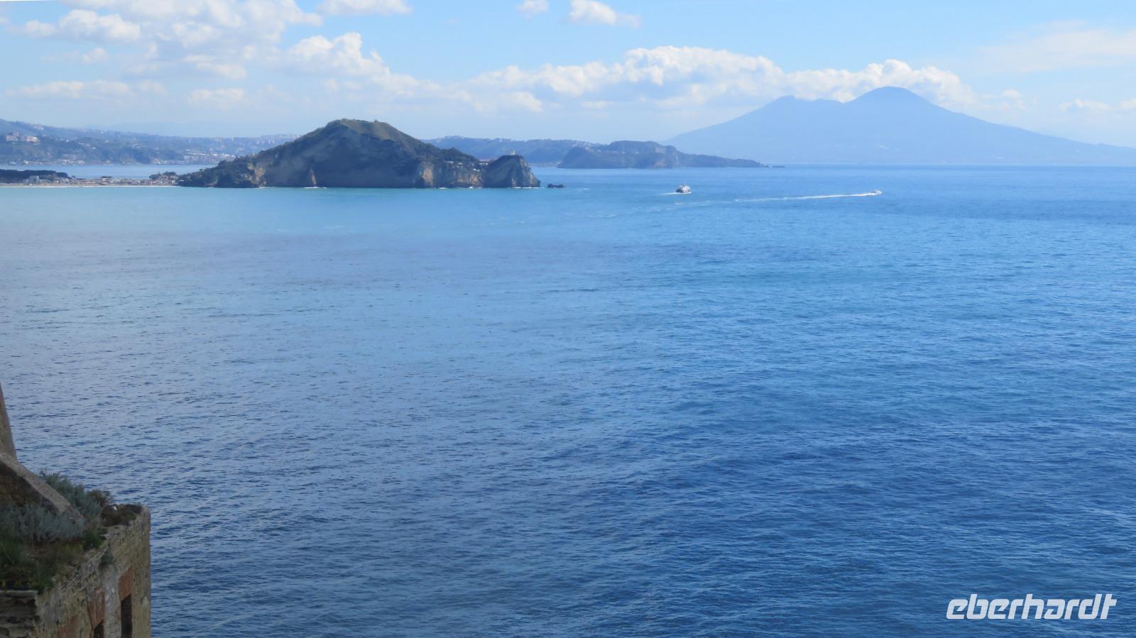 Beeindruckt sind wir vom Blick über den Golf von Neapel, zum Festland mit dem Vesuv, zur Sorrentinischen Halbinsel und zur Insel Capri.