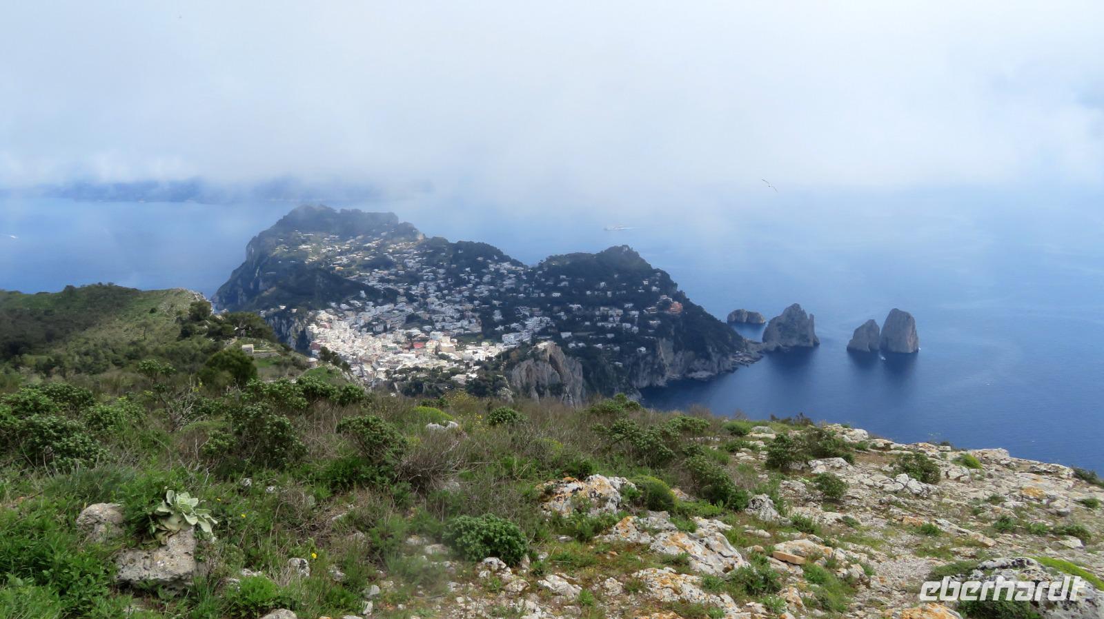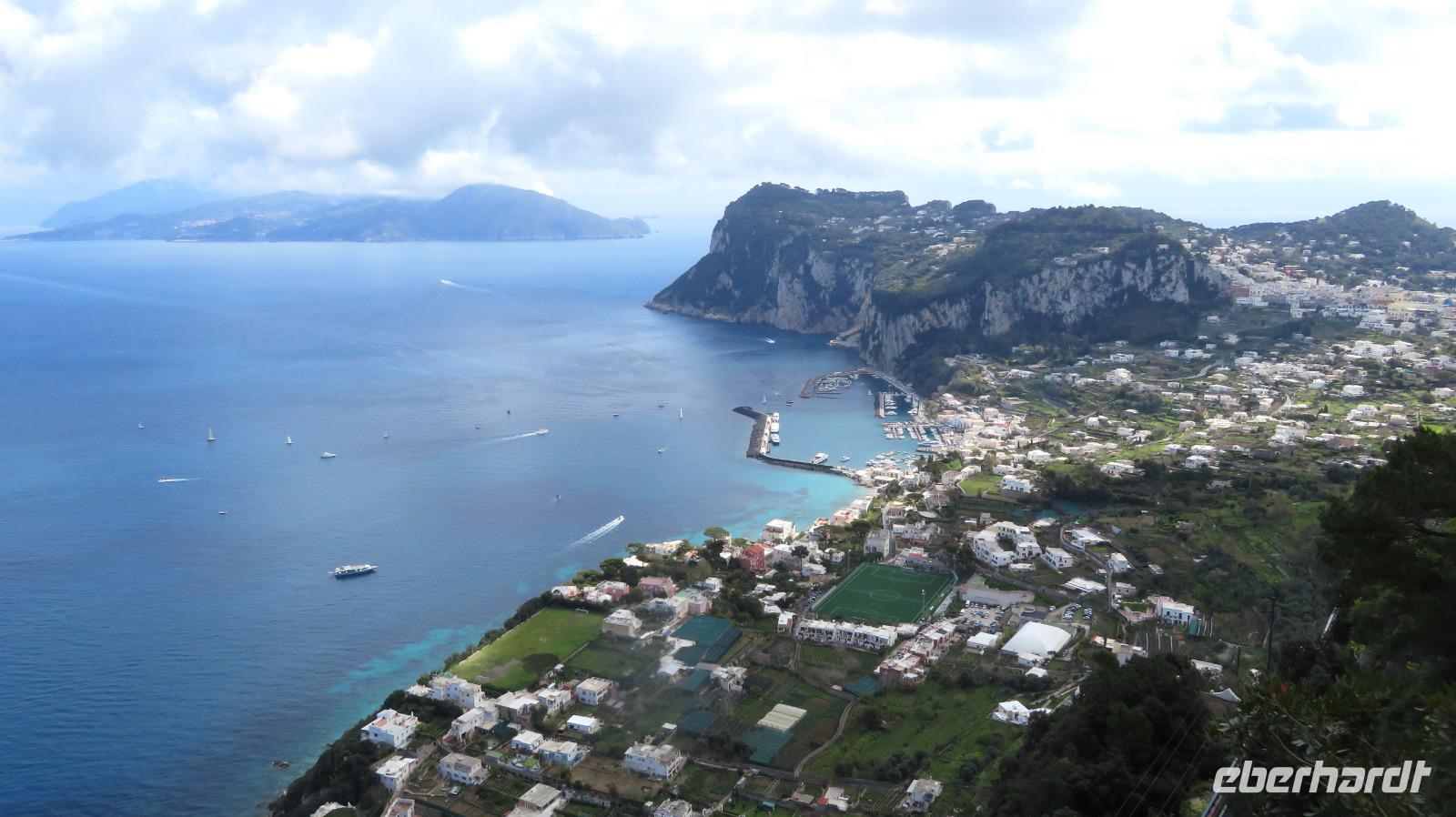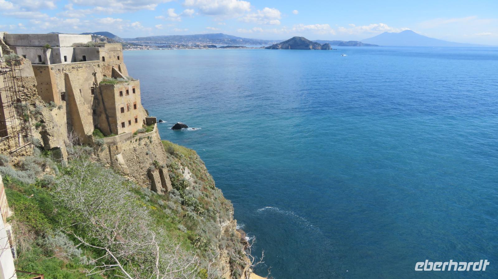 Beeindruckt sind wir vom Blick über den Golf von Neapel, zum Festland mit dem Vesuv, zur Sorrentinischen Halbinsel und zur Insel Capri.