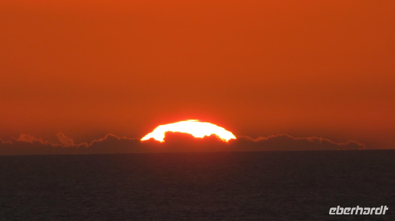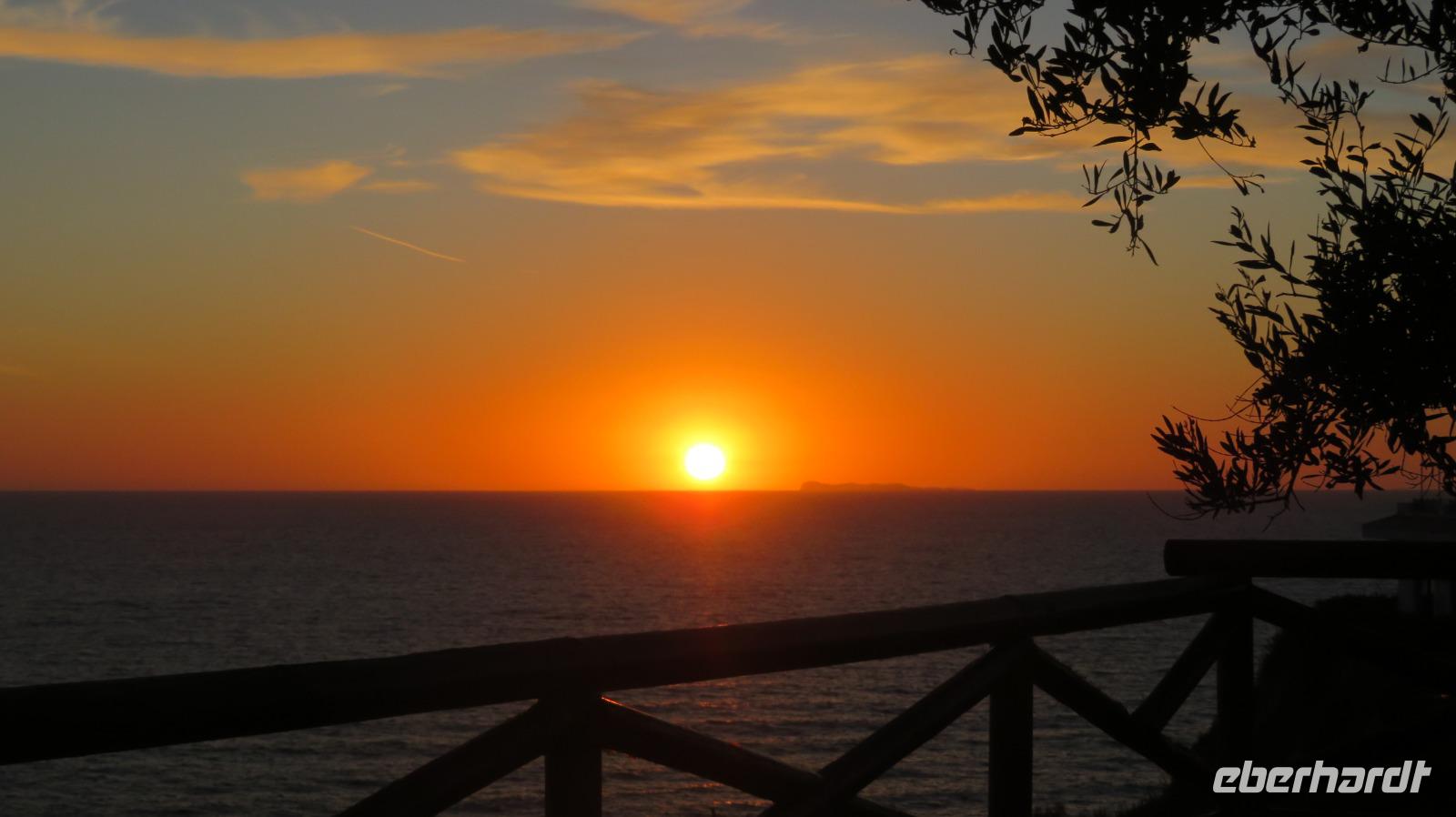 Vorher können wir aber noch einen besonders schönen Sonnenuntergang verfolgen, "wenn bei Capri (oder Ischia) die rote Sonne im Meer versinkt ...", wir können das Rot bestätigen!