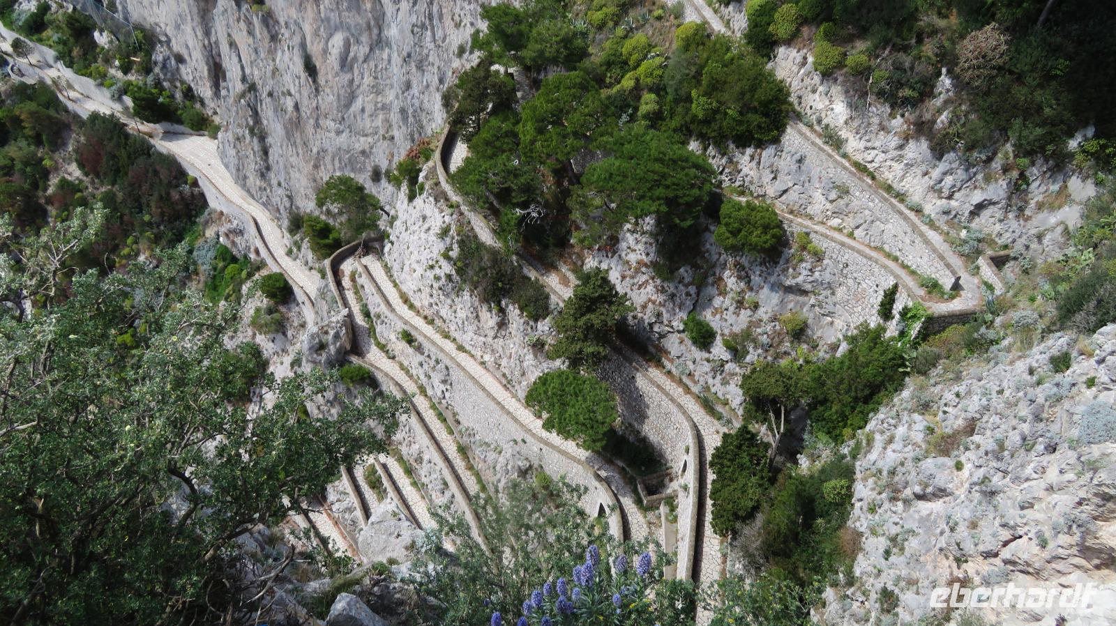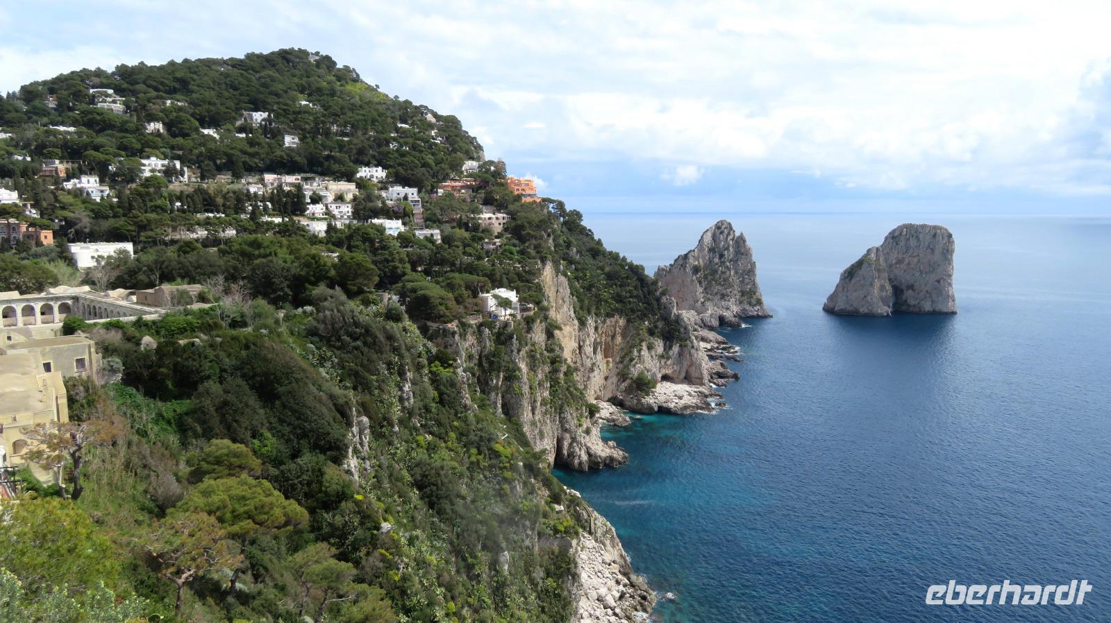 In Capri bummeln wir mit Vincenzo zu den Augustusgärten, um von dort einige Fotos von den Faraglioni-Inseln und der Via Krupp zu schießen.