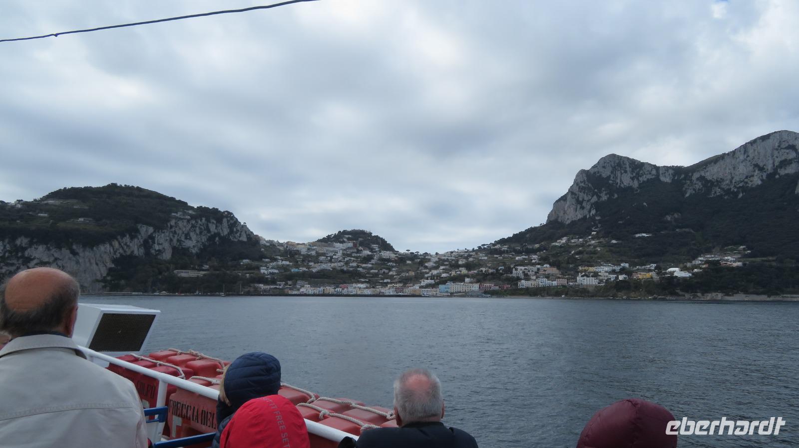 Heute frühstücken wir schon 7:00 Uhr, denn 8:00 Uhr bringen uns die Kleinbusse zum Hafen von Forio. Mit unserem Inselführer Vincenzo fahren wir mit dem Schiff zur Insel Capri. Wir erleben noch eine kleine Inselrundfahrt um Ischia, da wir noch drei andere Häfen anfahren, um Gäste mitzunehmen.