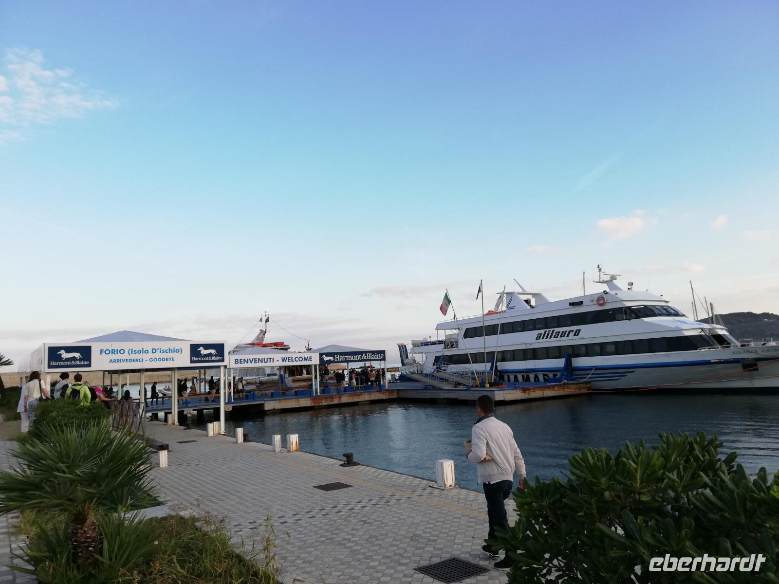 gegen 07.45 Uhr werden wir mit einem Bus vom Hotel abgeholt und zum Hafen nach Ischia Porto gefahren. Hier treffen wir Giovanni, der mit uns nach Neapel fährt, uns zum Flughafen bringt und sich herzlich verabschiedet.