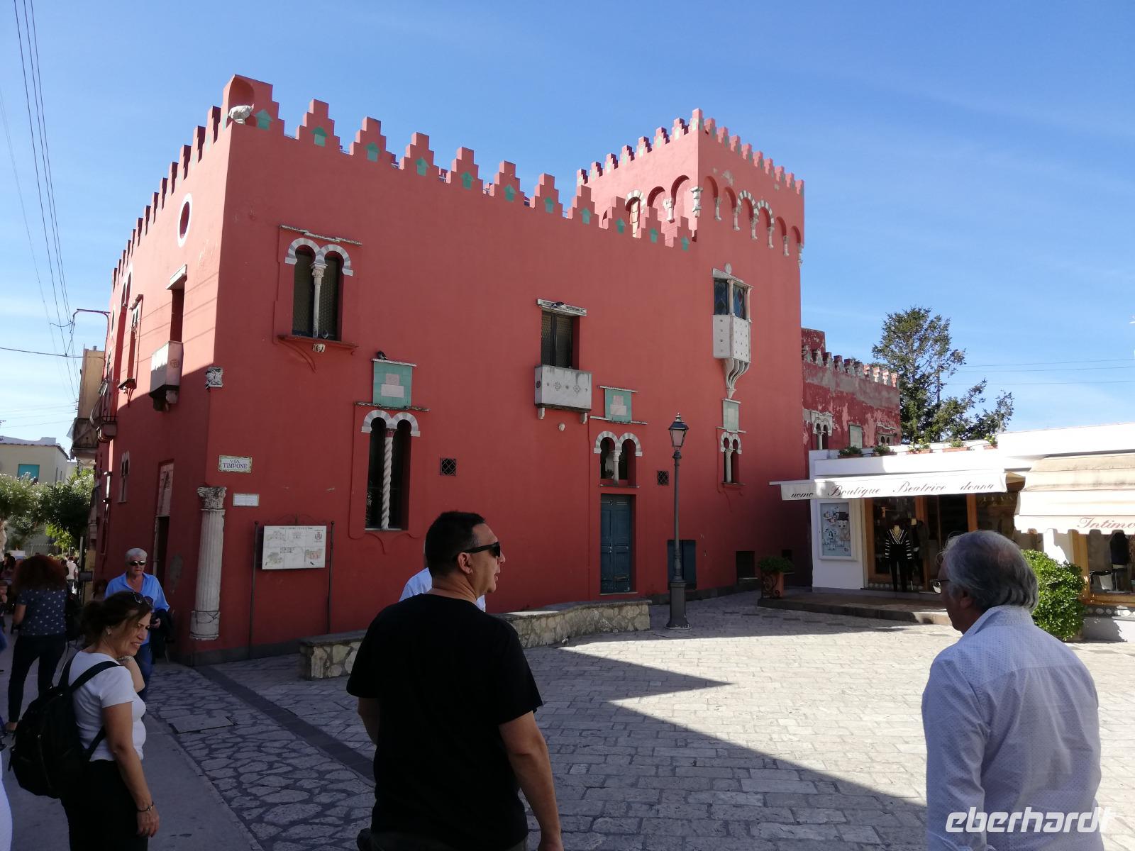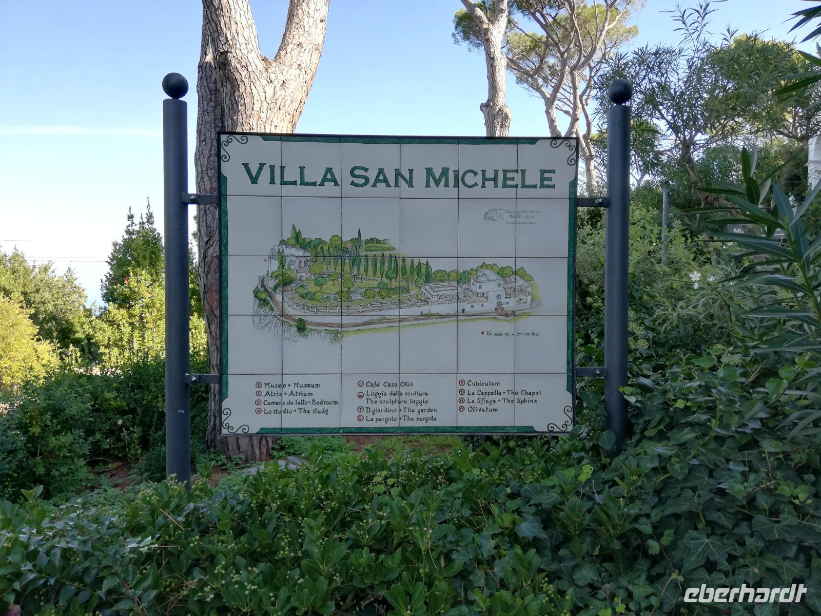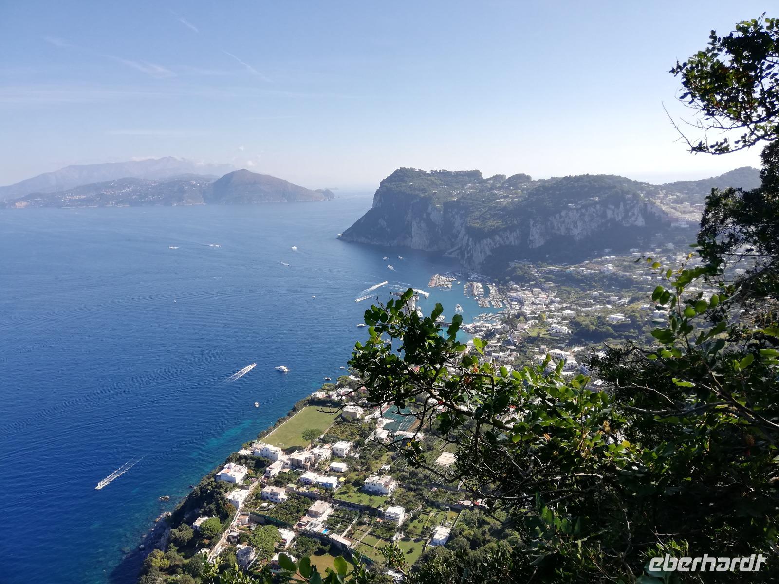 Mit einem Kleinbus werden wir vom Hotel abgeholt und fahren zum Hafen in Forio. Hier wartet schon Giovanni mit unserer örtlichen Reiseleiterin Rosanna auf uns. Die Überfahrt nach Capri von Forio aus, gibt uns die Möglichkeit die Häfen weiterer Orte zu sehen. Nach ca. zwei Stunden Schifffahrt sind wir auf Capri. Im Hafen Marina Grande wartet schon ein Bus auf uns und bringt uns entlang der aussichtsreichen Serpentinenstraße hinauf nach Anacapri. Unsere ganze Aufmerksamkeit gilt hier der Villa San Michele. Es war der schwedische Arzt und Schriftsteller Alex Munthe, der sich hier einen Traum erfüllte und sich sein Wohnhaus von 1896-1910 erbauen ließ. Anschließend kann jeder die Zeit nutzen, wie er es möchte. Einige genießen den Aufenthalt in der Villa bei einem Kaffee, andere fahren mit dem Sessellift von Anacapri zum Gipfel des 589 m hohen Monte Solaro, von wo sich eine großartige Aussicht bietet.