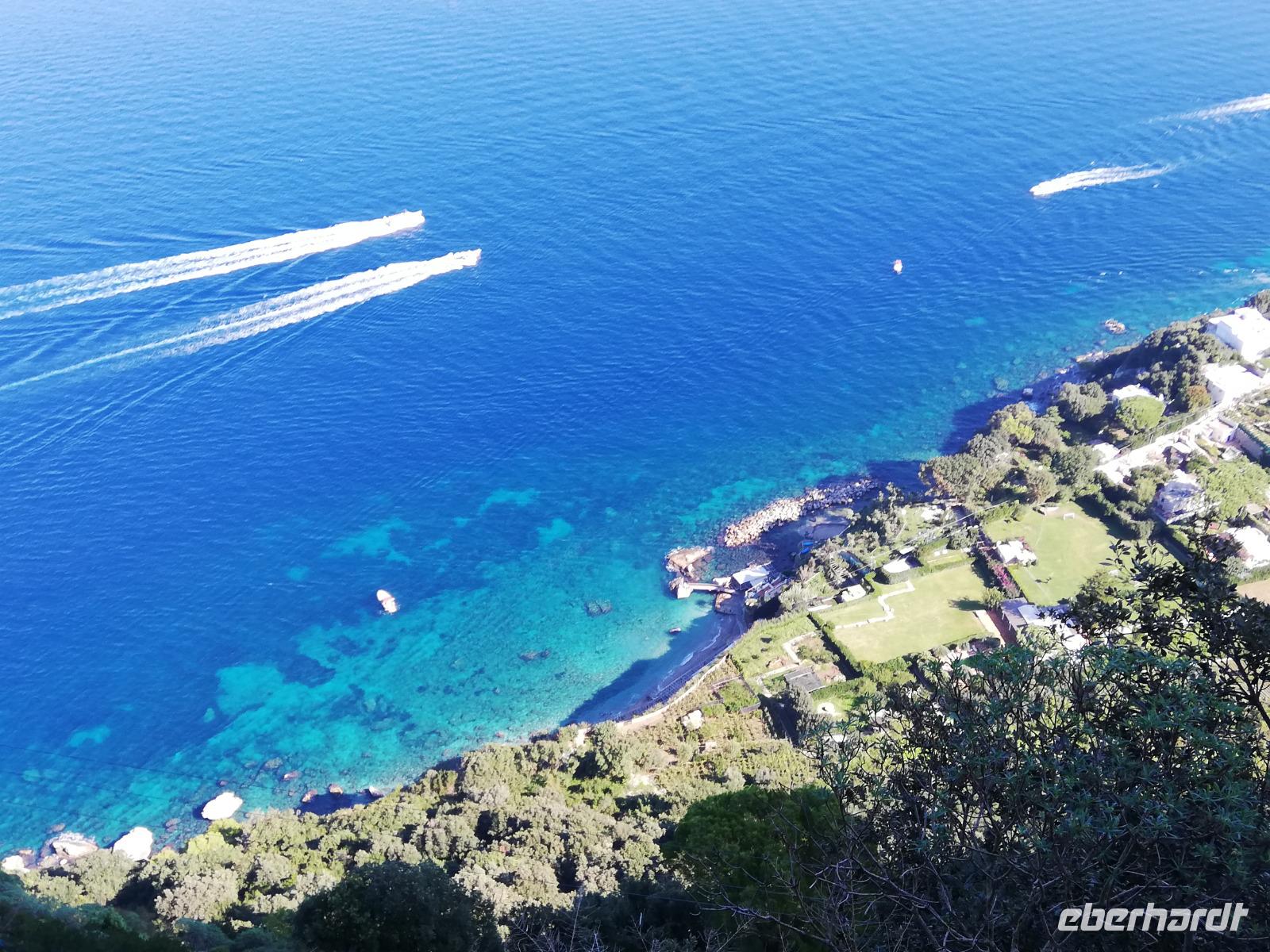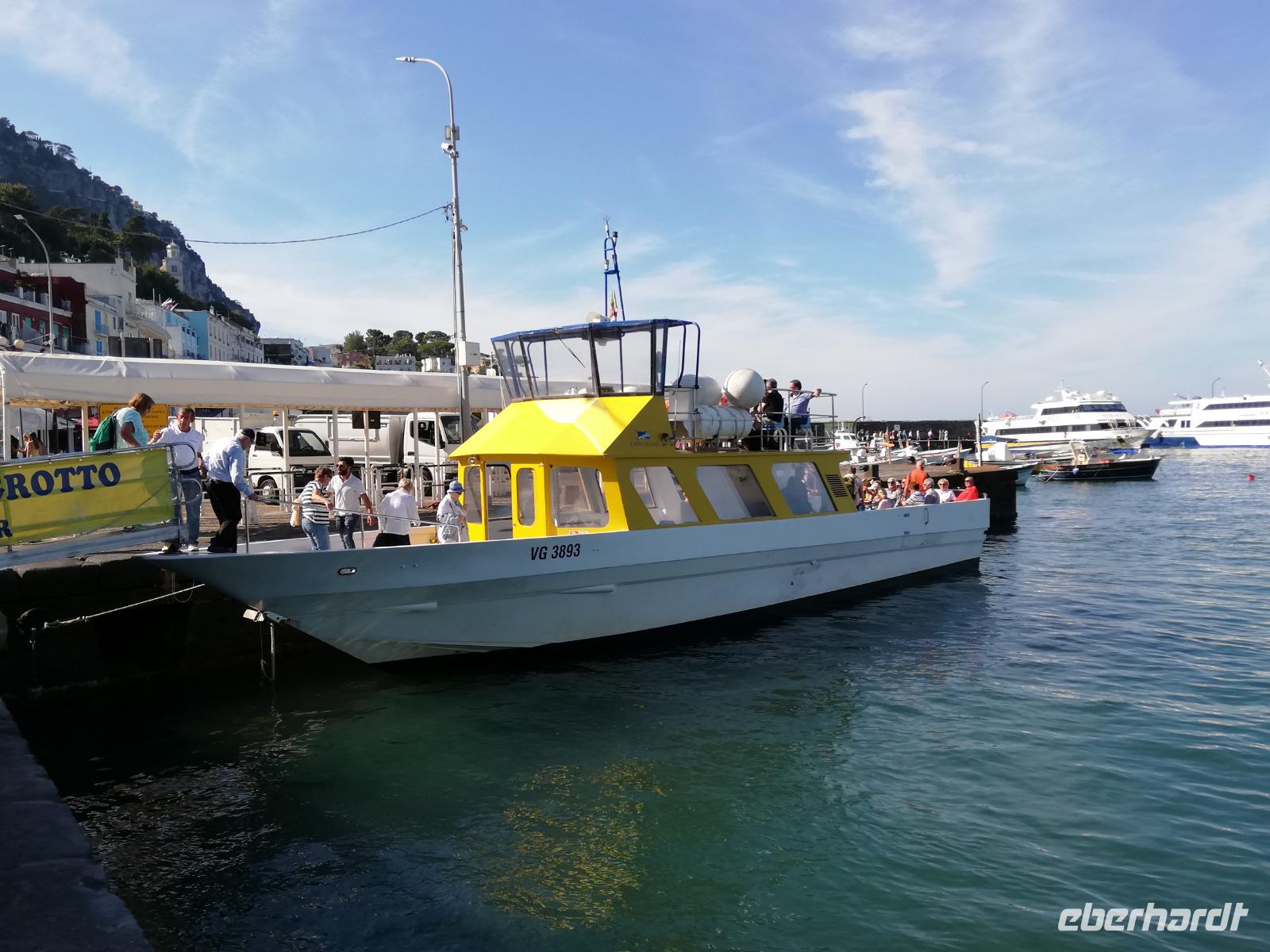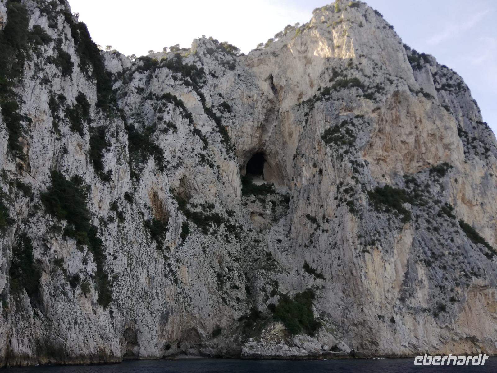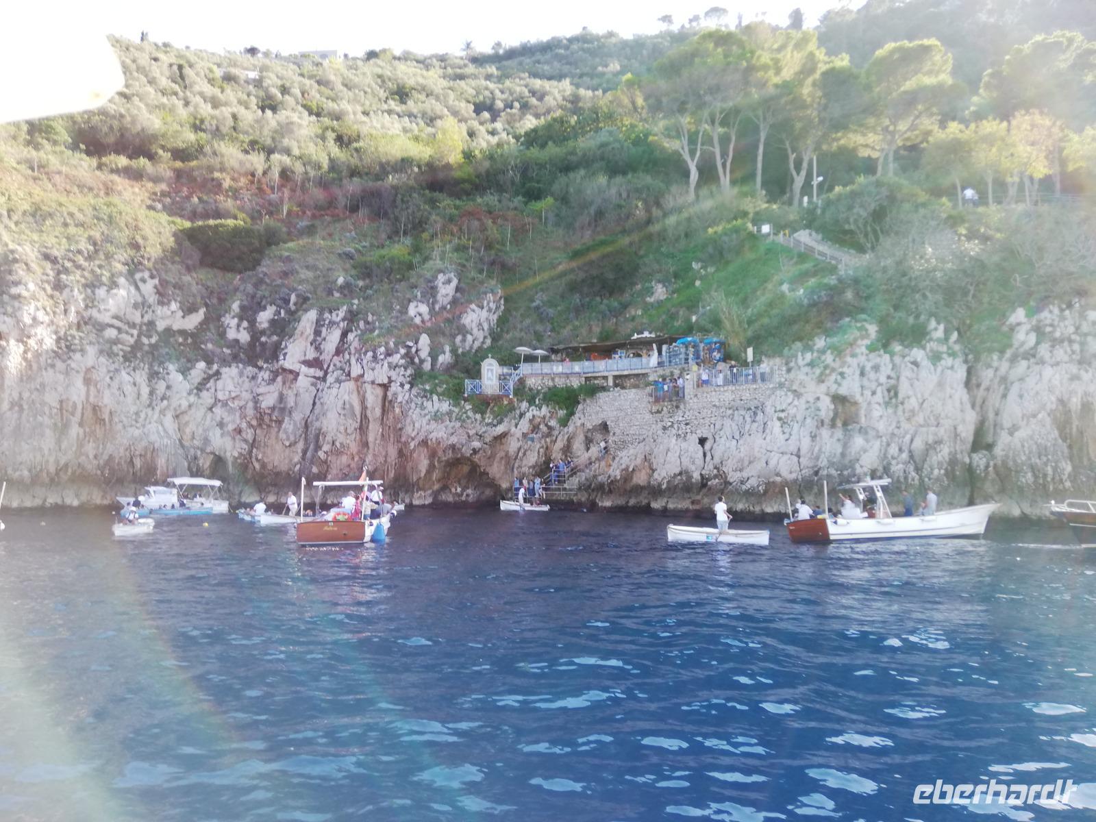 Bevor wir die Insel wieder verlassen, planen wir noch eine Schiffsrundfahrt um die Insel. Dafür haben wir sehr gute Bedingungen. Sonne, ein ruhiges Meer und die Führung in Deutsch. Wir fahren an die unterschiedlichsten Grotten vorbei, wobei die Grotte Azzura die bekannteste Sehenswürdigkeit auf Capri ist.