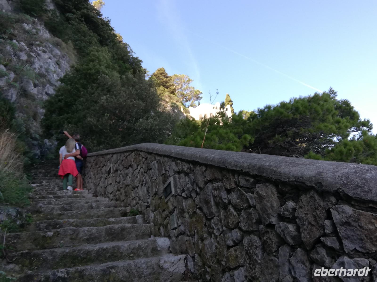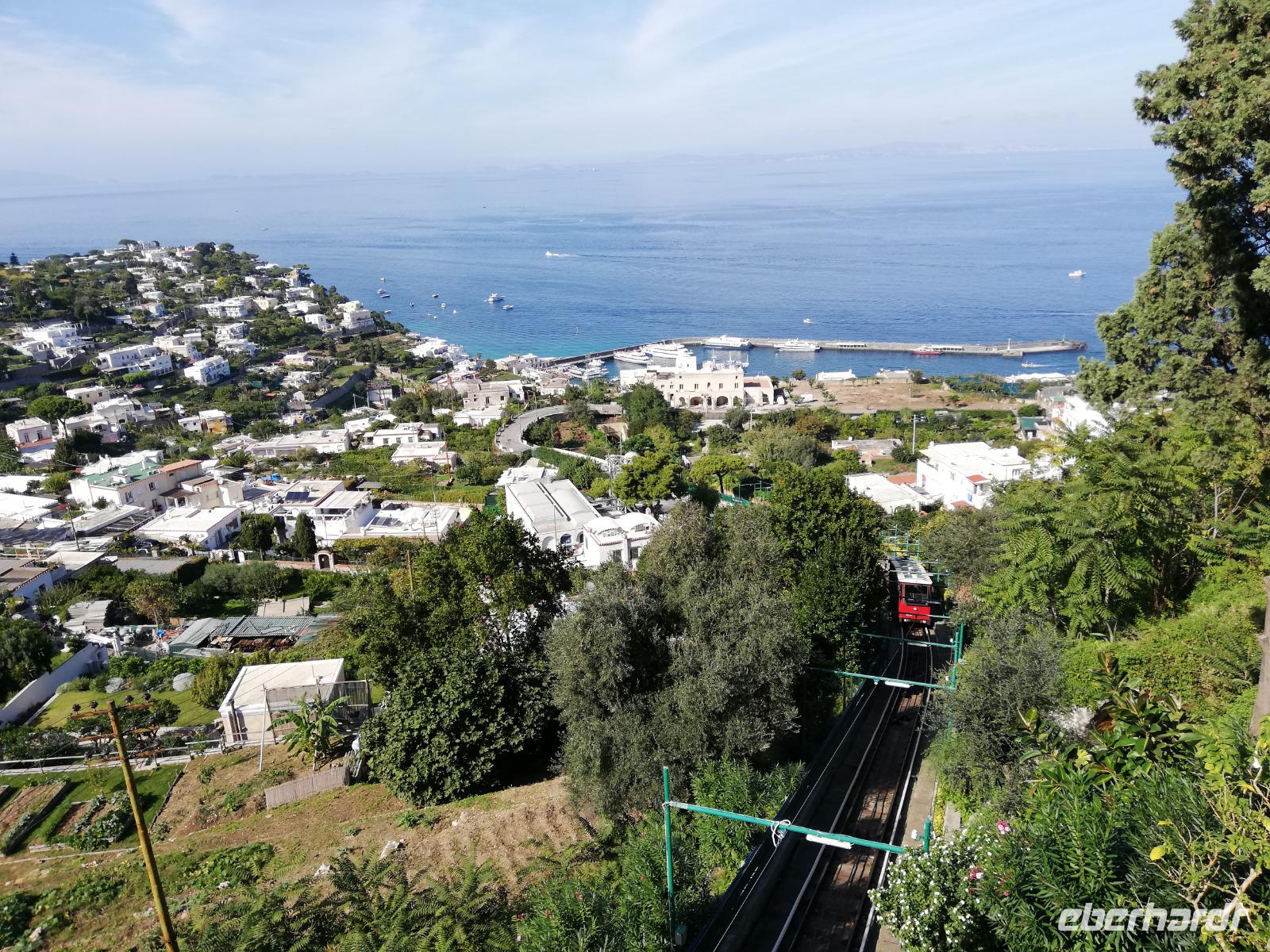 Anschließend fahren wir mit dem Kleinbus nach Capri, um noch den Giardini di Augusto zu besuchen. Es ist eine hübsche Parkanlage mit herrlichem Meerblick. Für unsere Rückfahrt von Capri zum Hafen nutzen wir die Funicolare (eine Standseilbahn.)