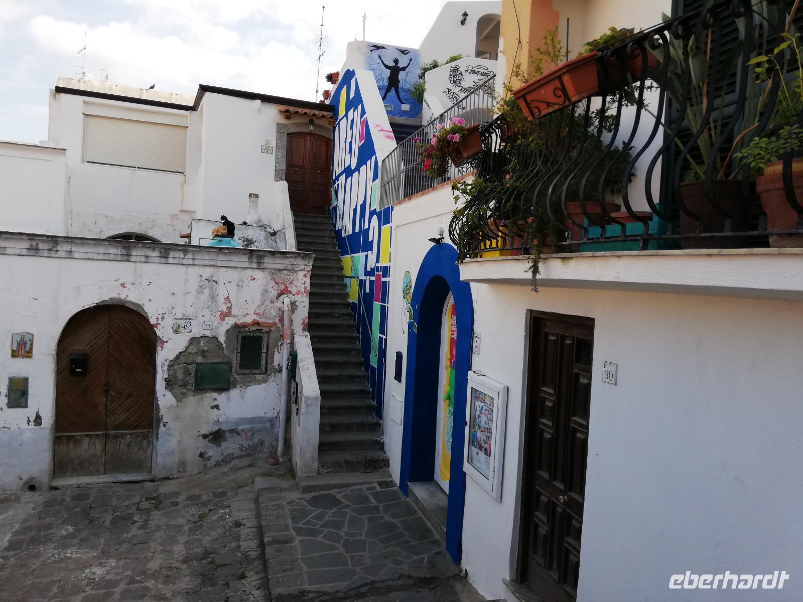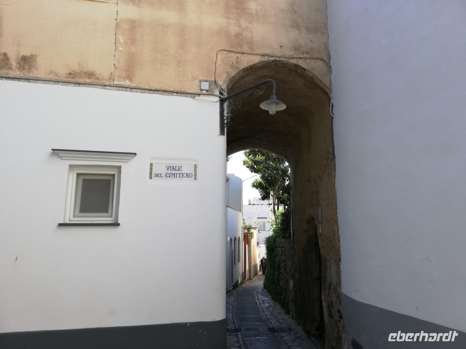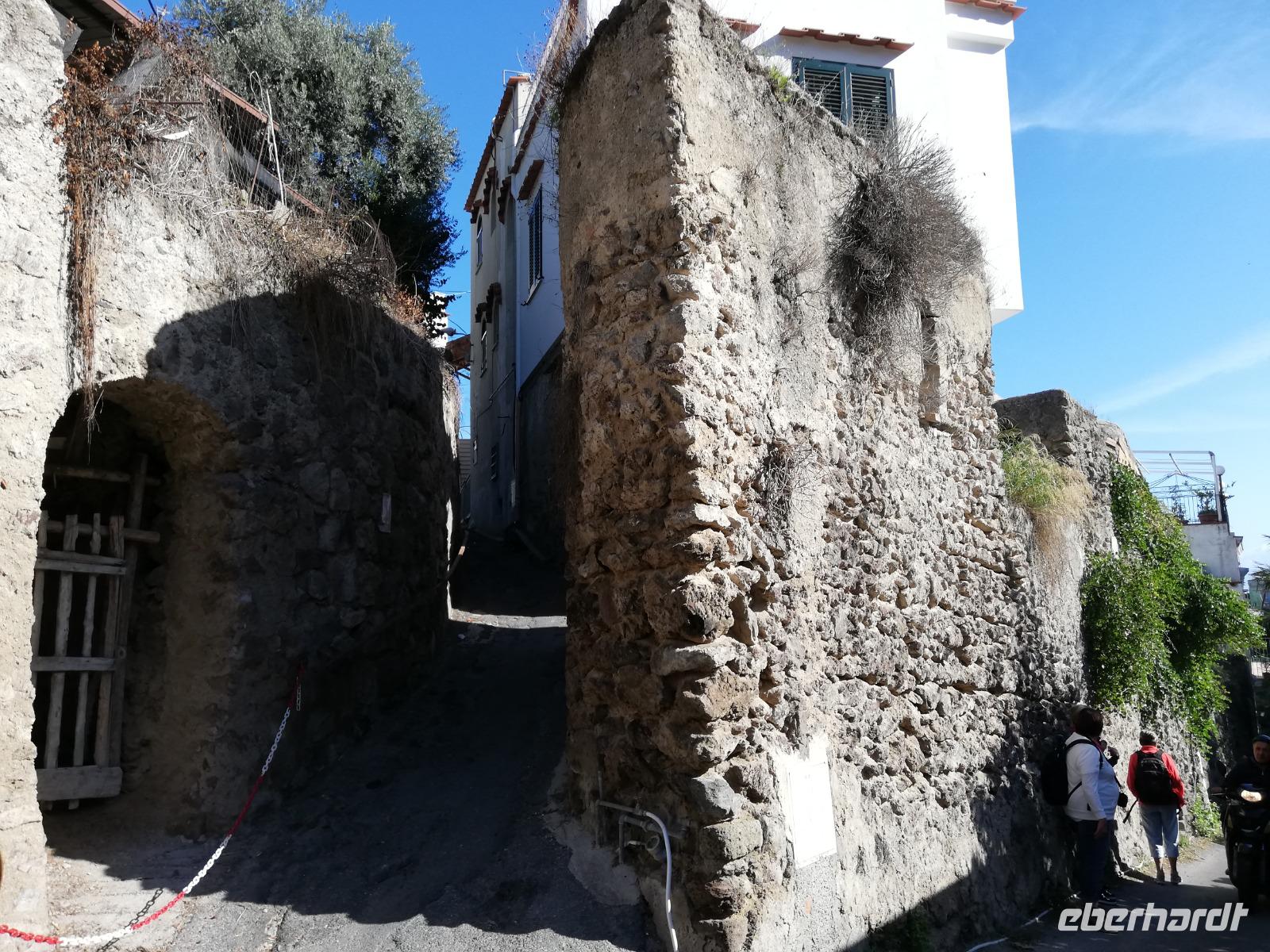 Dazu gehört u.a. die zerstörte Kathedrale der Assunta , die Terrasse der Immacolata , mit einem tollen Blick auf Ischia und der Friedhof der Nonnen, der uns sehr nachdenklich stimmt.