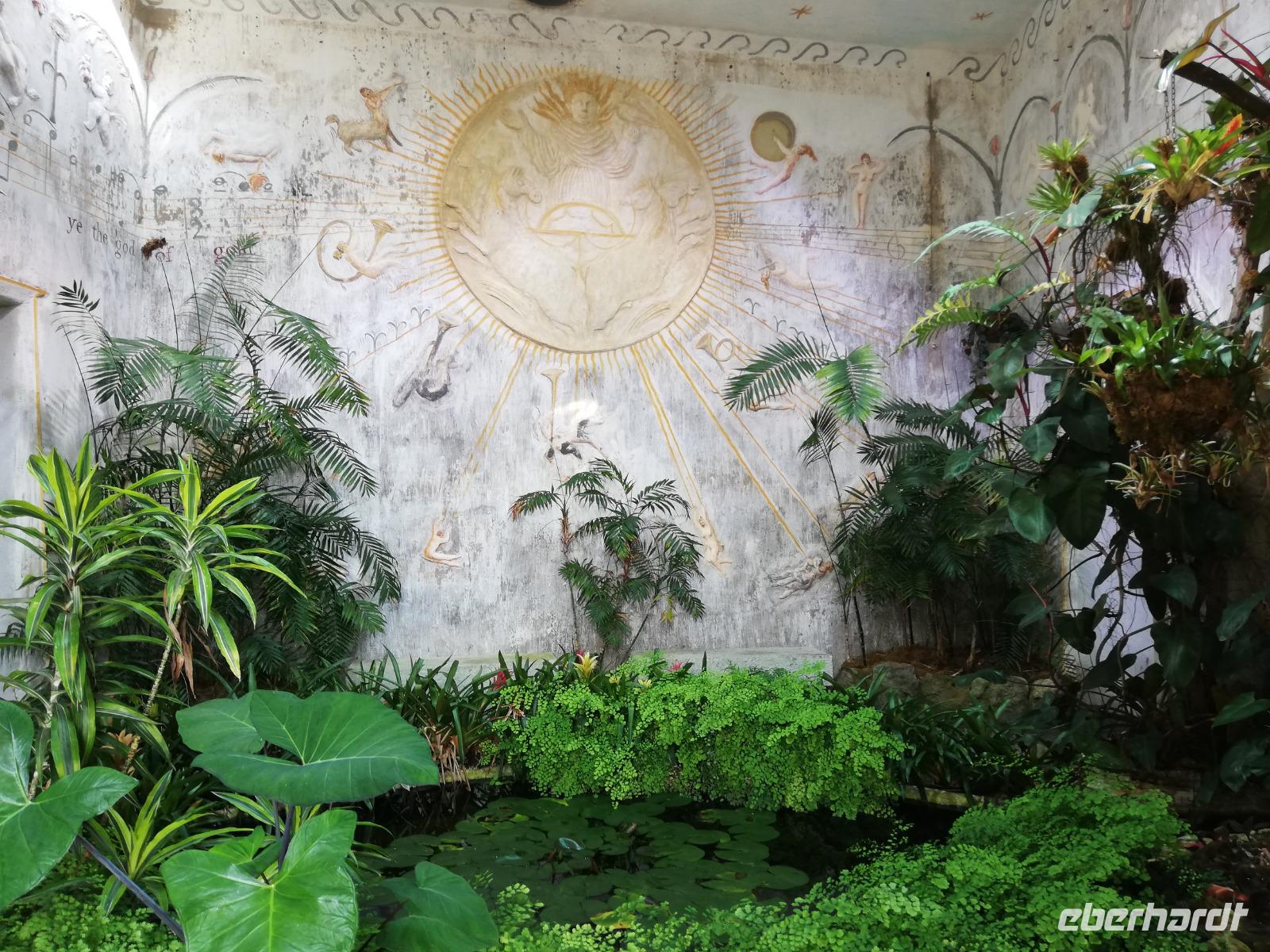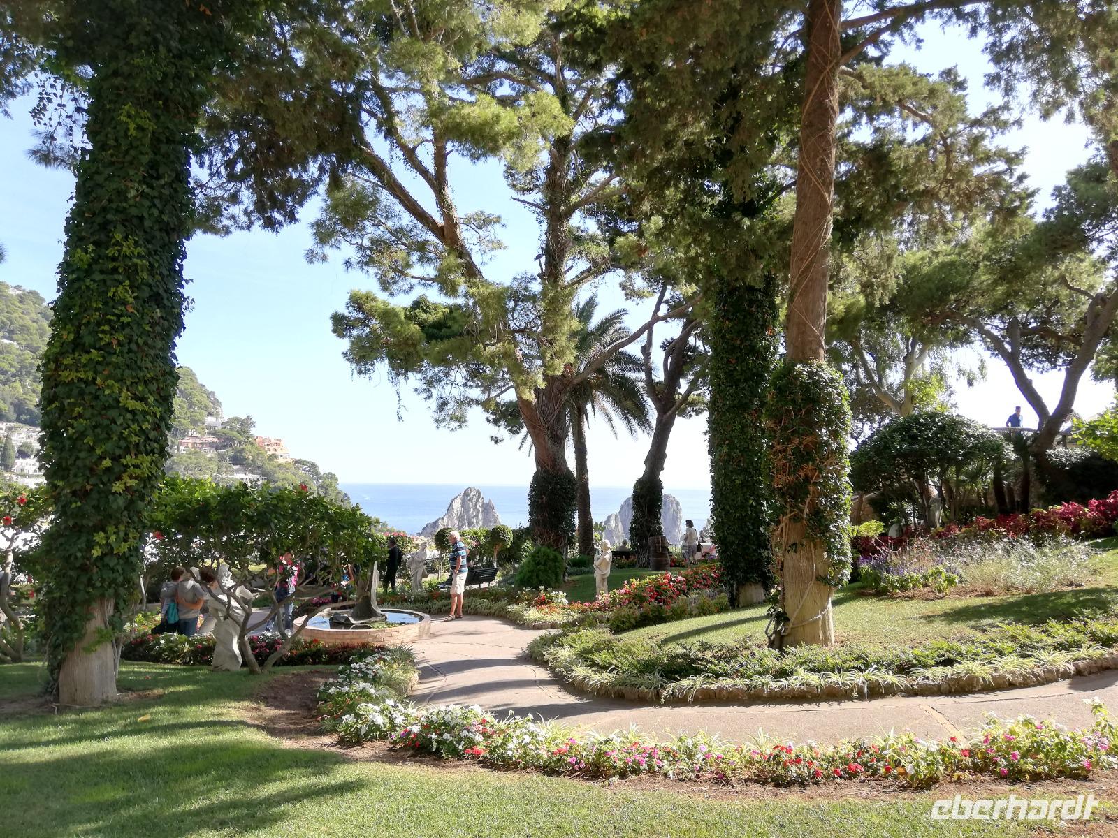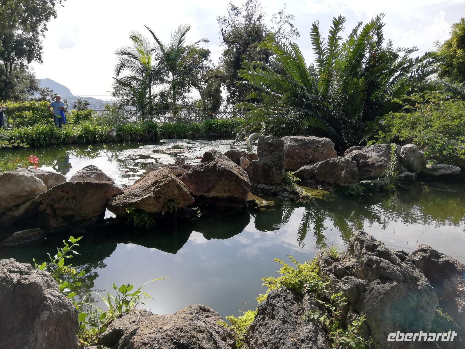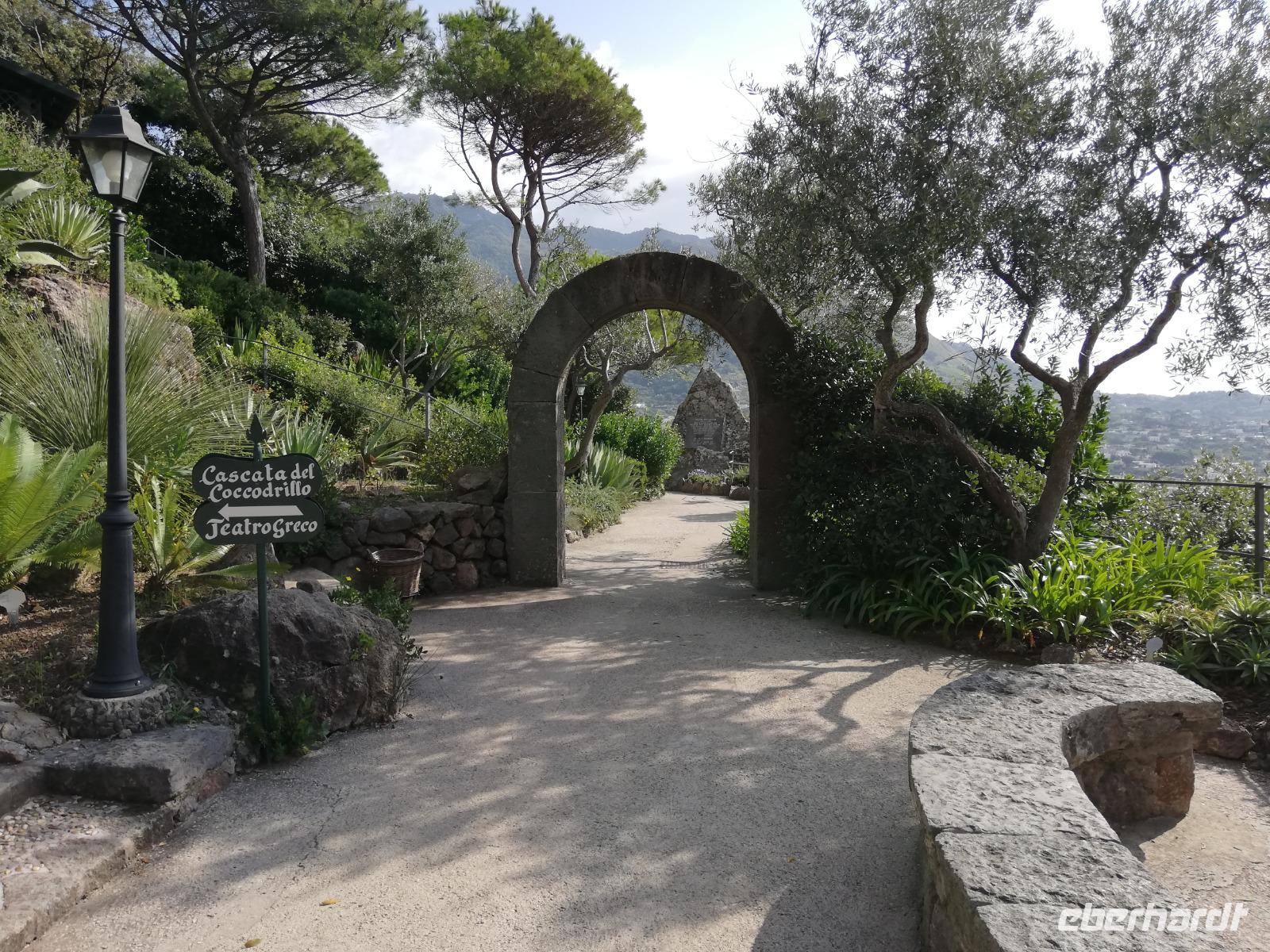(Der Myrten-Garten), dass die Bauarbeiten bereits 1956 nach einem Projekt von Russel Page begonnen wurden und von Susana und William Walton (englischer Musiker) angelegt wurde. Wir spazieren durch die untere Ebene, frisch und schattig und danach kommen wir in den oberen Garten, sonnig und mediterran mit einem schönen Blick auf die Bucht von Forio. Die unterschiedlichsten Pflanzen und die Gestaltung des Gartens beeindrucken uns sehr und strahlen Ruhe aus. Nach rund 2,5 Stunden fahren wir zum Hotel zurück und nutzen die Bademöglichkeiten im Hotel bei angenehmen 23 Grad.
