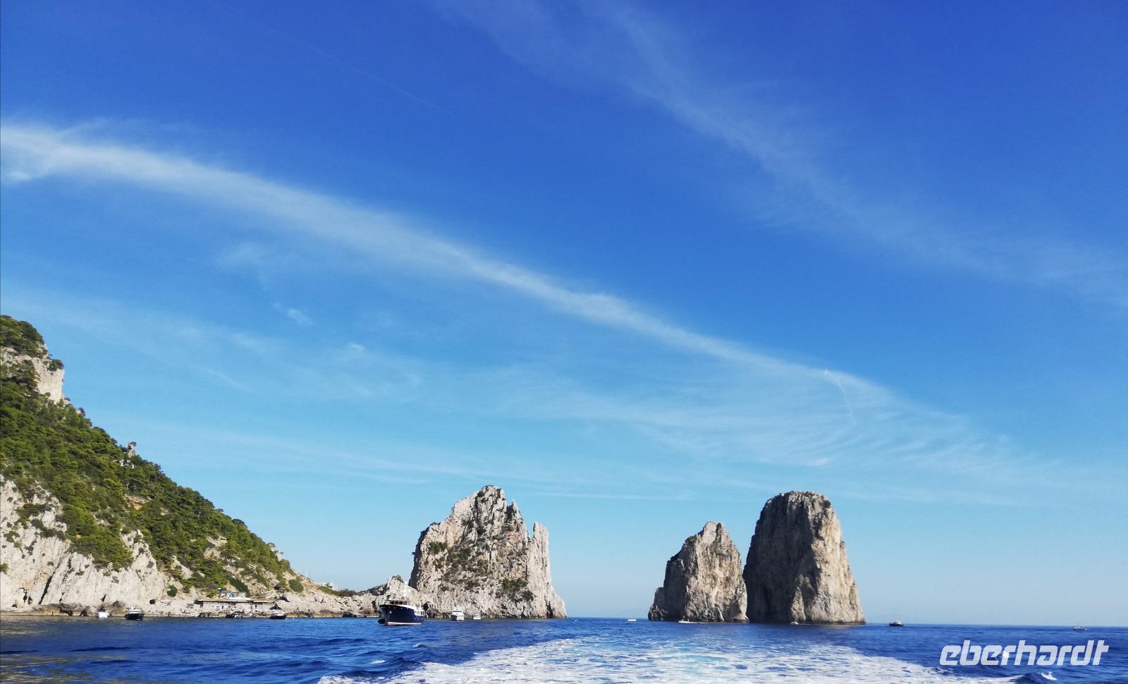 „Wenn bei Capri die rote Sonne im Meer versinkt..."der deutsche Schlager, der ein Welterfolg wurde, ist auch in unseren Köpfen und die Vorfreude auf diese Insel begeistert unsere kleine Gruppe.