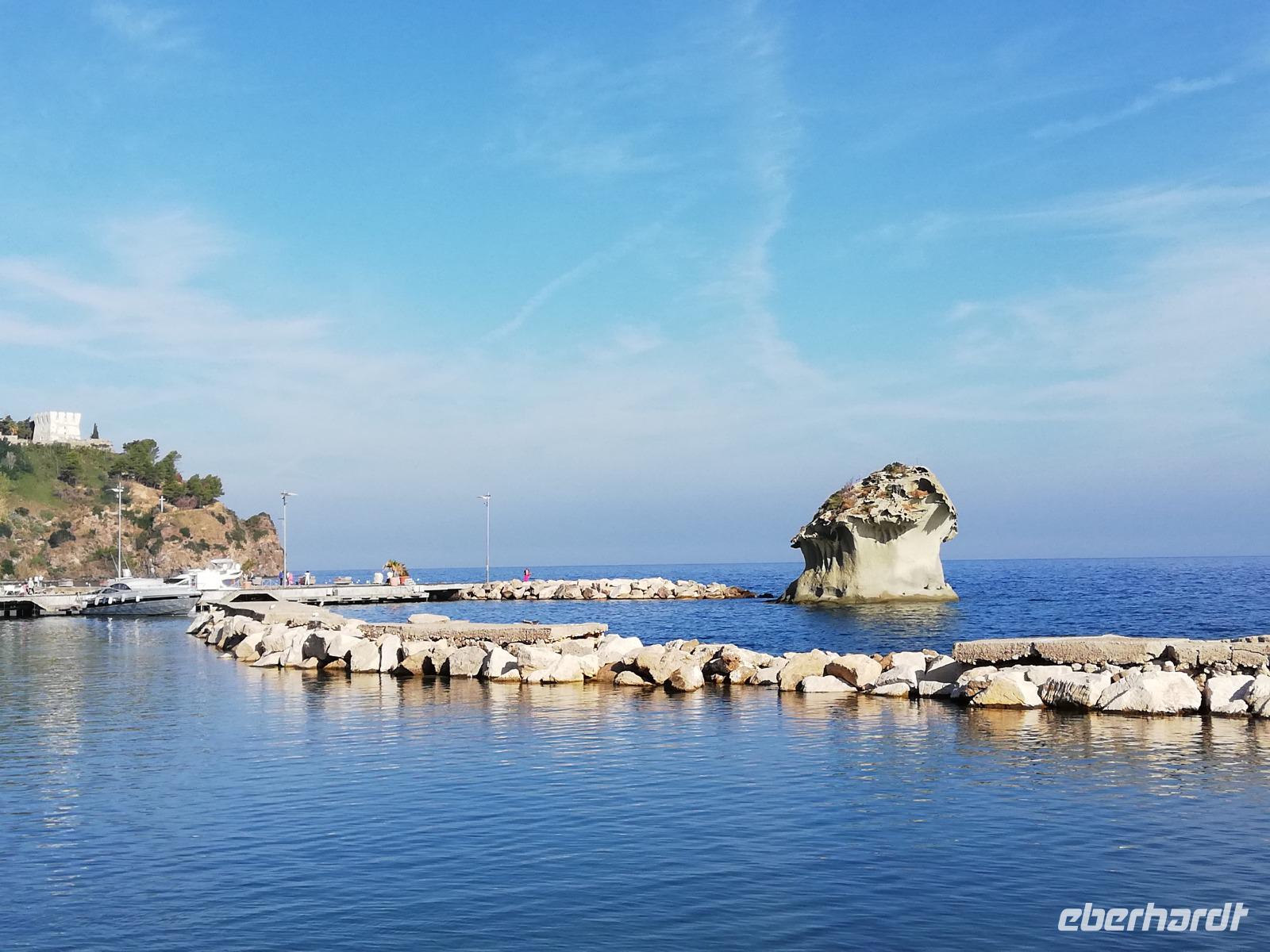 schon gestern haben wir den Stein in Form eines Pilzes während der Schifffahrt gesehen. Heute stehen wir davor. Ein Gruppenfoto vor dem „Pilz" hat nun jeder von uns in der „Tasche". Weiter fahren wir durch Casamicciola Terme, und Später durch Ischia mit seinen Ortsteilen Porto und Ponte. Unsere Aufmerksamkeit gilt dem Castello Aragonese. Beeindruckend liegt das Castello vor uns, welches wir später ,an einem anderen Tag, noch besuchen werden.