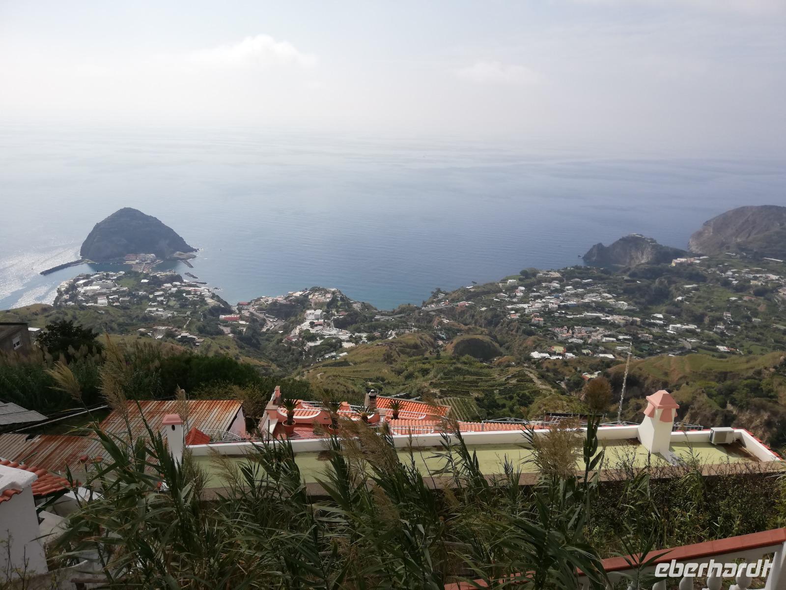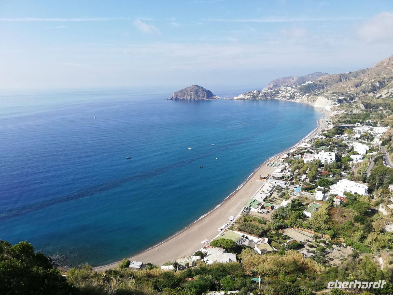 Unsere weitere Fahrt führt uns in die Berge durch Fiaiano und weiter nach Fontana. Zwischendurch halten wir an einem Aussichtspunkt um den Blick auf den schönsten Strand der Insel und auf S. Angelo in einem Foto festzuhalten.