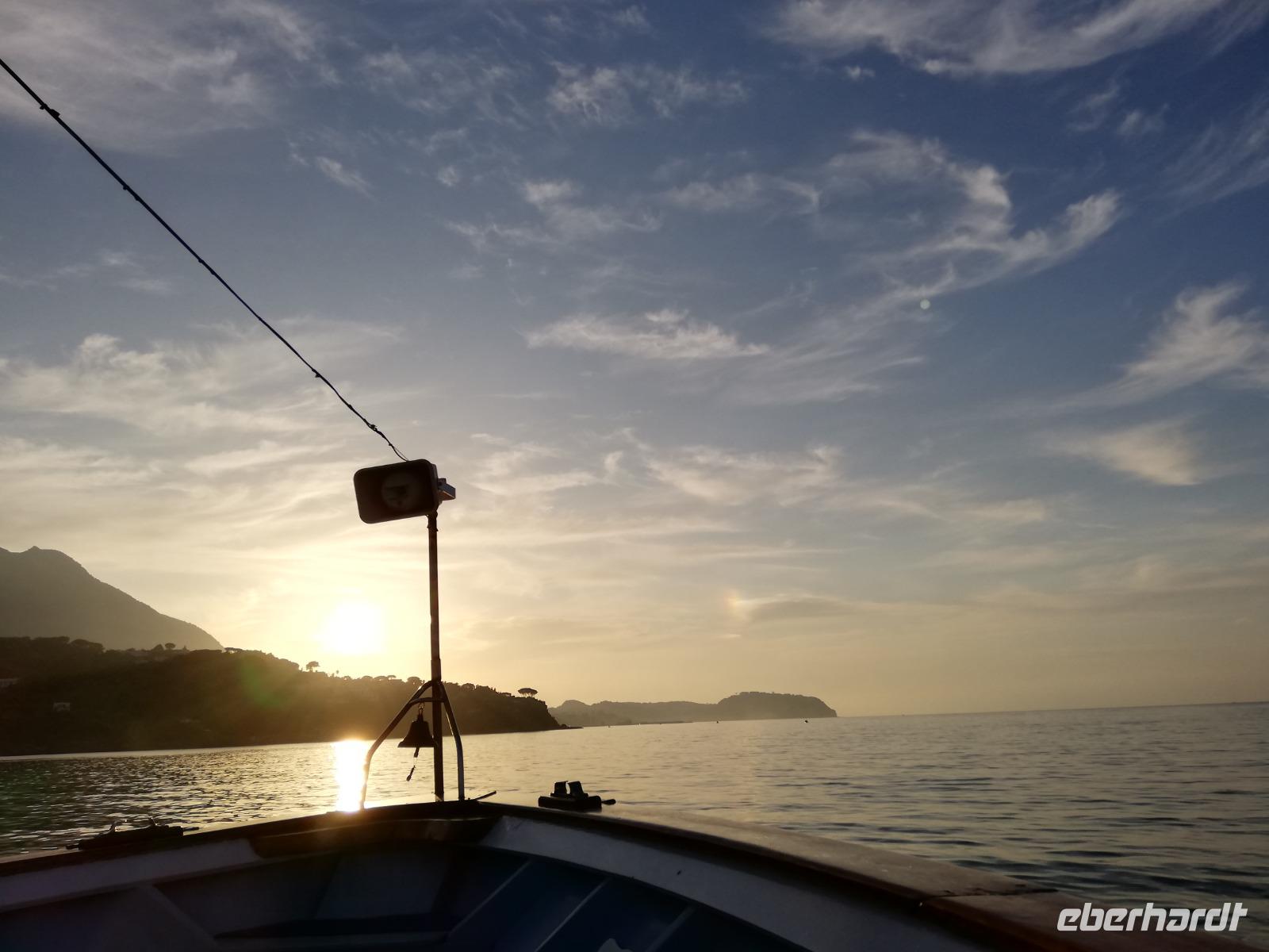 Gegen 15.00 Uhr treffen wir uns wieder im Hafen von Forio und beginnen mit der Insel- Schiffsrundfahrt. Die Fahrt ist sehr beeindruckend. Wir sehend Ischia von seiner ganz anderen Seite . Wir haben traumhafte Blicke auf die Insel mit seinen unberührten Orten. In S. Angelo (der einzige autofreie Ort der Insel) haben wir eine Stunde Aufenthalt. Bei einem traumhaften Sonnenuntergang erreichen wir wieder Forio und beenden einen sehr schönen Tag bei einem guten Abendessen.