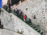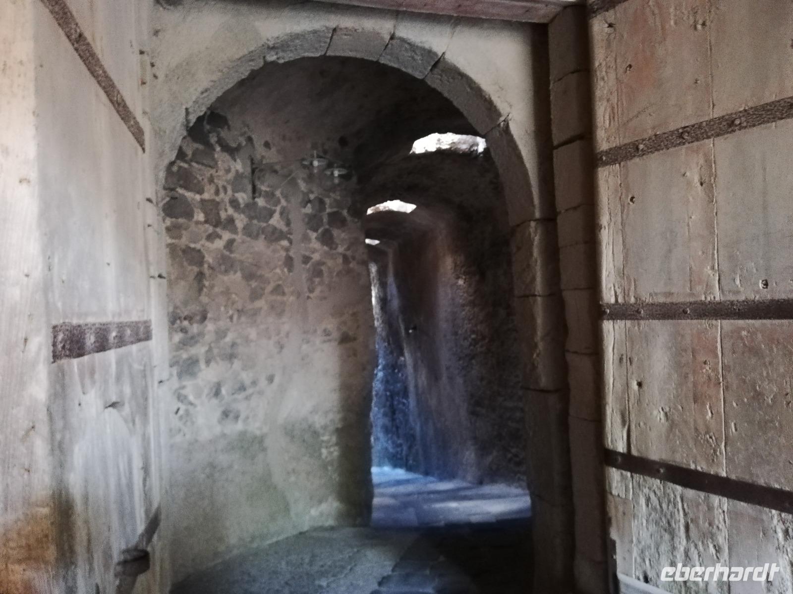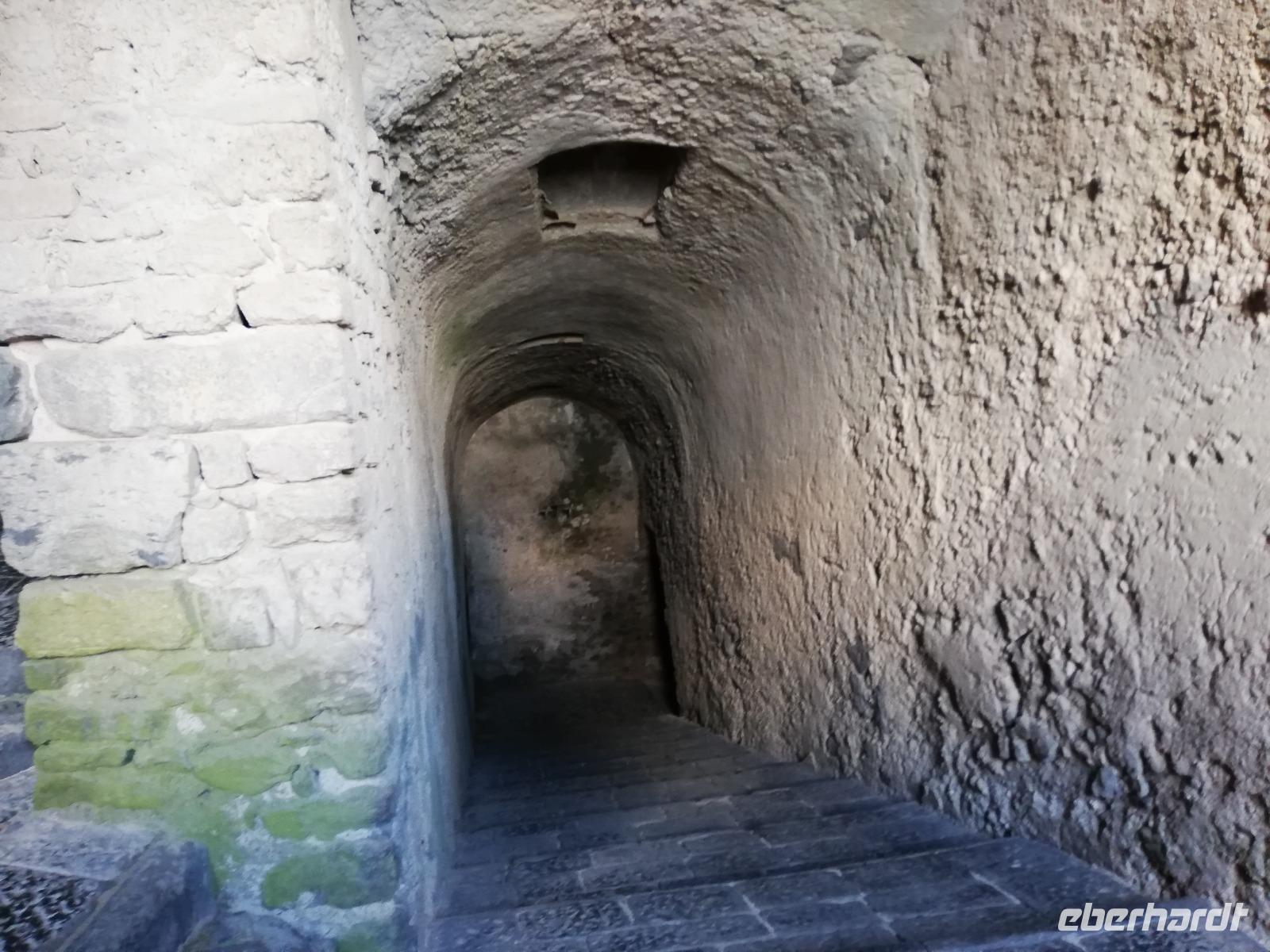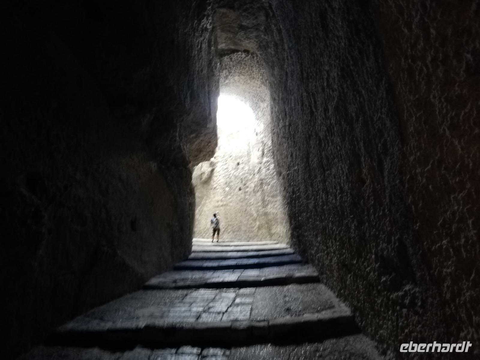 Heute erwartet uns Brigitte, die mit uns nach Ischia Ponte (Brücke)fährt und uns vieles zur Geschichte der Stadt erklärt. Ischia, ist der Hauptort der Insel und hat viele Behörden, Banken und exklusive Geschäfte. Die wichtigste Sehenswürdigkeit der Stadt, ist das Castello Aragonese. Es liegt auf einen über hundert Meter hohen Felsen und war im 15.und 16. Jh. Sitz der aragonischen Statthalter. Wir laufen entlang der Brücke zum Castello. Hier trennen sich die Wege unserer kleinen Gruppe. Einige nehmen den Fahrstuhl und der größere Teil läuft entlang des beeindruckenden Tunnels.Es war Alfonso von Aragona, der den Bau des Tunnels 1441 in Auftrag gab und der mühsam mit Hammer und Meißel in den Felsen gehauen wurde. Das alles erfahren wir von Brigitte, interessant ist auch das Museum welches wir während des Aufgangs besuchen. Wir könnten einen ganzen Tag auf der Burg verbringen, beschränken uns aber auf die wichtigsten Sehenswürdigkeiten.