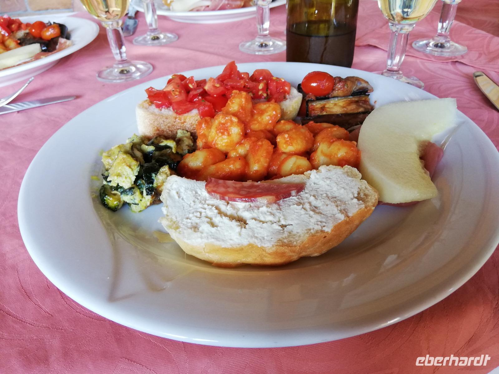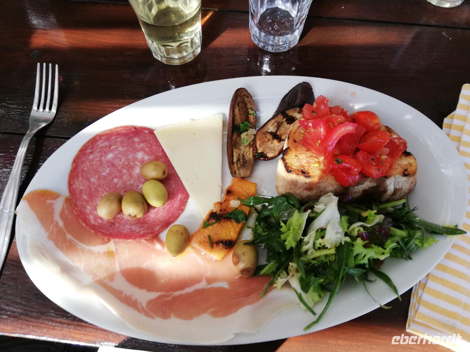 Zum Abschluss genießen wir noch einen Mittagsimbiss mit gutem Antipasti, Wein oder auch Wasser.