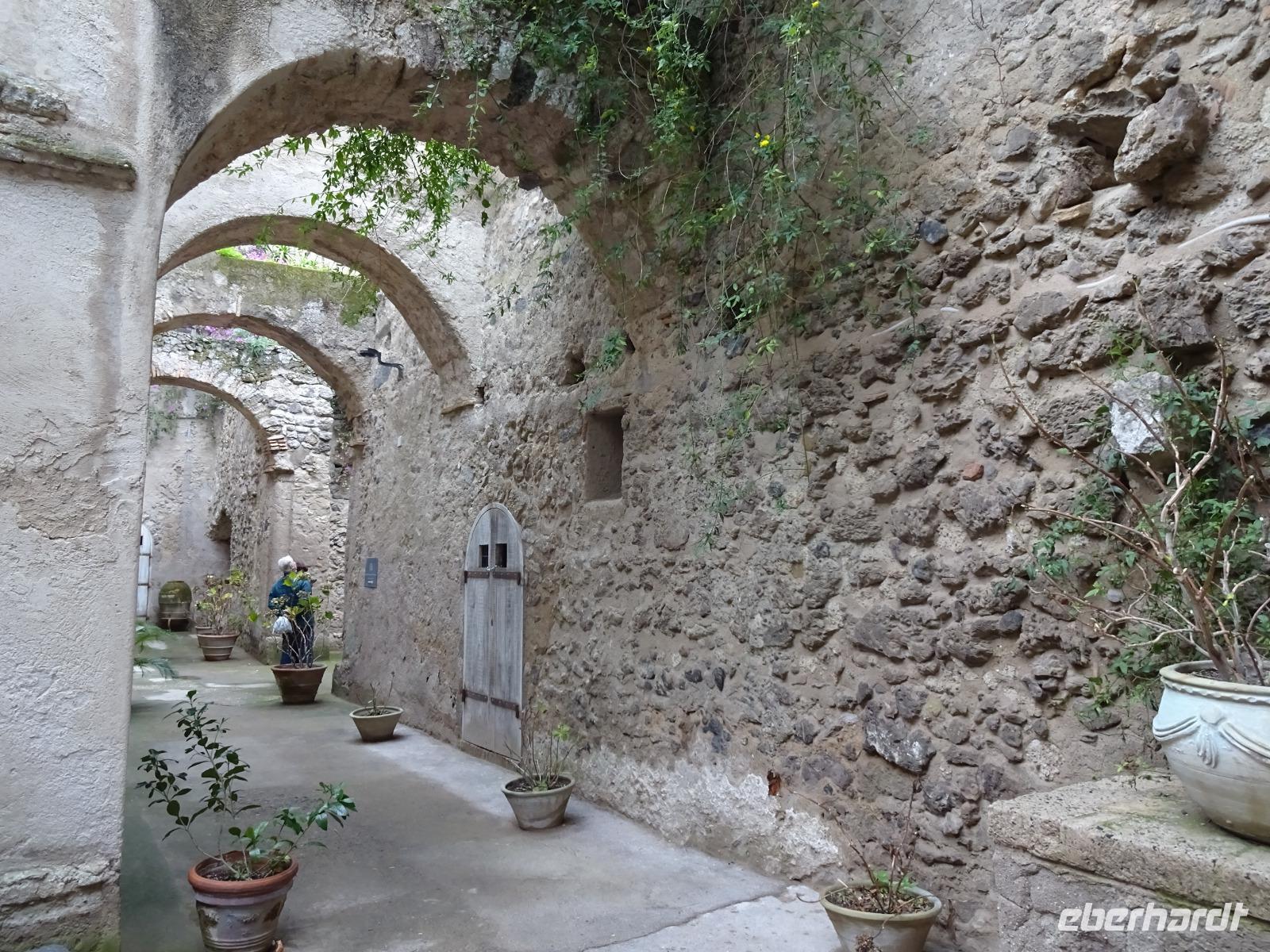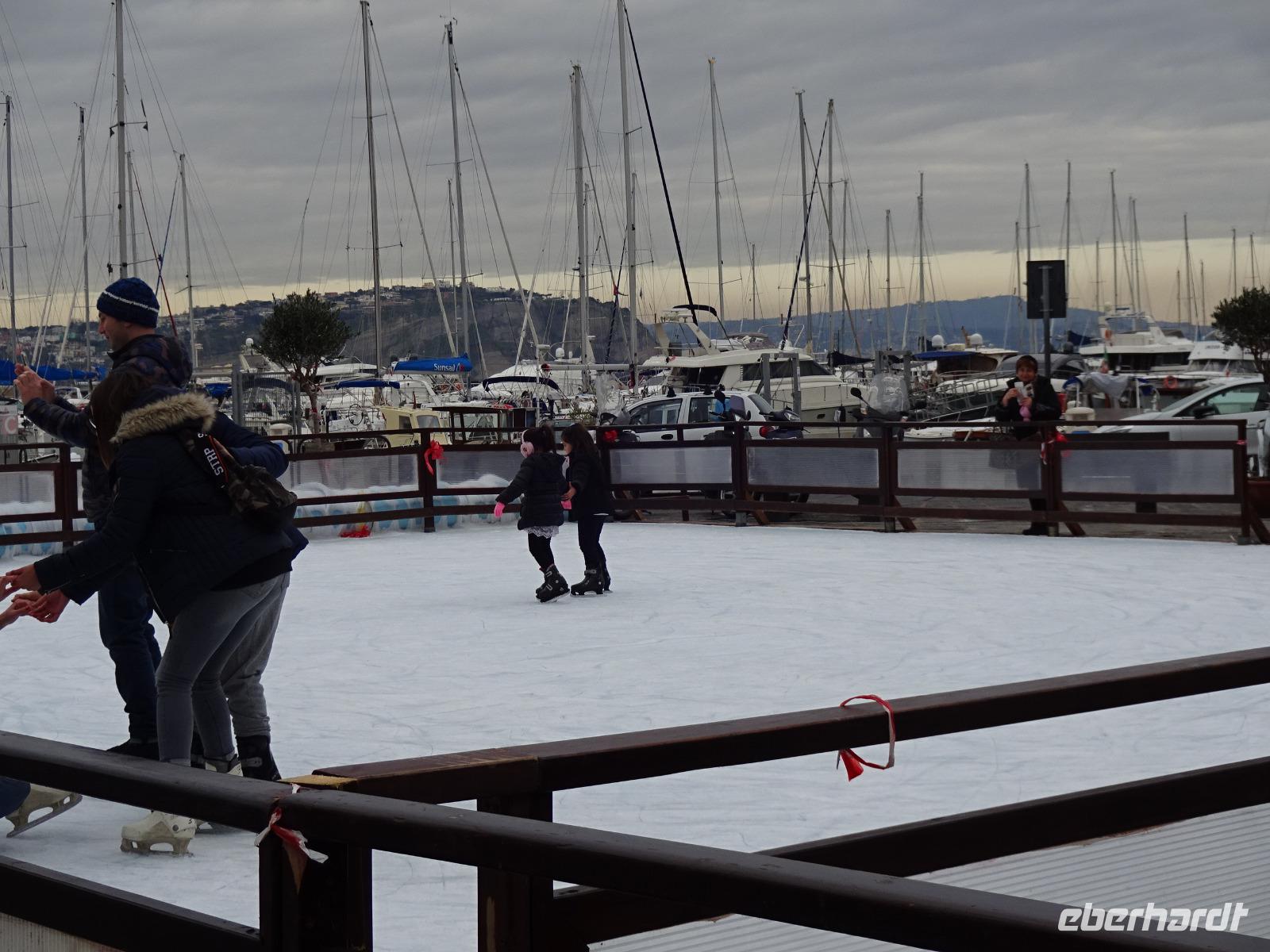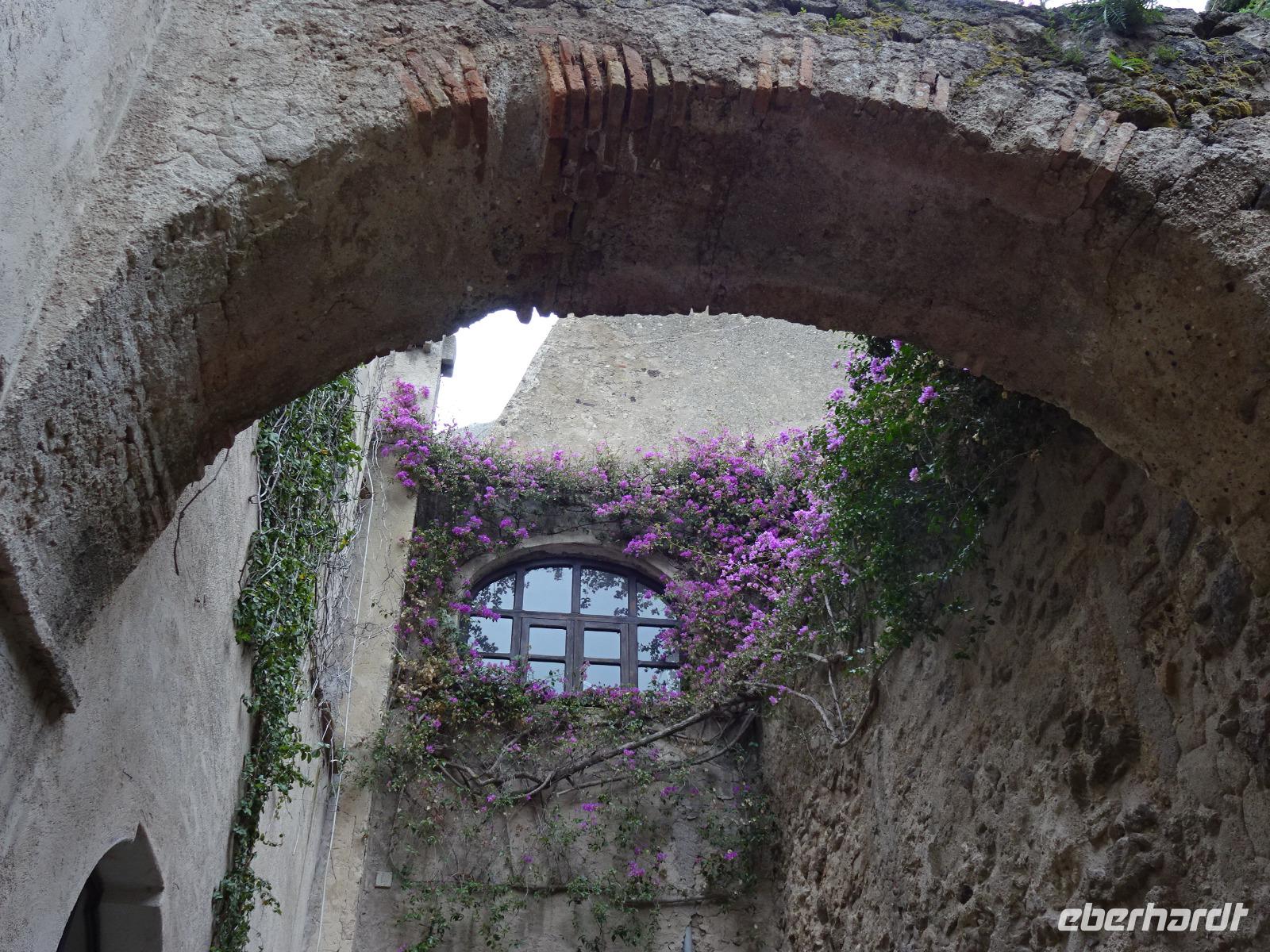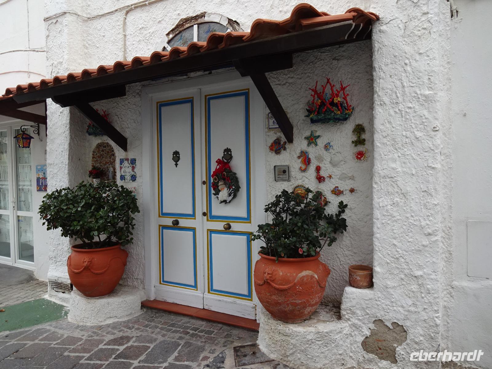 Der letzte Tag des Jahres 2017 brach an und unsere local guide Gabi führte uns mit dem Bus durch uns bisher unbekannte Orte der Insel Ischia. Unseren ersten Halt machten wir in Sant'Angelo, wo Angela Merkel wohl häufiger ihren Urlaub verbringt. Danach durchfuhren wir mehrere Bergdörfer, bewunderten die Felsenhäuser an der Straße, wagten einen Blick aufs Aquädukt, über das ab dem 17. Jh. bis ins 20. Jh. hinein das Trinkwasser der Inselhauptstadt geleitet wurde, und bummelten anschließend durch Ponte. Die Einheimischen essen hier am Neujahrstag gebratenen Fisch und andere Leckereien, die man an Ständen auf der Straße kauft. Wir taten es ihnen gleich. Dann trennten sich unsere Wege, denn ein paar Gäste wollten das Castello Aragonese sehen und die Reiseleiterin begleitete sie, während der Rest der Gruppe mit Gabi die Inselrundfahrt fortsetzte, noch einiges über Casamicciola, Lacco Ameno und Forio erfuhr, bevor diese Gäste schließlich wieder das Hotel erreichten und größtenteils im Thermalwasser verschwanden. Das Castello Aragonese bot seinen Besuchern einige interessante und schöne Eindrücke. So besichtigten wir die Begräbnisplätze des Klarissenklosters im Keller, durchstreiften Kirchenruinen, machten eine sehr nette Pause im Burgcafe und durchwanderten fast alle die alten Weinberg- und Oliventerrassen, wo wir wunderschöne Aussichtspunkte erreichten, schauten uns im Wachhaus noch die schaurigen Werkzeuge, die man früher zur Bestrafung unliebsamer Artgenossen verwendet hatte, an und fuhren dann mit öffentlichen Bussen zurück ins Hotel, was uns problemlos gelang. Man traf sich teils wieder im Thermalwasser, bevor unser Silvesterabend mit Tanz und langem Menu begann. Ein Feuerwerk begleitete uns ins neue Jahr - Auguri! Alles Gute in 2018!!