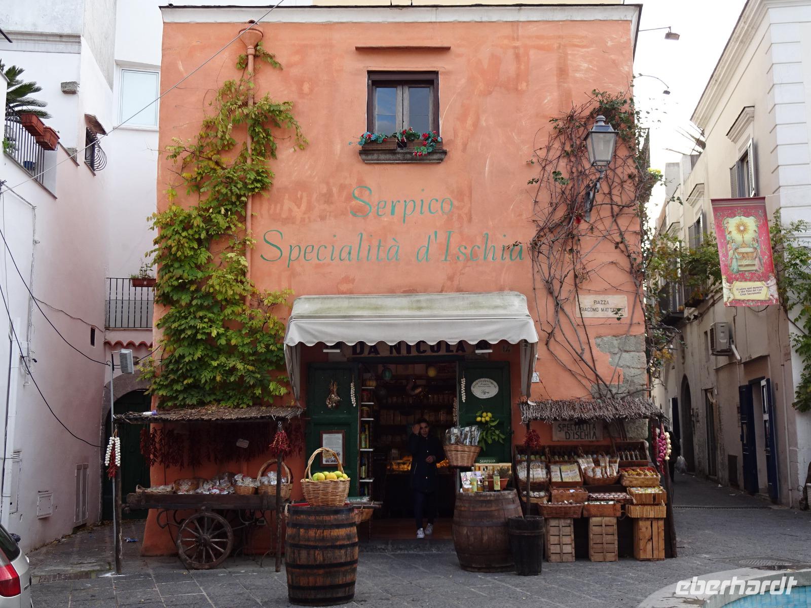 Am letzten Wandertag wollte uns Giovanni, der Agenturchef, selbst begleiten. Morgens starteten wir bei strahlend blauem Himmel in Campagnano. So erreichten wir die Highlights dieses Tages gleich am frühen Morgen. Das Castello Aragonese lag vor uns, und auch Procida lag da vor uns im blitzblauen Meer. In den azurblauen Himmel ragten die Vulkane der Campi Flegrei, der Vesuv, die Monte Lateri und Capri. Wir folgten einem steilen Pfad aufwärts durch die Terrassenfelder. Und langsam zogen Wolken auf. Unsere Mittagspause begann in Piano Liguori auf der Terrasse eines Ristorante und endete drinnen, denn die grauen Wolken hatten sich sehr schnell vermehrt und weinten bald kräftig. Nach dem Schauer führte uns Giovanni eine sehr steile kleine Straße abwärts, eine richtige Herausforderung bei dieser Witterung, denn die steile Straße war nass. Ein Gast küsste kurz die Erde, aber mehr konnte uns das Wetter nicht anhaben. Nach unserer Rückkehr ins Hotel verschwanden einige Gäste wieder in den Thermalwasserfluten, andere widmeten sich aber schon dem Kofferpacken und wieder andere unternahmen einen letzten Ausflug ins Zentrum von Forio. Und ein letztes gemeinsames leckeres Abendessen zusammen mit den Nicht-Wanderern, die auch an diesem Tag wieder ihr eigenes Programm machten, folgte.