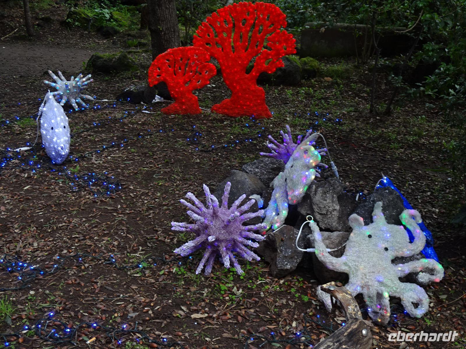 Italiener scheinen keine Langschläfer am Neujahrstag zu sein, zumindest nicht in unserem Hotel. Wir frühstückten also bereits gegen 9 Uhr und fuhren am späten Vormittag mit dem Bus in die Inselhauptstadt Porto. Vor dem Essen (klar, schon wieder gab's was Leckeres...) bummelten wir durch die Ladenstraße zum Pineta, dem Pinienwäldchen, das auf einem 1301 entstandenen Lavastrom angepflanzt wurde und schauten uns die dort aufgestellten Lichtplastiken an. Dann folgte am Hafen von Porto ein weiteres Schlemmen. Vor uns dümpelten bunte Holzfischerboote im Meer. Von unseren Tischen aus konnten wir sehr gut beobachten, wie das Meer immer unruhiger wurde. Die Boote schaukelten bald schon ganz unruhig vor unseren Nasen herum. Ein neuer Sturm zog auf. Nach dem Essen brachte uns der Bus wieder zum Hotel und in kleinen Grüppchen machten sich einige Gäste samt Reiseleiterin dann auf den Weg zum Leuchtturm. Auf dem grauen Meer brauten sich große Wellen zusammen, die sich am Strand von Forio in weiße Schaumkronen auflösten. Auch heute zog es einen Teil der Gäste wieder ins Thermalwasser und das Abendessen führte schließlich wieder alle zusammen.
