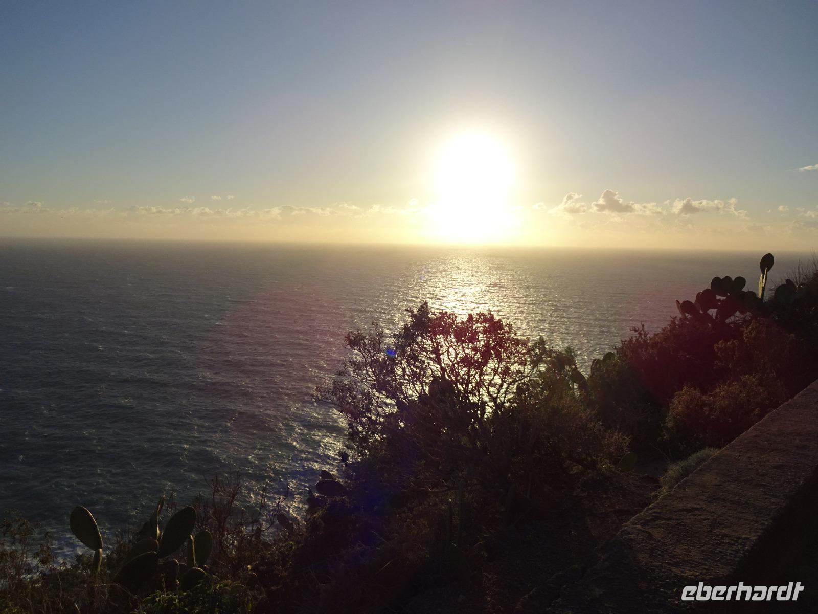 Geplant hatten die Wanderer für den heutigen Tag eine größere Wanderung: die Besteigung des Monte Epomeo von Süden aus und einen längeren Abstieg hinunter an die Nordküste. Aber Biagio, unser local guide, änderte recht kurzfristig das Programm. Am Vortag und in der Nacht hatte es ja recht kräftig gestürmt und auch viel geregnet, so dass der Tonboden am Nordhang des Monte Epomeo wohl recht glitschig war. Wie das Wetter am Vormittag werden würde, das blieb spannend bis zur letzten Minute. Biagio entschied sich für einen Aufstieg von Fontana aus. Zunächst war es wirklich wolkig und kalt. Extra für uns öffnete die Gaststätte am Gipfel des Monte Epomeo, den wir um die Mittagszeit erreichten. Hier wurden wir mal wieder verköstigt. Und hier am Gipfel des höchsten Inselberges schloss sich uns ein Hund an, ein braves, braunes, verspieltes Tier, das uns ungebeten begleitete und alle vierpfotigen Inselbewohner am Straßenrand in einen jaulenden Chor verwandelte. Als wir über die Pietra dell' Acqua den Weg, den wir eigentlich bergauf wandern wollten, nun abwärts wanderten, kam die Sonne. Und so erreichten wir Serrara bei heiterem Wetter samt Hund. Nach einem Espresso wollten wir eigentlich ohne Hund den Bus besteigen. Dieser sah das aber ganz anders und die Reiseleiterin hatte etwas Mühe, den schweren treuen Begleiter wieder aus dem Bus hinauszuhieven. Da saß er nun am Straßenrand und schaute uns traurig hinterher." Ach der Arme, schaut mal der läuft jetzt sogar hinter unserem Bus her..." sagte ein Gast traurig. Biagio wußte wo der Hund lebte. „Der macht das immer wieder, läuft einfach mit Wanderern mit. Aber glaubt mir - der findet auch wieder alleine nach Hause..." Am Hotel angekommen, bildeten sich 2 Grüppchen, die noch nicht müde waren. Das eine Grüppchen zog abwärts an den Strand: „Einmal wollten wir auch das Meer zum Greifen Nahe haben, das war herrlich...". Das andere Grüppchen begleitete die Reiseleiterin beim 2. Versuch hoch oben auf dem Leuchtturmberg einen schönen Sonnenuntergang zu erleben. Dieses Mal hatten wir herrliches Licht und einen wunderschönen Blick auf Forio, den Monte Epomeo, die Brandung des Meeres und den Sonnenuntergang. Und am Abend trafen wir beim Essen unsere Nicht-Wanderer wieder, die diesen Tag wieder nach persönlichen Wünschen gestaltet hatten.