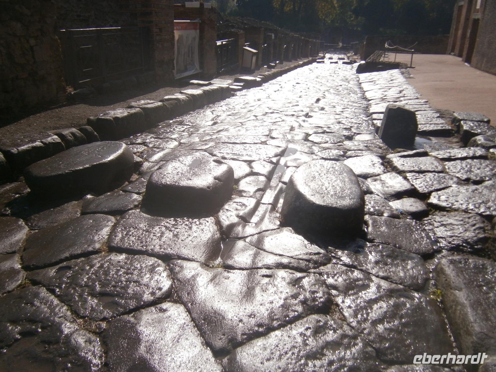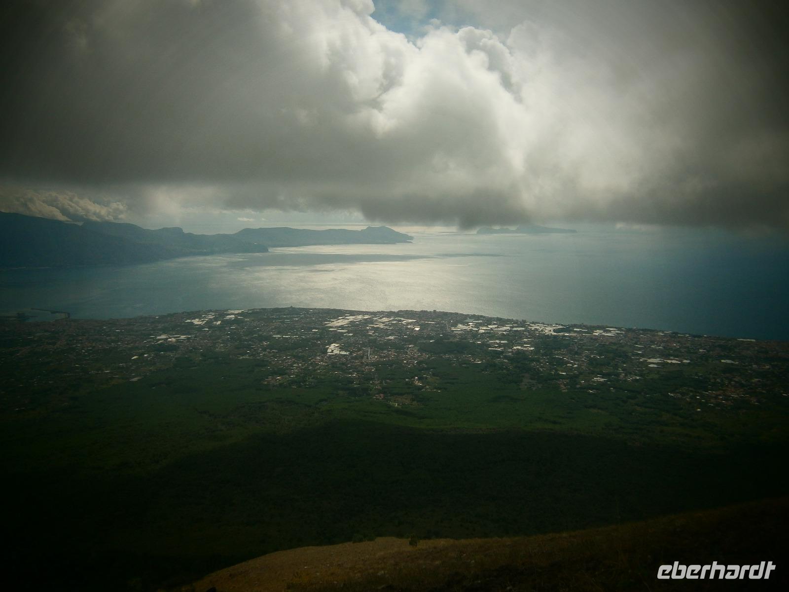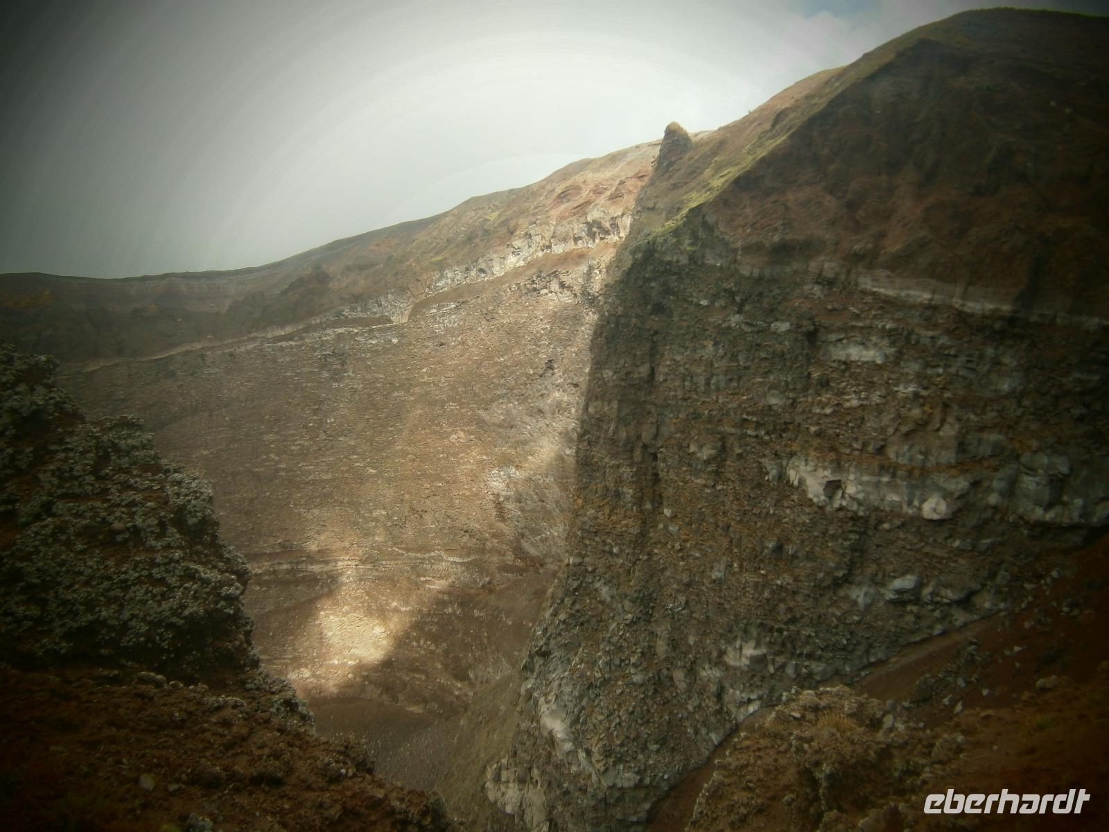 Am Morgen regnet es sehr stark, der Gipfel des Vesuvs ist in dicke Wolken gehüllt. So kaufen sich einige von uns in Pompeji erst mal ein Regencape, die Händler freuen sich - wahrscheinlich besonders, als es kurz darauf aufhörte zu regnen! Unser Reiseführer Antonio zeigt uns die nach dem Ausbruch im Jahre 79 unter einer dicken Ascheschicht begrabene und dadurch in ihrer Struktur sehr gut erhaltenen Stadt. Er machte uns auf viele kleine Zeichen aufmerksam, die wir vielleicht übersehen hätten, welche aber das Leben in der Stadt für uns nachvollziehbar machten. Nach einem kurzen Imbiss brachte uns der Bus zum Vesuv. Während des Aufstiegs boten sich uns immer wieder einzigartige Blicke auf den Golf von Neapel. Um den Kraterrand wurden wir von einem humorigen Bergführer geleitet, der natürlich auch Interessantes aus der Geschichte des Vulkans und seiner Besucher zu erzählen wusste.
