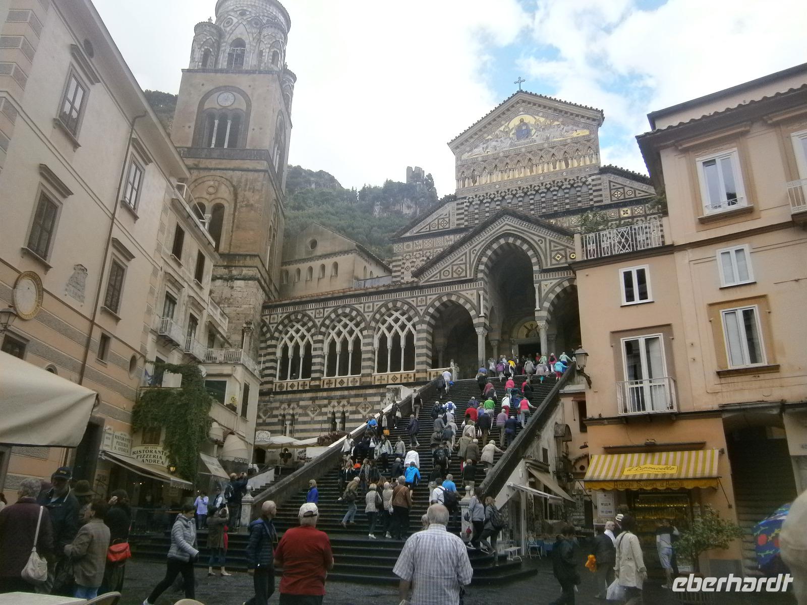 Heute waren wir mit Raffaele und Raffaela unterwegs. Am Vormittag zeigte uns Raffaela wie romantisch und unvergleichlich schön die berühmte Amalfitana auch bei Regen ist. Wir wissen nun, dass „flüssiger Sonnenschein" durchaus seine Sonnenseiten hat. Interessant und sehenswert sind der Dom und das dazugehörige Museum. Während der anschließenden Freizeit ließ sich die Sonne kurz sehen. Zeit für ein Gelato war natürlich auch. Am Nachmittag klärte es sich auf, gerade richtig für unseren Besuch auf einem Landgut. Zehn Familien „kümmern" sich hier um Zitronen. Wein und Oliven verarbeiten diese auch seit Generationen. Für uns gab es hier schmackhafte Kleinigkeiten, Wein und einen Pizzakurs, der uns Spaß und eine leckere selbst hergestellte Pizza bescherte. Und zum Nachtisch der Clou: Nutella-Pizza!