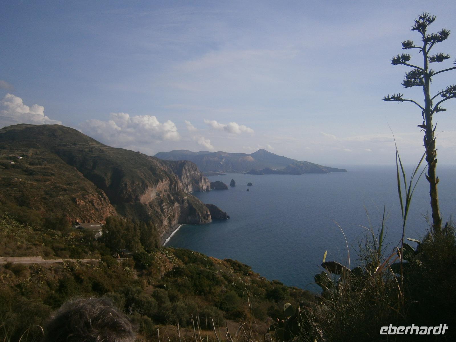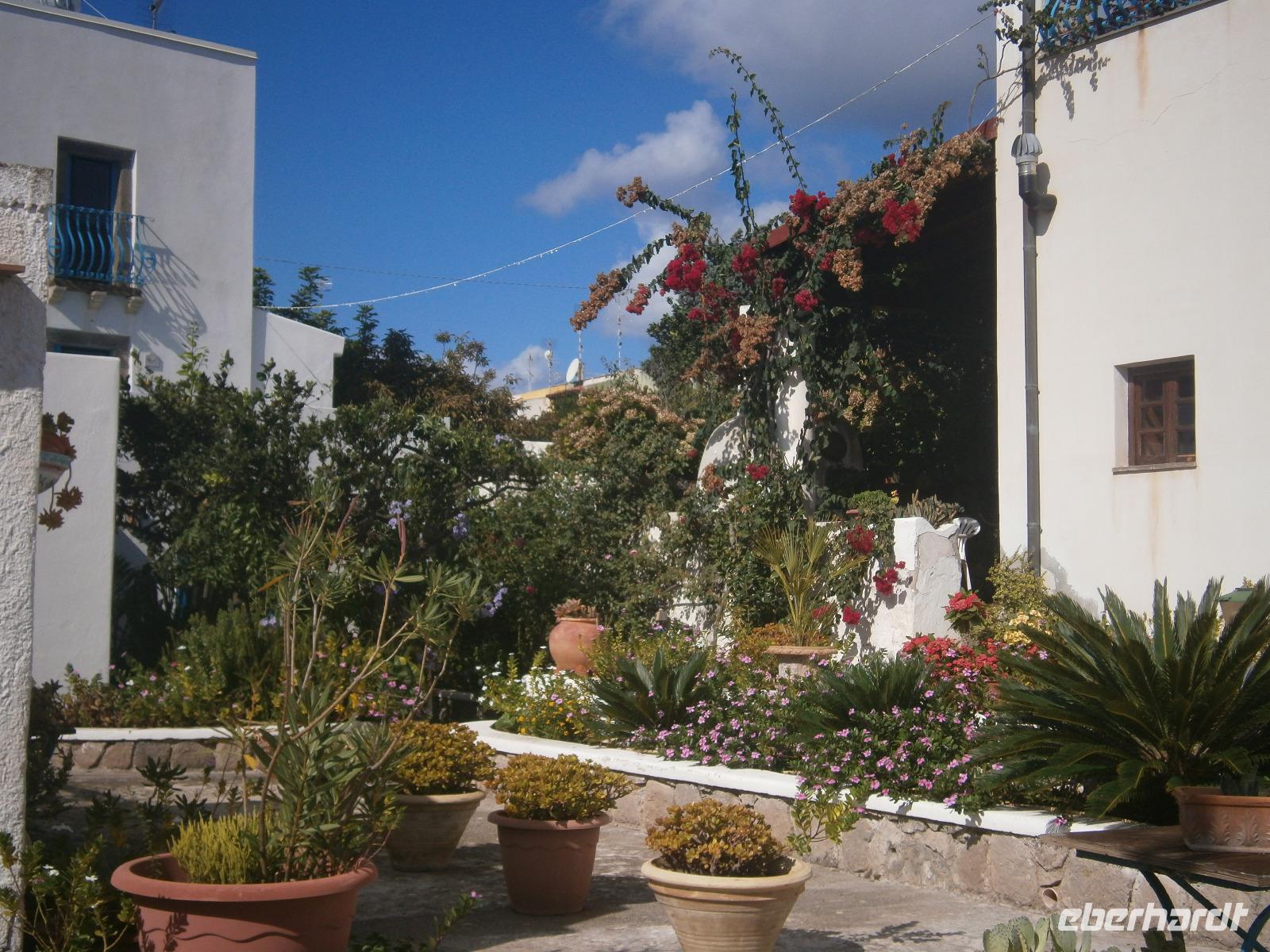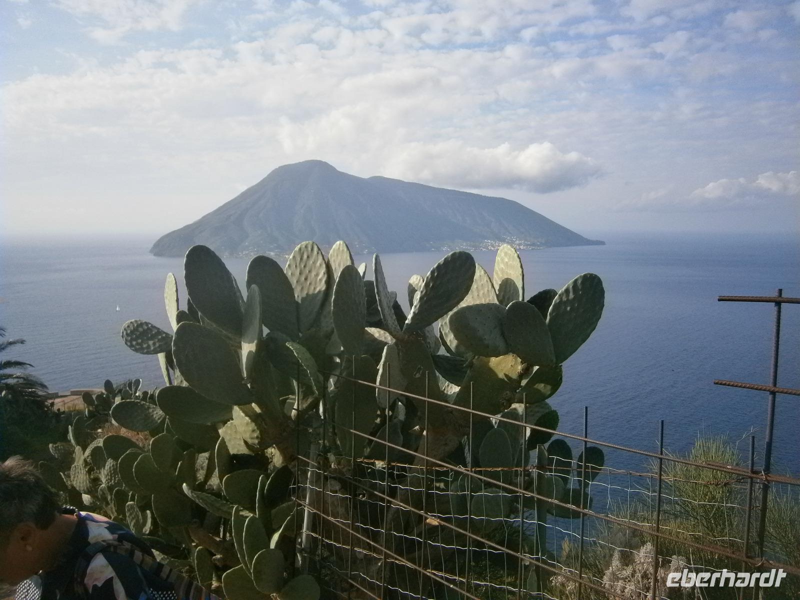 Nach einem ausgiebigen Frühstück auf der Sonnenterrasse des Hotels nahmen wir das Schiff von Lipari nach Salina. Eine schöne Fahrt übers Meer brachte uns dorthin. Da wir gern mehr von der Insel sehen wollten und das Museum geschlossen war, hatte uns Juliane auf unsere Bitte hin einen Bus für eine Inselrundfahrt bestellt. So entdeckten wir die Schönheit der Kaperninsel und waren auch auf den Spuren von Pablo Neruda und dem Postmann. Im Restaurant von Don Alfredo nahmen wir ein typisch italienisches Essen ein. Zum Nachtisch ließen wir uns seine berühmte Granita munden. Nach einem Spaziergang oder Sonnenbad brachte uns ein Schiff aus dem Hafen von Lingua zurück nach Lipari. Hier erreichte uns die Nachricht von einem angekündigten Scirocco, der unsere Rückfahrt von Stromboli unmöglich machen würde. Also hieß es das Programm zu ändern.