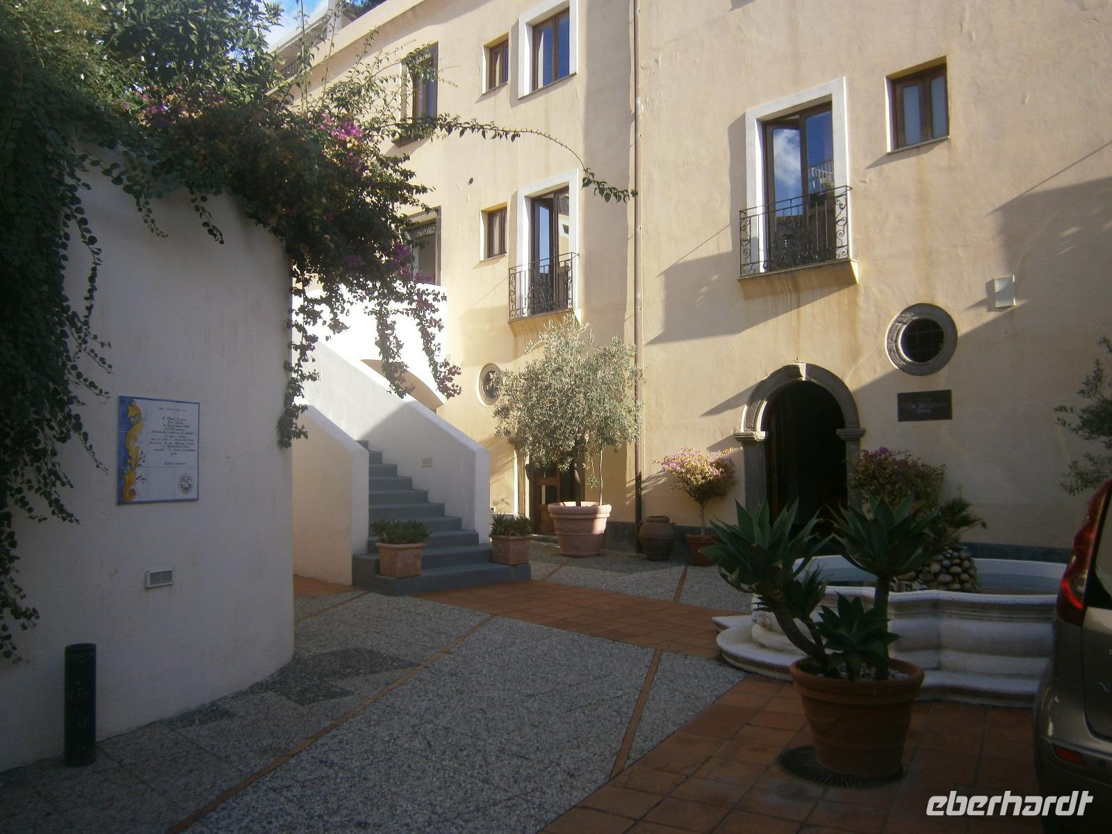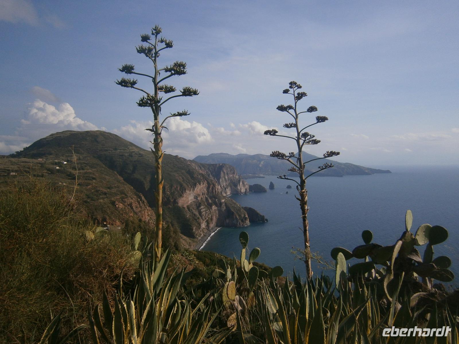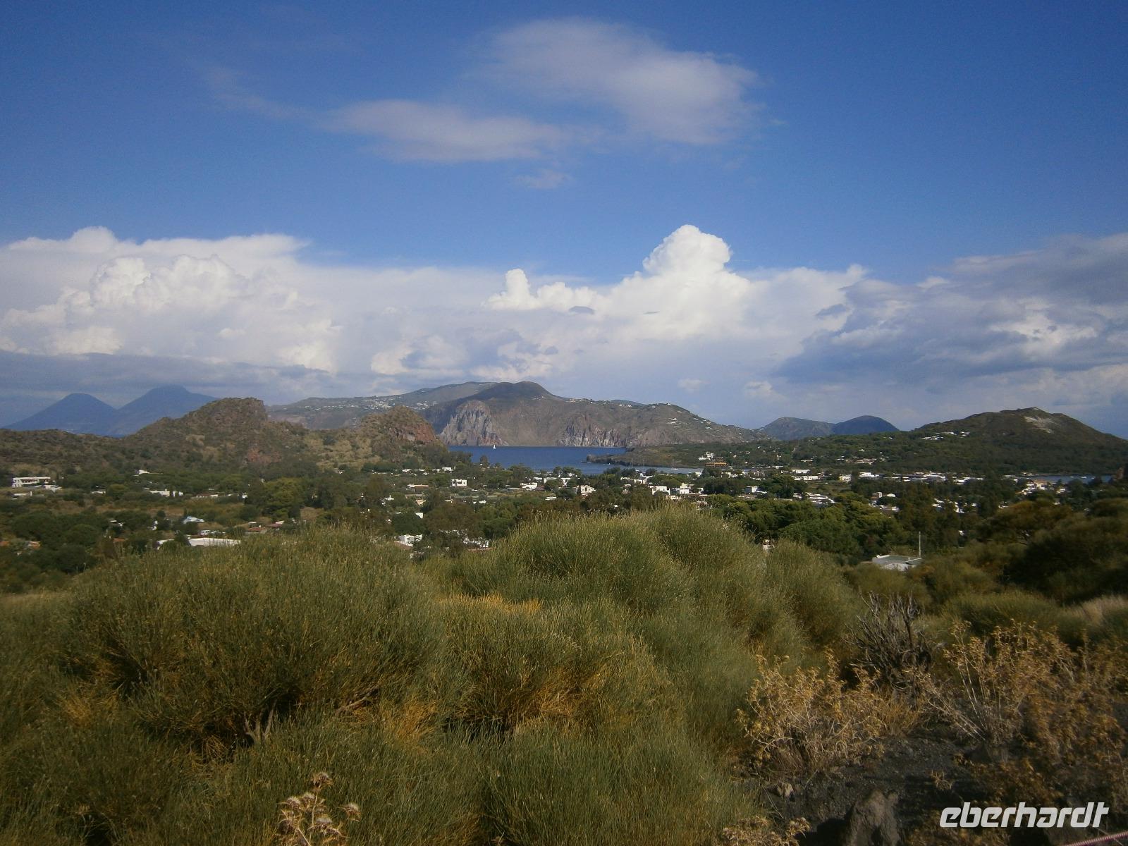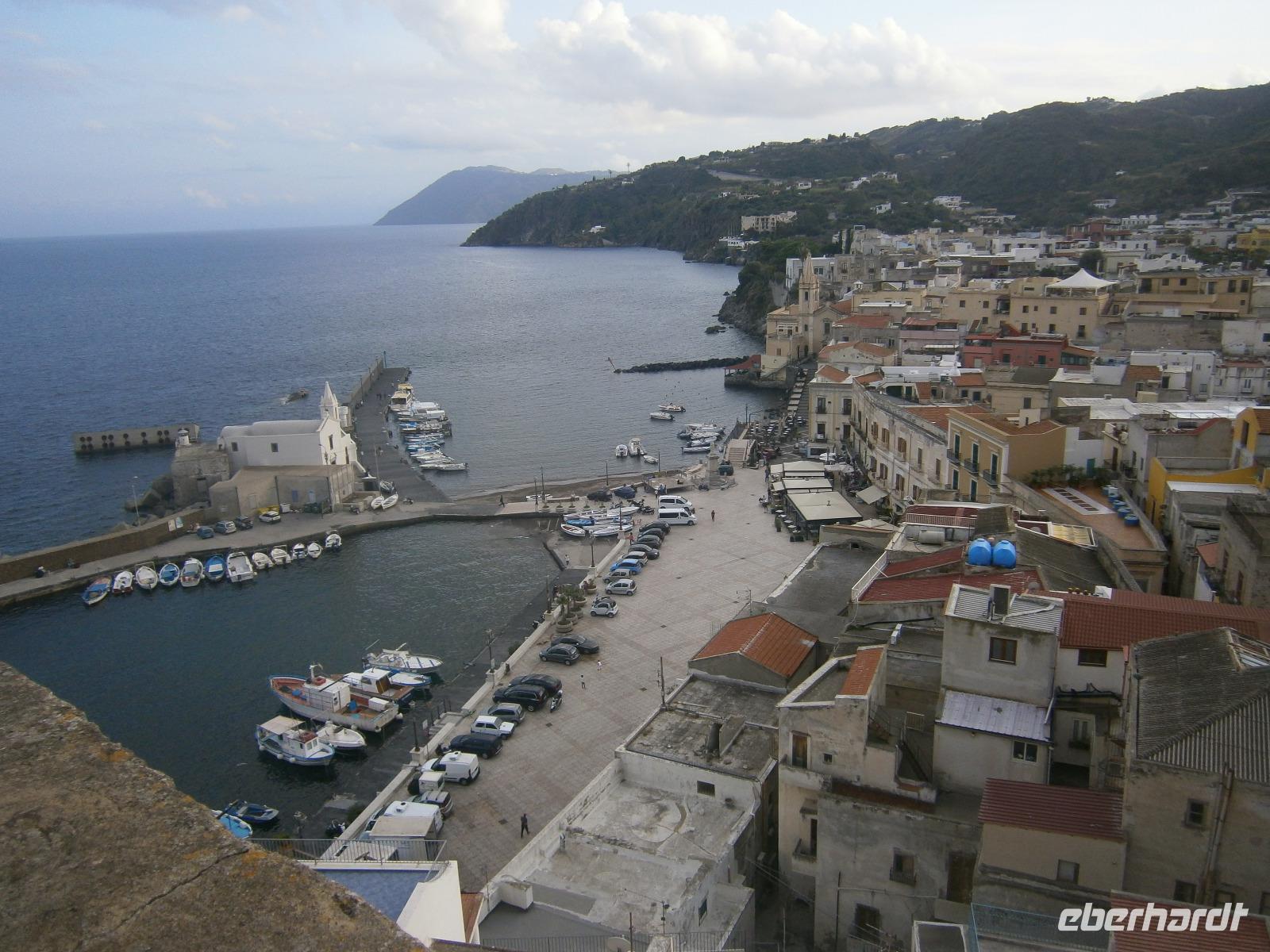 Nach einem ausgiebigen Frühstück auf der Sonnenterrasse des Hotels nahmen wir das Schiff von Lipari nach Salina. Eine schöne Fahrt übers Meer brachte uns dorthin. Da wir gern mehr von der Insel sehen wollten und das Museum geschlossen war, hatte uns Juliane auf unsere Bitte hin einen Bus für eine Inselrundfahrt bestellt. So entdeckten wir die Schönheit der Kaperninsel und waren auch auf den Spuren von Pablo Neruda und dem Postmann. Im Restaurant von Don Alfredo nahmen wir ein typisch italienisches Essen ein. Zum Nachtisch ließen wir uns seine berühmte Granita munden. Nach einem Spaziergang oder Sonnenbad brachte uns ein Schiff aus dem Hafen von Lingua zurück nach Lipari. Hier erreichte uns die Nachricht von einem angekündigten Scirocco, der unsere Rückfahrt von Stromboli unmöglich machen würde. Also hieß es das Programm zu ändern.