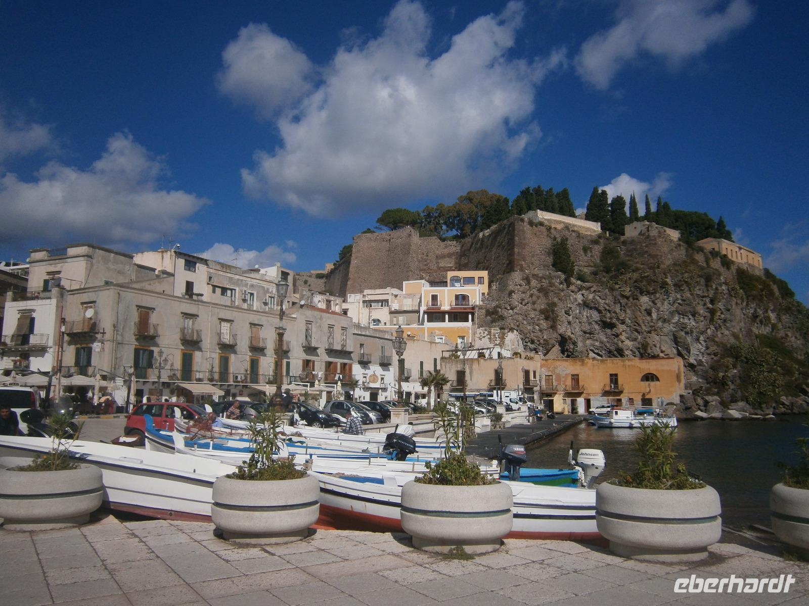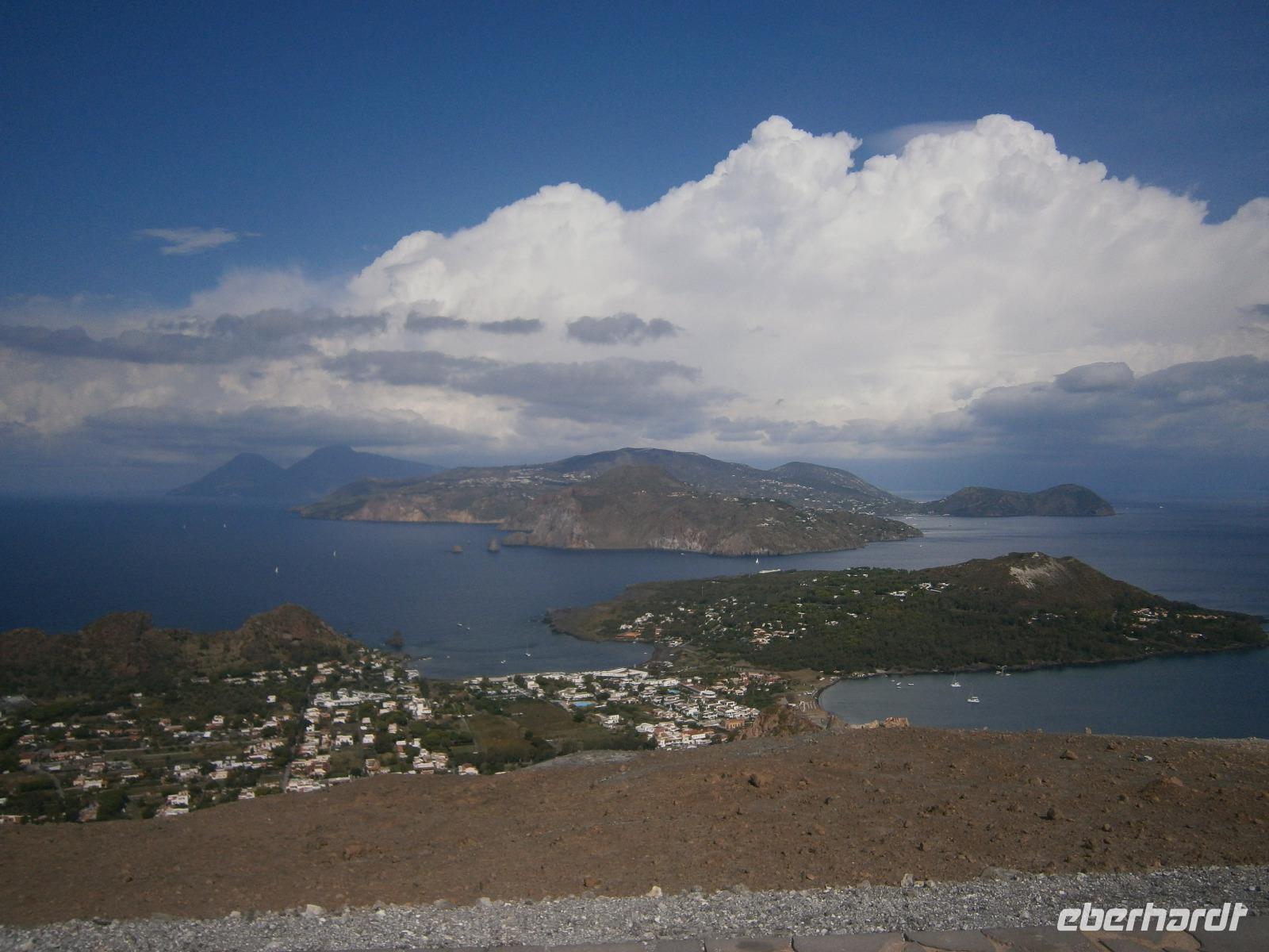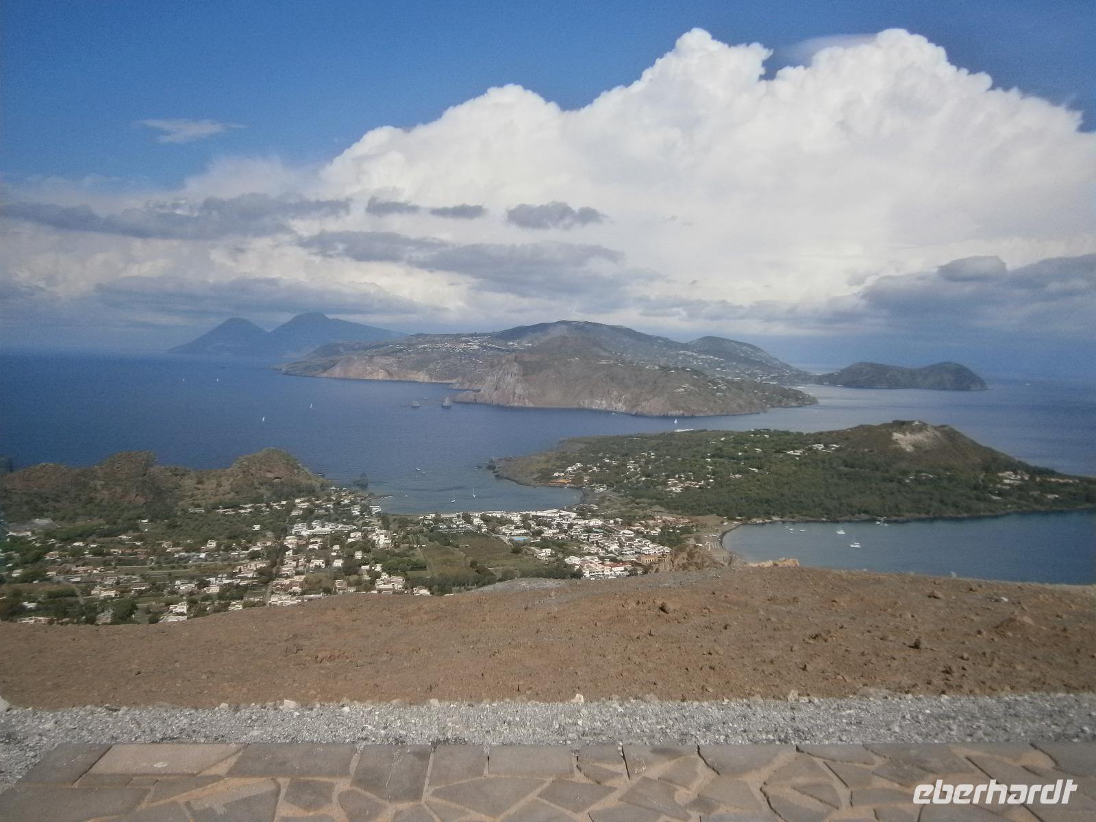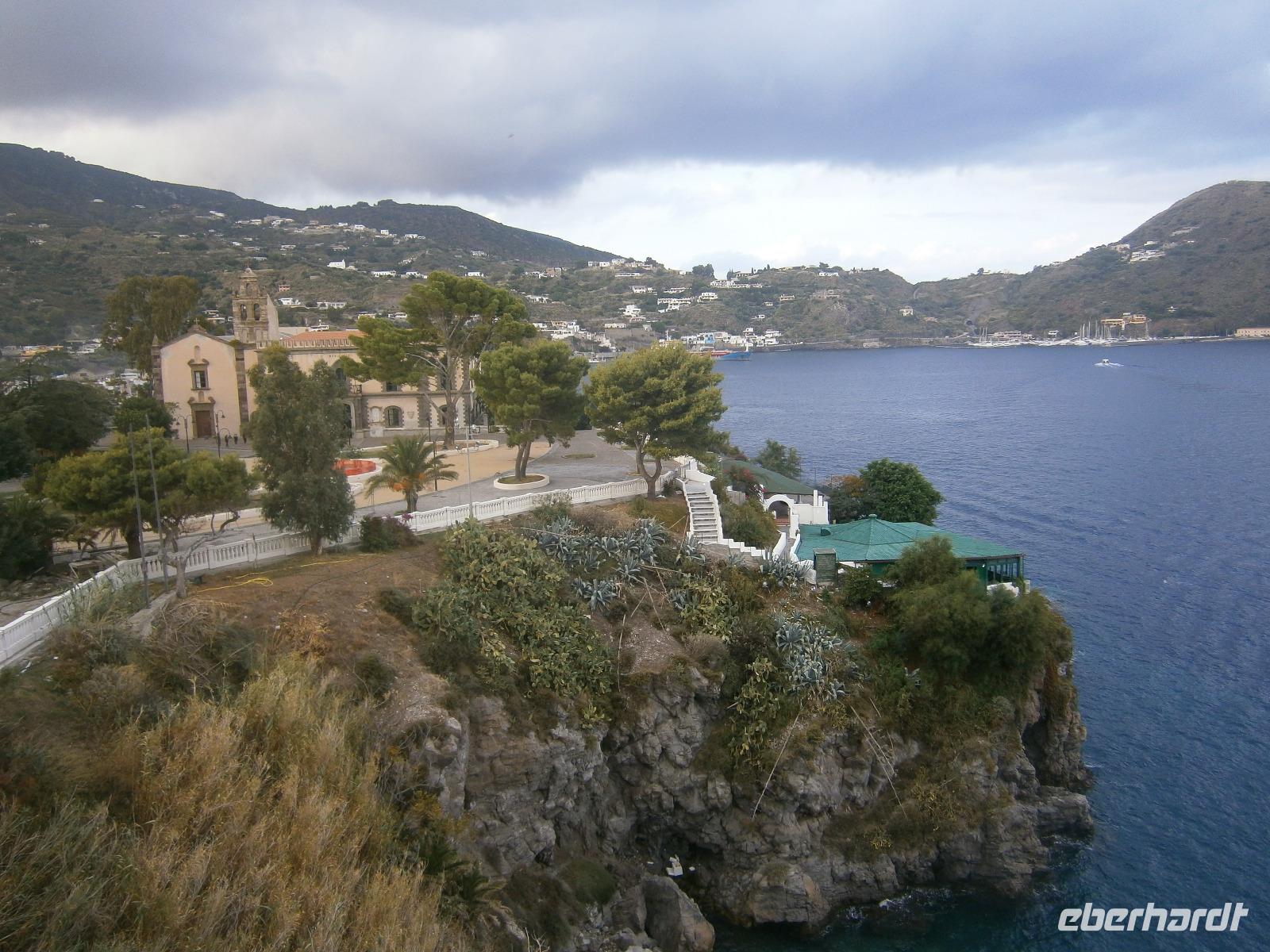 die Strasse von Messina. Nach dem Frühstück erreichten wir den Hafen von Catania, wo wir schon von unserer örtlichen Reiseleiterin Juliane erwartet wurden. Der Bus brachte uns bis auf eine Höhe von 1900 m, dann fuhren alle mit der Seilbahn und dem Shuttle höher hinauf. Ein Bergführer begleitete uns zu einem Krater und führte uns an diesem entlang. Sogar die selten zu sehenden Ätnamarienkäfer konnten wir entdecken. Das Wetter war herrlich und so genossen wir auch eine fantastische Sicht auf die Ebene von Catania! Weiter ging's in Richtung Nordosten mit Blick auf die Straße von Messina zum Hafen von Milazzo. Ein Tragflächenboot brachte uns auf die schöne Insel Lipari, die für die nächsten Tage zu unserer „Heimstadt" wurde.