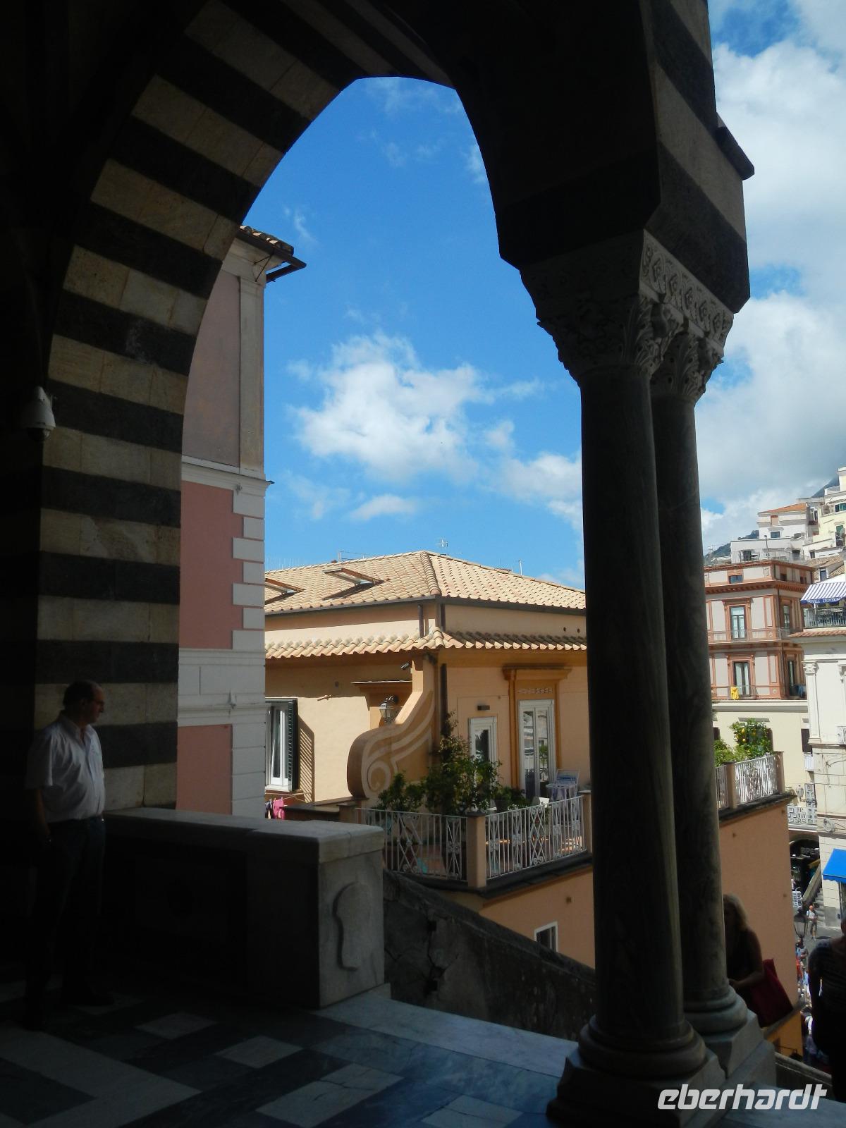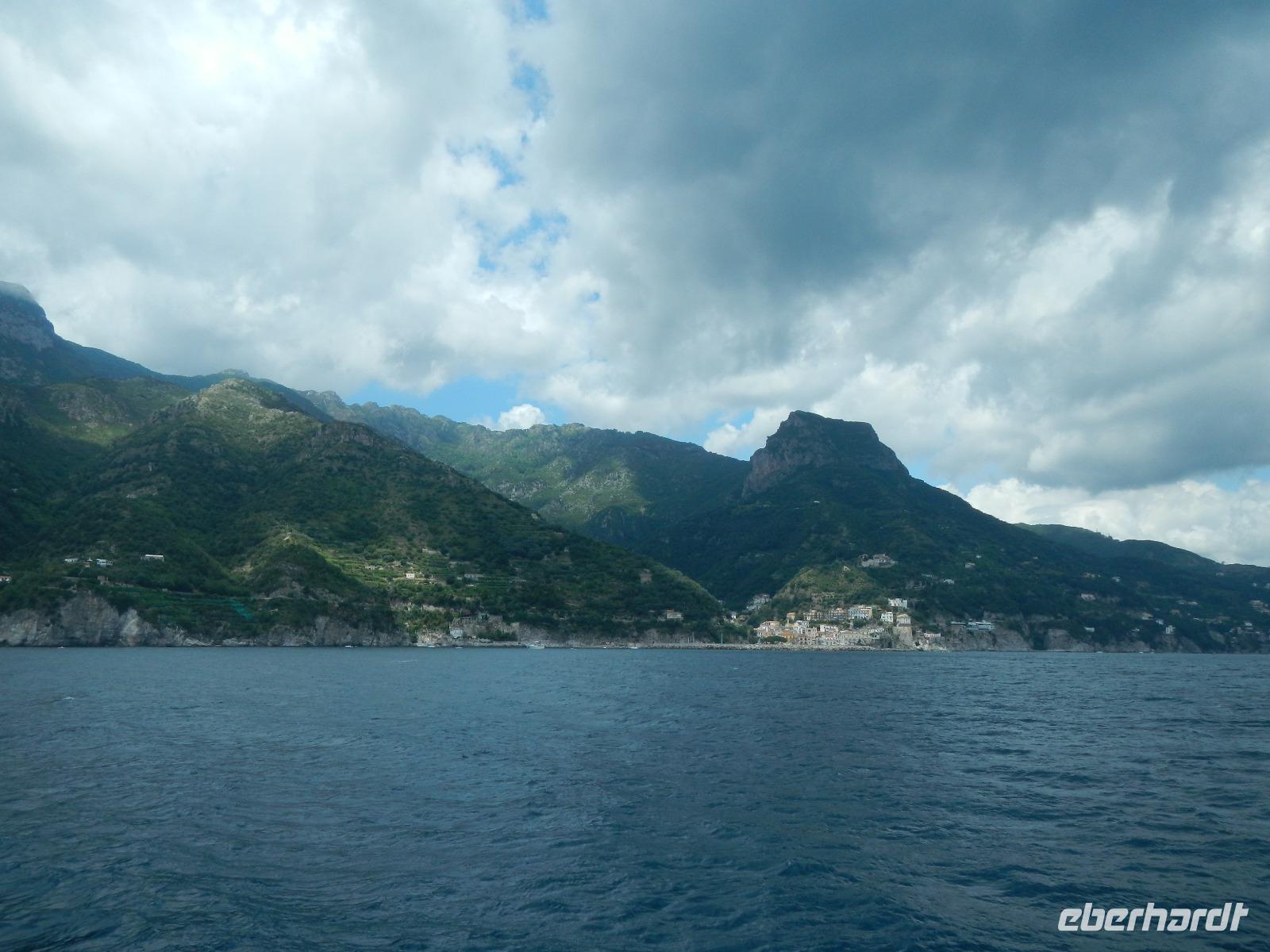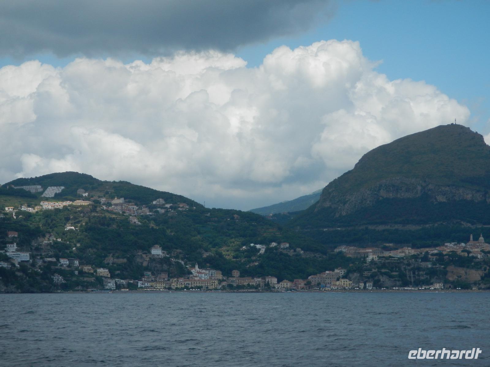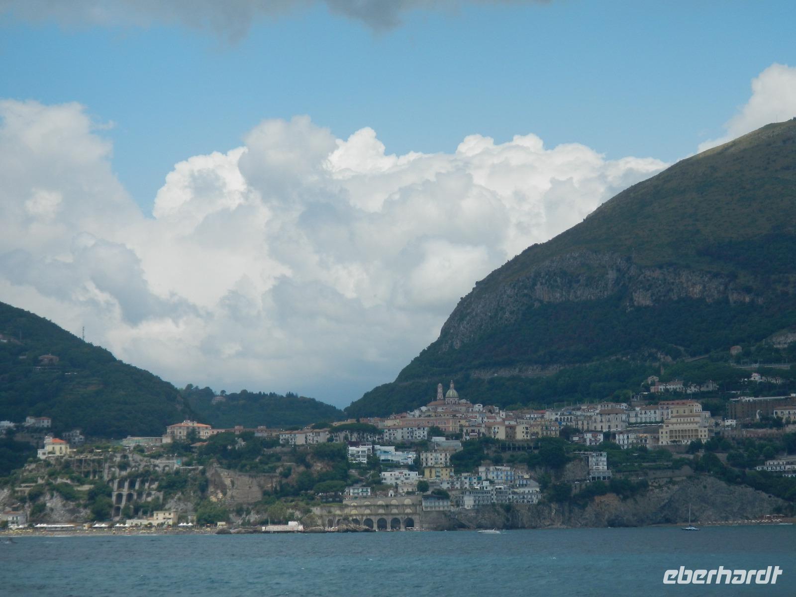 Der Ort verfügt über einen Busparkplatz mit einen angrenzenden Badestrand und einem kleinen Kai, der als Hafen dient. Die Besichtigung des Domes beginnt mit den Erläuterungen zum Paradieskreuzgang mit seinen in sich verflochtenen Bögen, die auf schlanken Säulen ruhen. Dieser Platz diente als letzte Ruhestätte für amalfitanische Edelleute. Unser Blick schweift ebenso auf den mit Majolikakacheln dekorierten Glockenturm bis wir zur Krypta gelangen. Hier wurden 1208 die Gebeine und der Kopf des Heiligen Andreas beigesetzt. Es bildet das Zentrum Amalfis. Nach etwas Freizeit treffen wir uns im Hafen und unternehmen eine Bootsfahrt mit Perspektivwechsel bis nach Salerno. Am Nachmittag fährt uns unser Chauffeur zum Landgut "Le Colline" in Sorrent. Hier leben und arbeiten 10 Familien in einer Genossenschaft und kümmern sich um den Anbau und die Verarbeitung von Zitronen, Oliven, Wein und Käse, dessen Milch deren Kühe im Stall liefern.