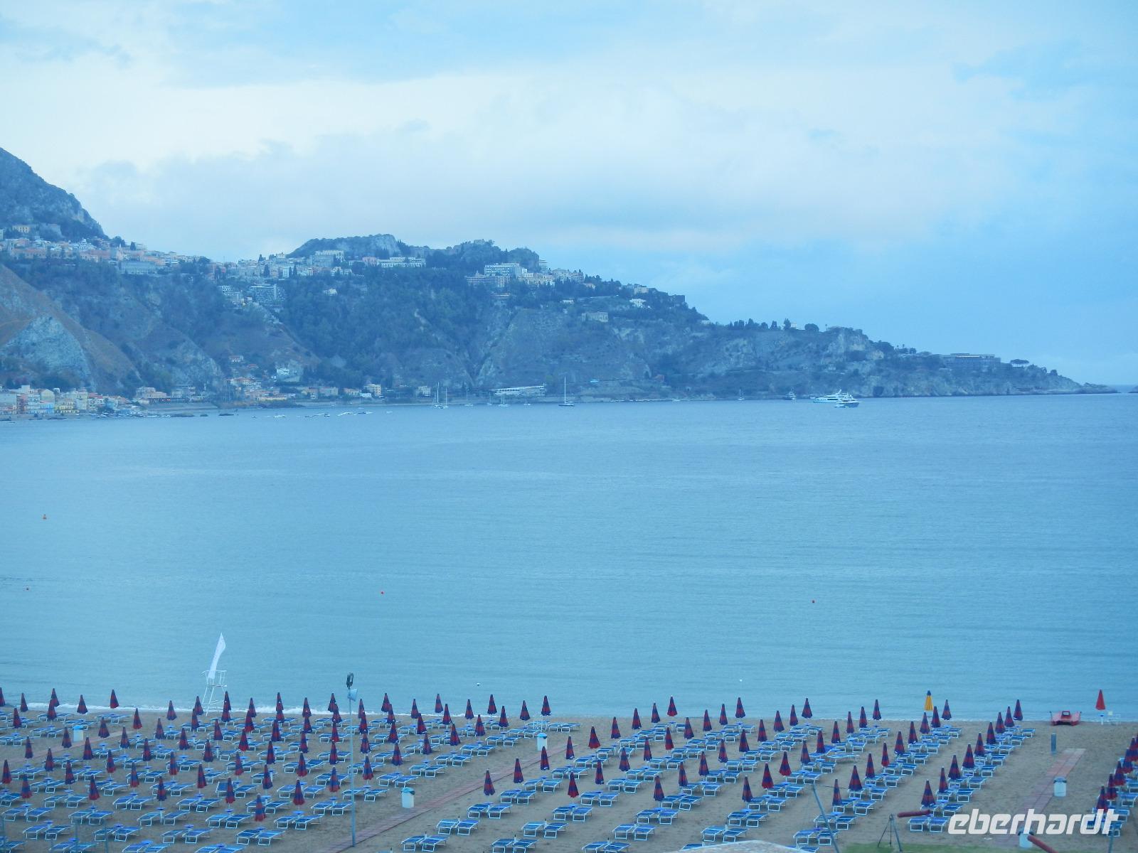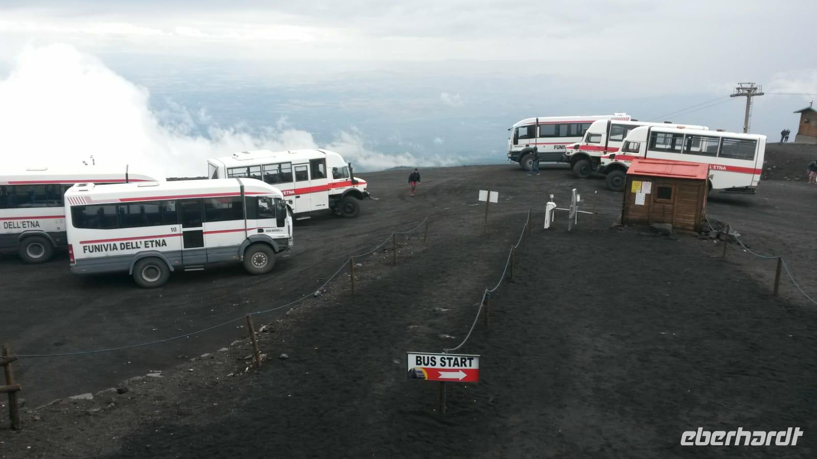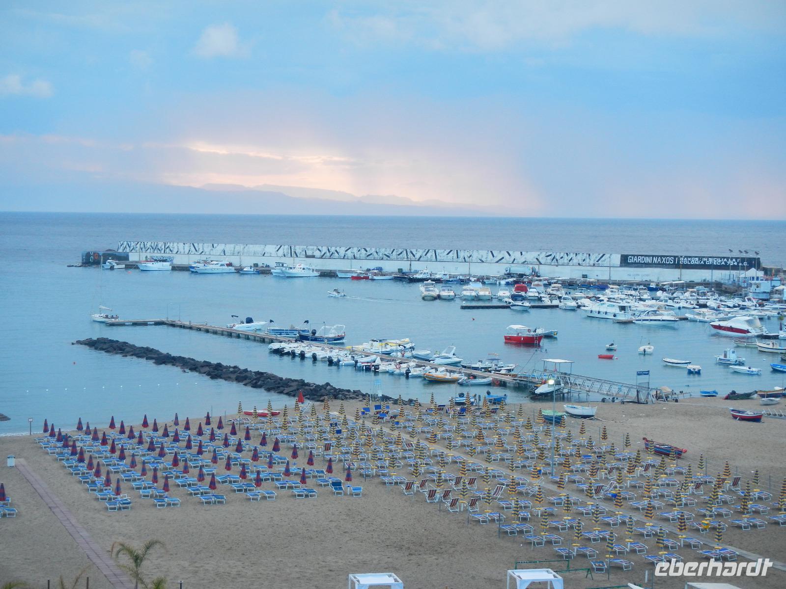 Alle Gäste sind wohlauf, rüsten sich, soweit nicht im Koffer verstaut, mit Regenschirmen und Wetterjacken aus, denn der Himmel „weint", als wir zu unserem Boot im Hafen laufen. Hier steht diese schon zum „Abflug" bereit, denn es überkommt einem förmlich das Gefühl über das Meer zu fliegen. Tiefe Wolken und ein freundlicher Fahrer begrüßen uns in Milazzo. Wir stopfen alles Mitgebrachte in den Kleinbus und reisen in Richtung Giardini Naxos zu einem kurzen Zwischenstopp in's Hotel. Am Meer zeigt sich die Sonne, und es ist sommerlich warm, je höher wir jedoch den Ätna per Bus erklimmen, desto mehr versteckt sich dieses Vulkanmassiv (ca. 1200qkm) vor uns. Wir haben eher den Eindruck, einen Nebelwald zu erobern aus dem uns gleich eine Horde von Dinosauriers begegnen wird. Doch wir sind wild entschlossen auf den höchsten, aktiven Vulkan Europas zu gelangen. Bis auf eine Höhe von 2000 m chauffierte uns der Bus. Mit der Seilbahn (gegen Gebühr) schweben wir auf ungefähr 2500 m und bemerken schon einen merklichen Temperaturwechsel, sehen die immer karger werdende Umgebung. Wir steigen um in bereitstehende Geländewagen, und ausgebildete Bergführer zeigen uns die graue Mondlandschaft, die bis auf 3000 m hinauf führt. Hier ist es knackig kalt, die Wolken ziehen an uns vorüber, lösen sich für ein paar Sekunden auf, sodass wir die bizarre Kraterlandschaft kurz erblicken. Es ist ein Schauspiel der Natur. Zurück in der Talstation gönnen wir uns etwas Warmes. Einen letzten lauen Sommerabend dieses Urlaubs verbringen wir gemeinsam am Strand von Giardini Naxos, den wir bei Limoncello und Pistazienlikör und Blick nach Taormina ausklingen lassen.
