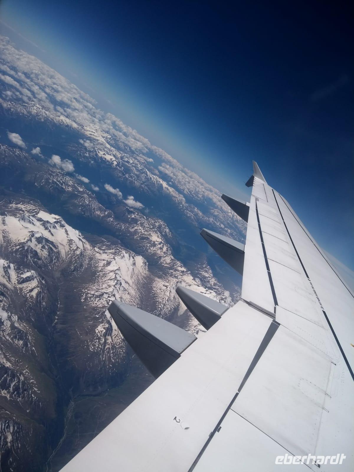 Uns freut es sehr, dass der Weiterflug nach Neapel planmäßig ist. Es bietet sich uns ein fantastischer Blick über die schneebedeckten Gipfel und die grünen Täler aus der Vogelperspektive.