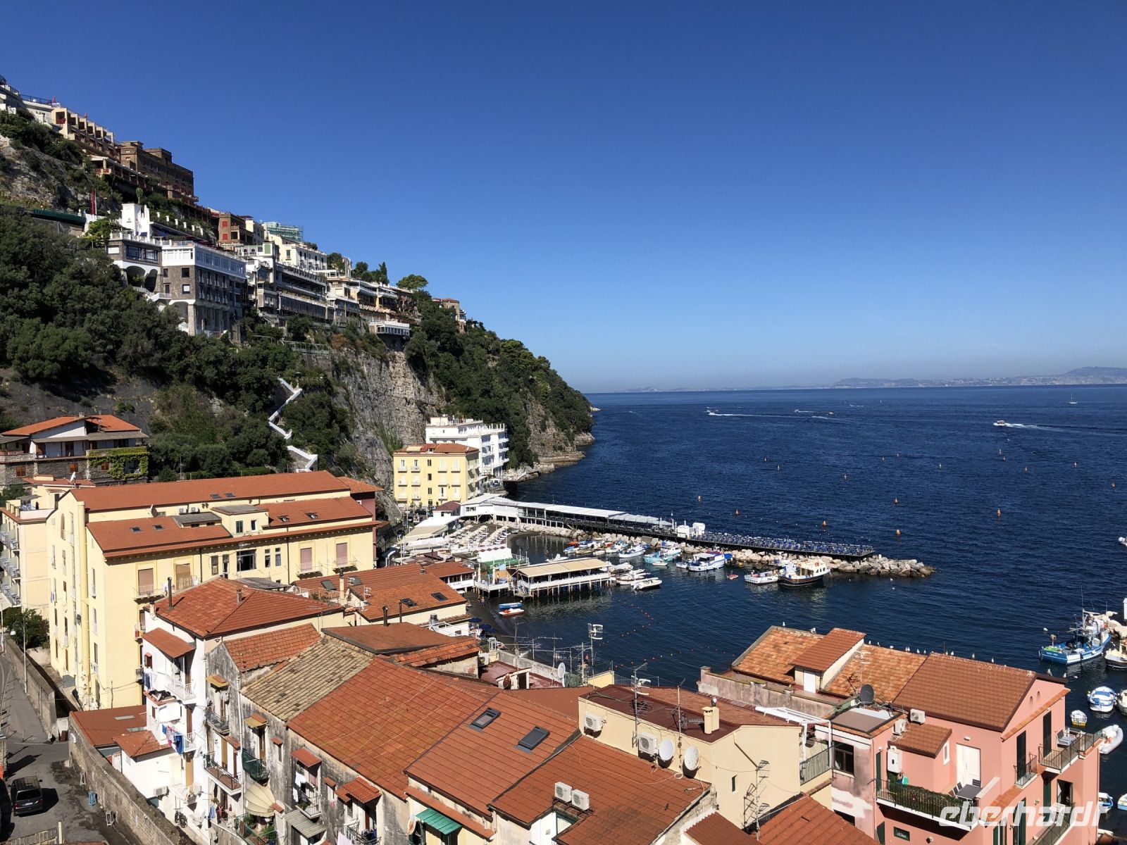 Nach 50 km an der Küste entlang, erblickten wir im Hinterland bereits wieder den Vesuv und entschlossen uns, eine Pause in Sorrent einzulegen, für ein spätes Mittagessen oder die Möglichkeit einkaufen zu gehen.