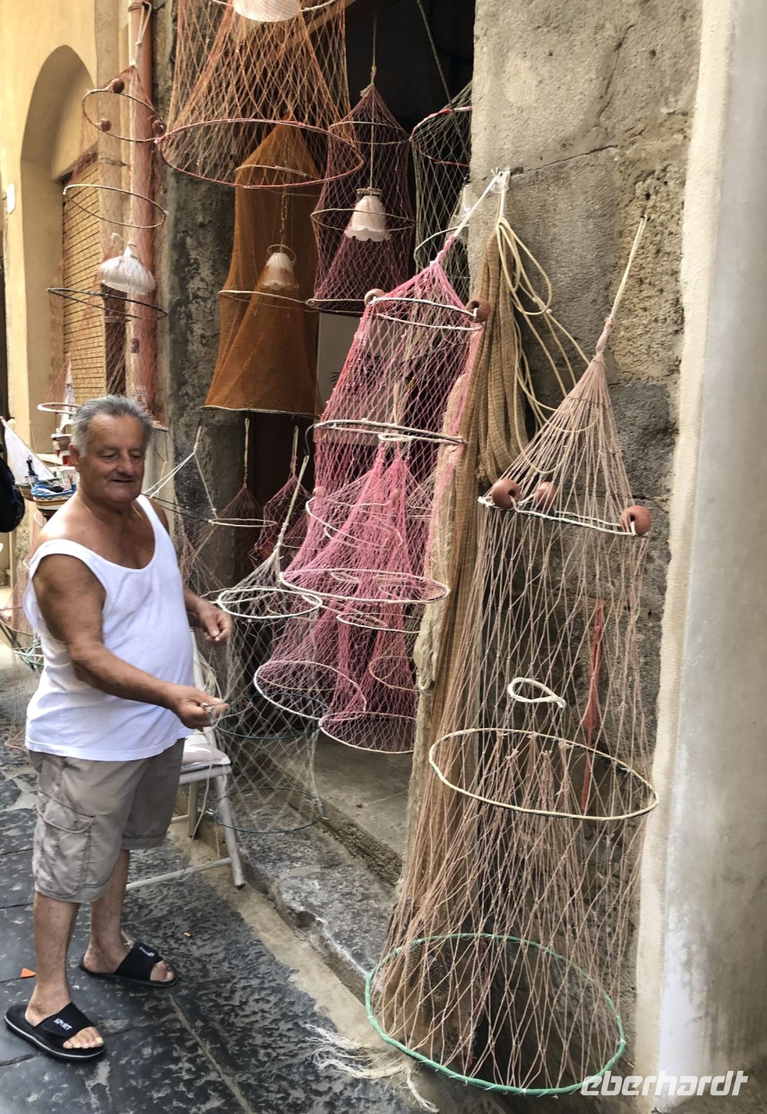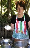 Mit Rosa entdeckten wir die Geheimnisse der Mozzarella-Herstellung. In Sorrent wird Mozzarella traditionell aus Kuhmilch hergestellt. Heißes und kaltes Wasser sowie der richtige Schwung sind notwendig, um aus dem vom Vortag entstandenen Rohkäse, eine Rosette zu formen, die gleichmäßig auf Rosas Hand thronte. Im Gegensatz zu diesem nur kurzzeitig haltbaren Käse, steht der Queso de Caballo. Dieser reift mindestens einen Monat hängend, nachdem er vorher in Salzwasser eingelegt wurde. Und der Rest wird verarbeitet zu Ricotta, wenig Fett und sehr gesund.
