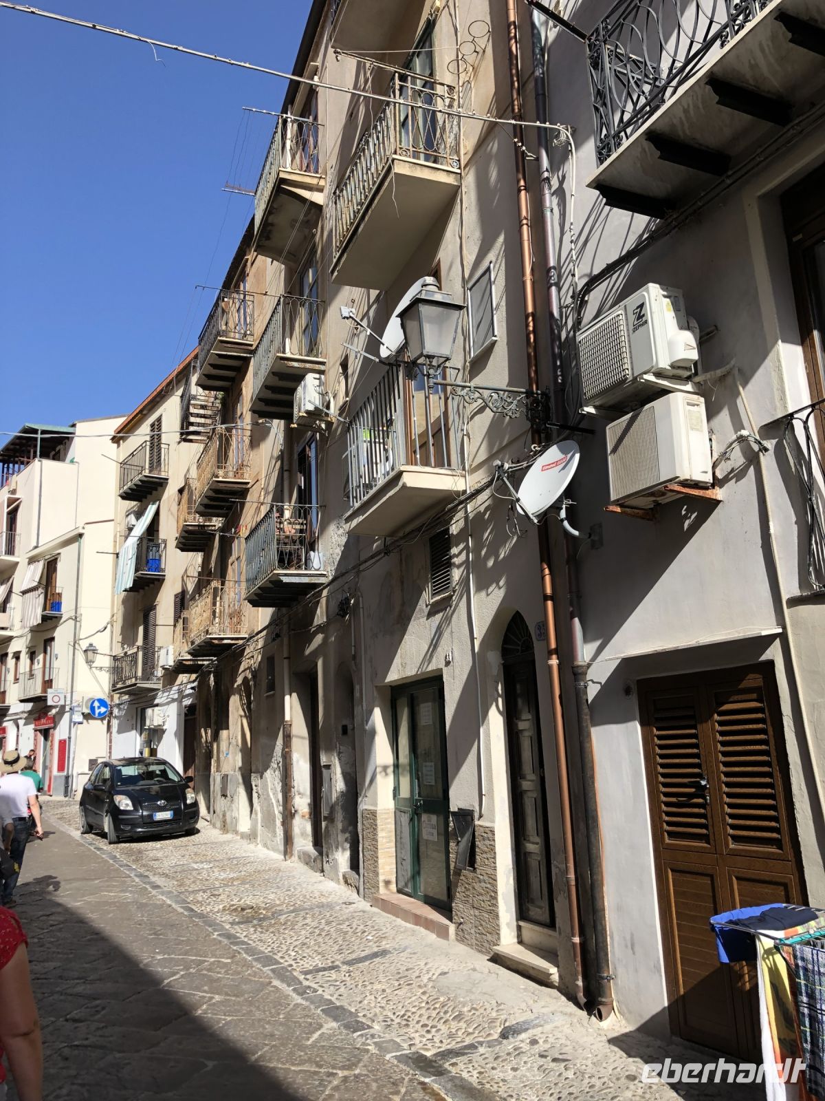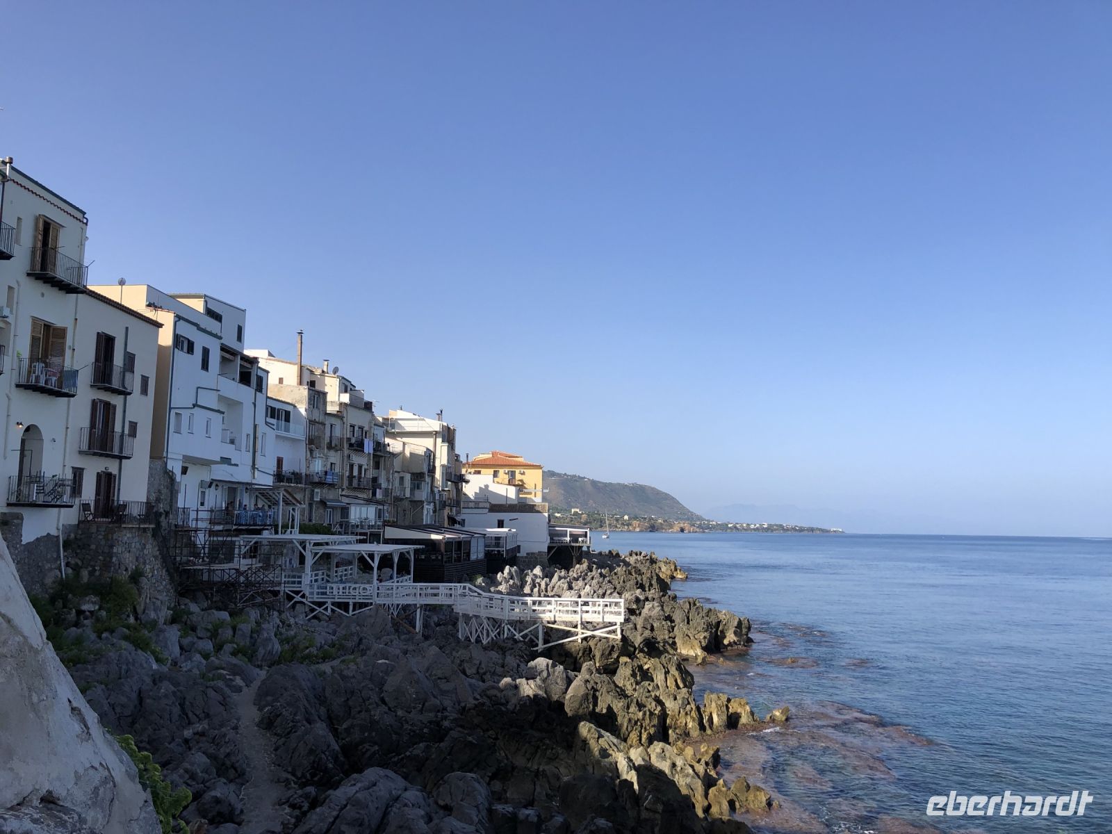 Wir näherten uns dem historischen Viertel von der Seite des Meeres, liefen auf einem schönen Küstenweg über schroffe Felsen und genossen die Sonnenstrahlen des sizilianischen Morgens. Mit Silia erkundeten wir das noch verschlafen wirkende Städtchen, die ersten Geschäfte öffneten und die Restaurantbesitzer stellten die Stühle auf den Gehsteig. Wir besuchten derweil das mittelalterliche Waschhaus, das vollständig in den Fels gehauen und bis vor kurzem noch täglich genutzt wurde. Über eine eindrucksvolle Lavasteintreppe, die sogenannte "Lumachella" gelangten wir zu den Waschbecken, in denen das Wasser des Fiume Cefalino aus zweiundzwanzig gusseisernen Rohren fließt. Die Leute hier sagen, das Wasser des Flusses Cefalino wäre kälter als Schnee und reiner als Silber, heilsam eben.