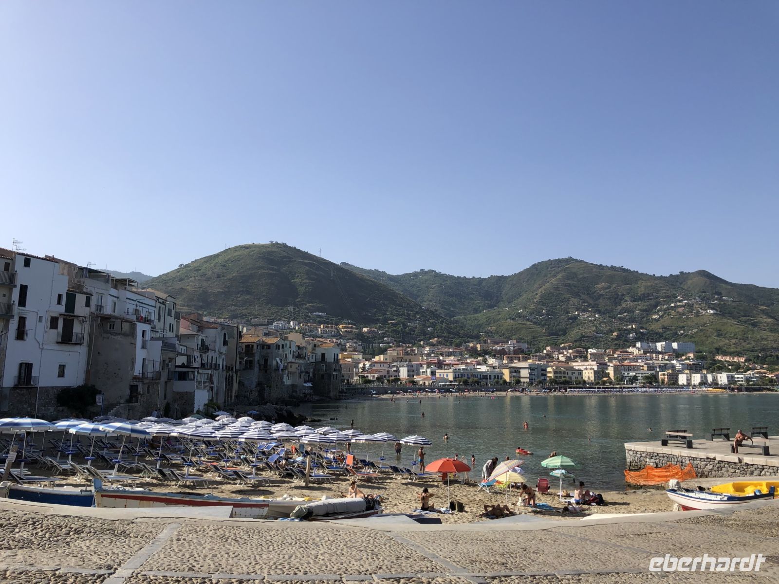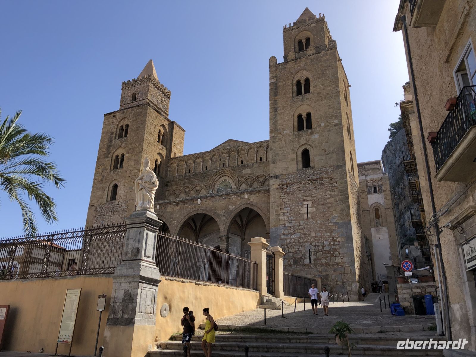 Am nächsten Morgen wachten wir mit Blick auf Sizilien auf. Vor dem Hafen wartete bereits unser Bus und brachte uns nach Cefalú, einer kleinen Küstenstadt an der Nordküste Siziliens. Schon von weitem sahen wir den monumentalen, 270 m hohen Felsen mit seinem Leuchtturm, auf dem einstmals ein Dianatempel stand. Dort stand nicht Diana sondern Silia, unsere lokale Reiseführerin, um uns „ihre“ Stadt zu zeigen.