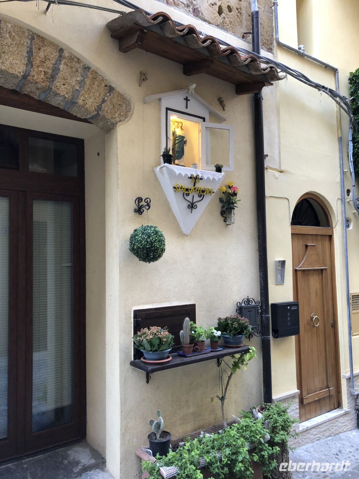 Doch zuvor wartete erst noch der Dom auf uns, eine gigantische Kathedrale, die von Ruggero II. dem Normannen in Auftrag gegeben wurde und eigentlich viel zu protzig über dieser kleinen Stadt thront. Verstärkt wird dieser Eindruck noch durch die antiken megalithischen Mauern, von denen es entlang der Giudecca-Klippen und an der antiken Porta Terra, der heutigen Piazza Garibaldi noch Überreste zu sehen gibt. Silia erzählte uns von der Legende, die besagt, dass die Kathedrale nicht in Palermo, der Hauptstadt des Königreichs erbaut wurde, weil Roger als er einem Sturm entkam und an den Stränden der Stadt landete, einen Schwur vor dem Heiland ablegte, hier eine Kathedrale zu errichten. Es ist jedoch durchaus wahrscheinlich, dass auch politische oder militärischen Gründe eine Rolle bei der Entscheidung spielten. Dieses Bauwerk beeindruckte uns nicht nur durch seine zwei imposanten Türme, sondern ebenfalls durch das Gold der Wände und die arabisch anmutenden Mosaike. Die Fenster sind neu und modern interpretiert, doch ohne Silias Erklärungen hätten wir sicher nicht so einfach deren Sinn erfasst.
