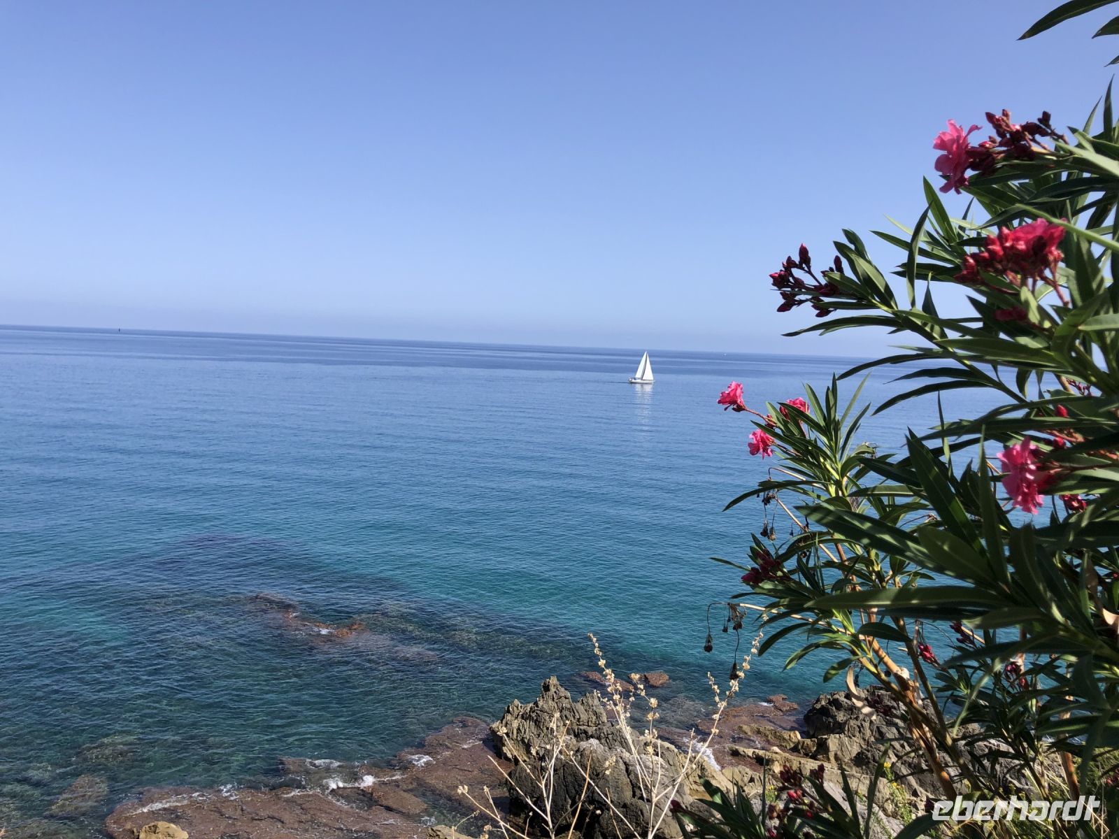 An einem wunderschönen Aussichtspunkt blieb Zeit für das ein oder andere Foto vom Meer und den Nachbar-Inseln, doch die Schau stahl ihnen, trotz ihrer Schönheit, eine kleine Katze, die unter den Bougainvillean das fast noch beliebtere Fotomotiv wurde.