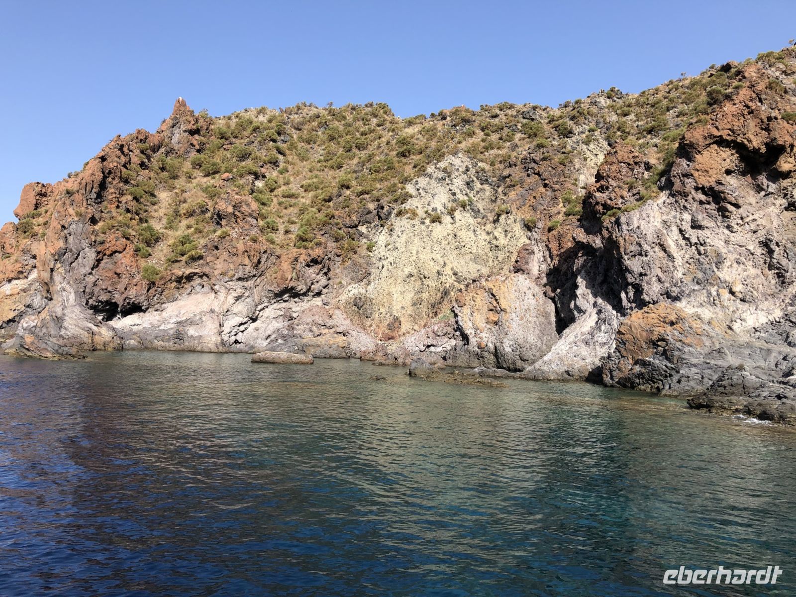 Interessant der Anblick der Insel Volcano, denn von unserer Anhöhe aus, waren die vulkanischen Formationen perfekt sichtbar und die geologische Entwicklung der Insel besser nachvollziehbar.