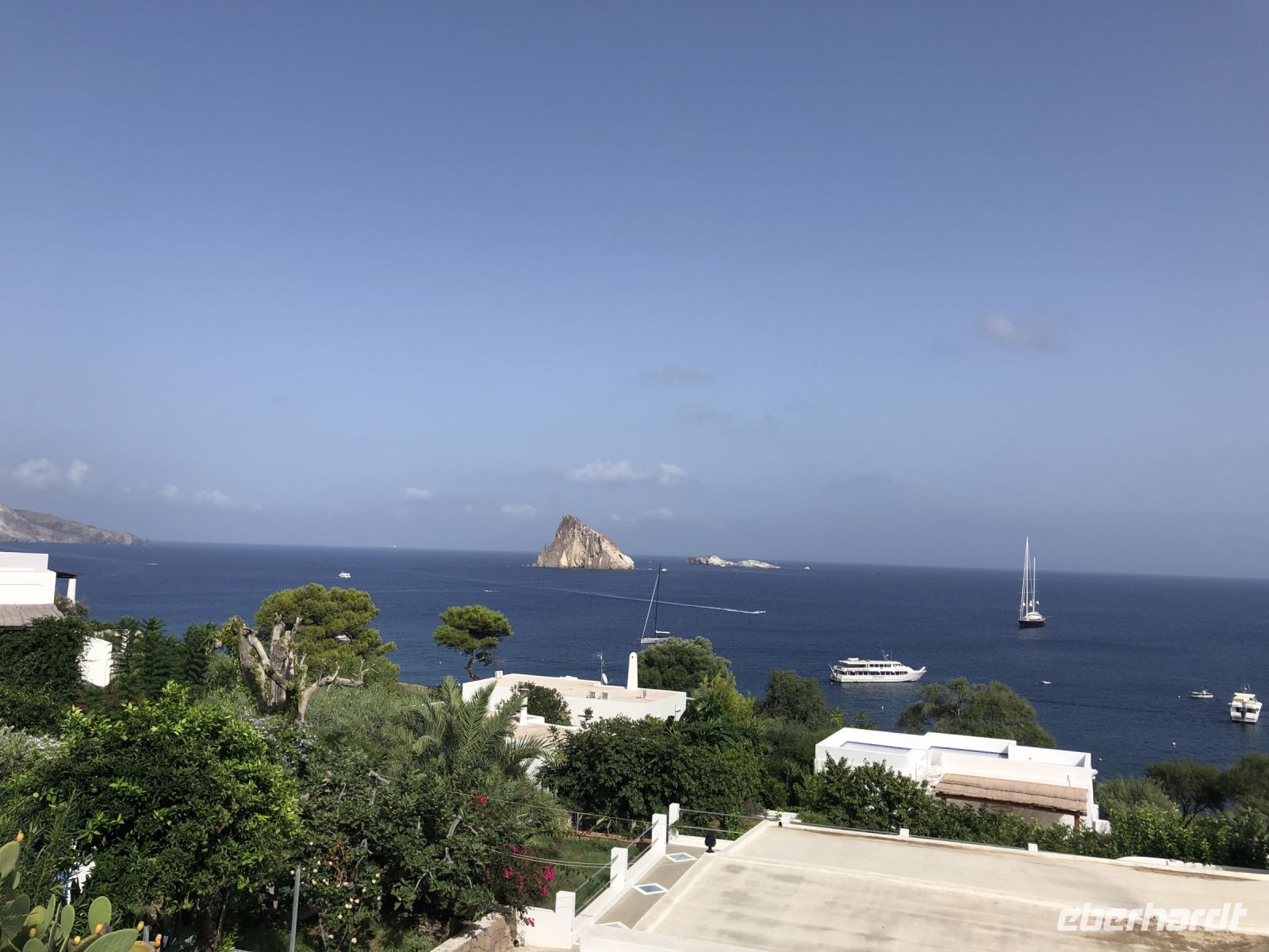 Zuerst blieb aber der Vormittag zur freien Verfügung, zum Baden, Bummeln oder für weitere Inselerkundungen. Nach dem Mittagessen liefen wir zielstrebig Richtung Marina Corta, dem kleinen Hafen entgegen. Den Weg kannten wir schließlich, so dass Elisabeth dort auf uns wartete. Heute stand ein Ausflug nach Panarea, der „ältesten“ und Stromboli, der "jüngsten" Insel auf dem Programm. Wieder mit auf dem Boot dabei unsere lautstarke, italienische Gruppe.