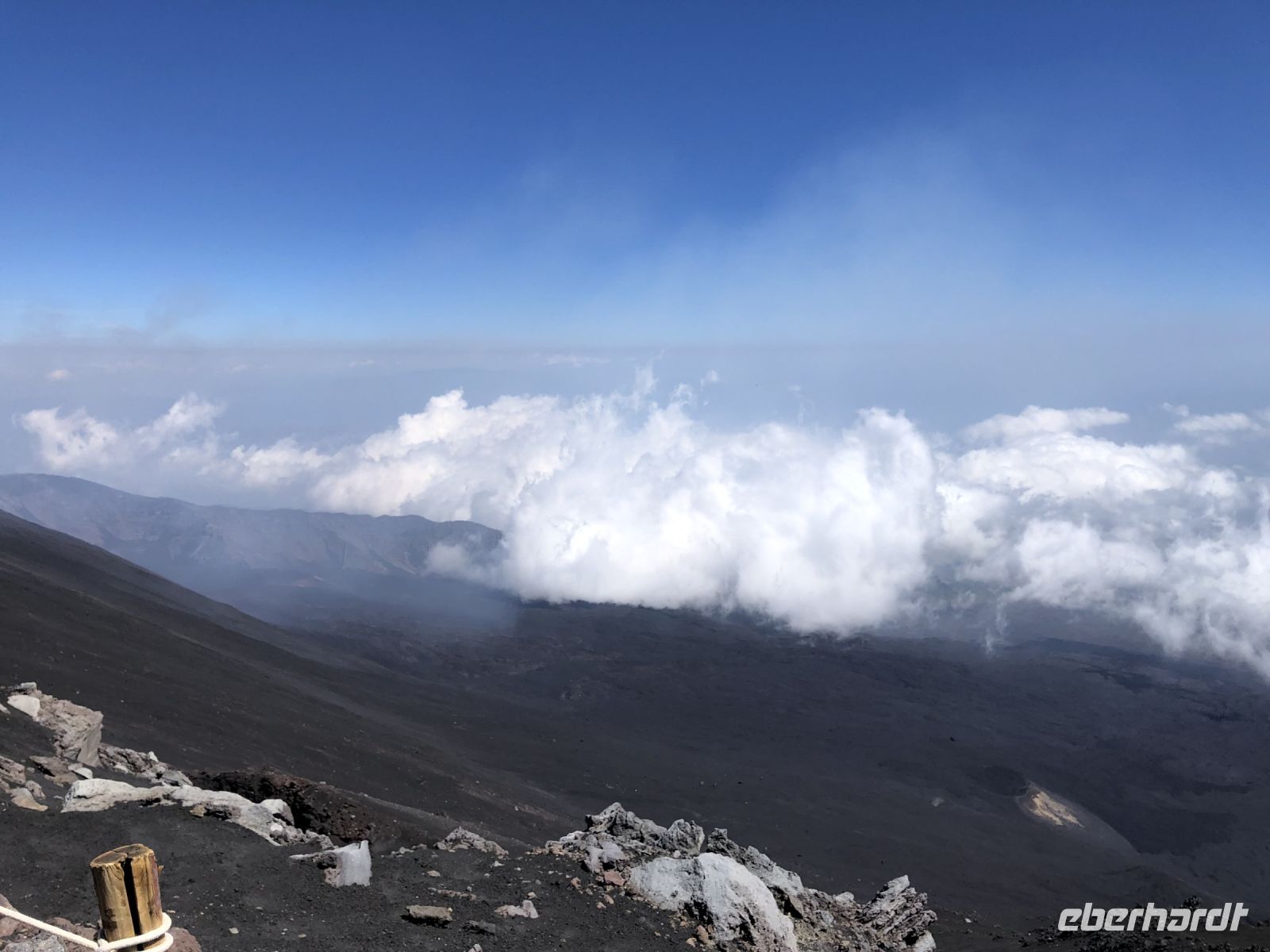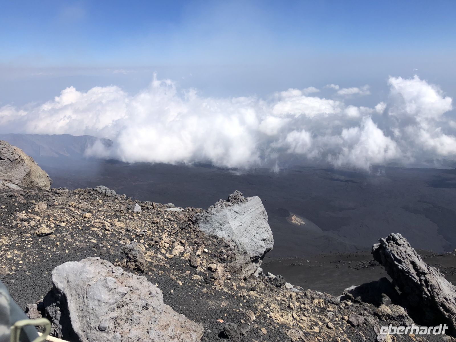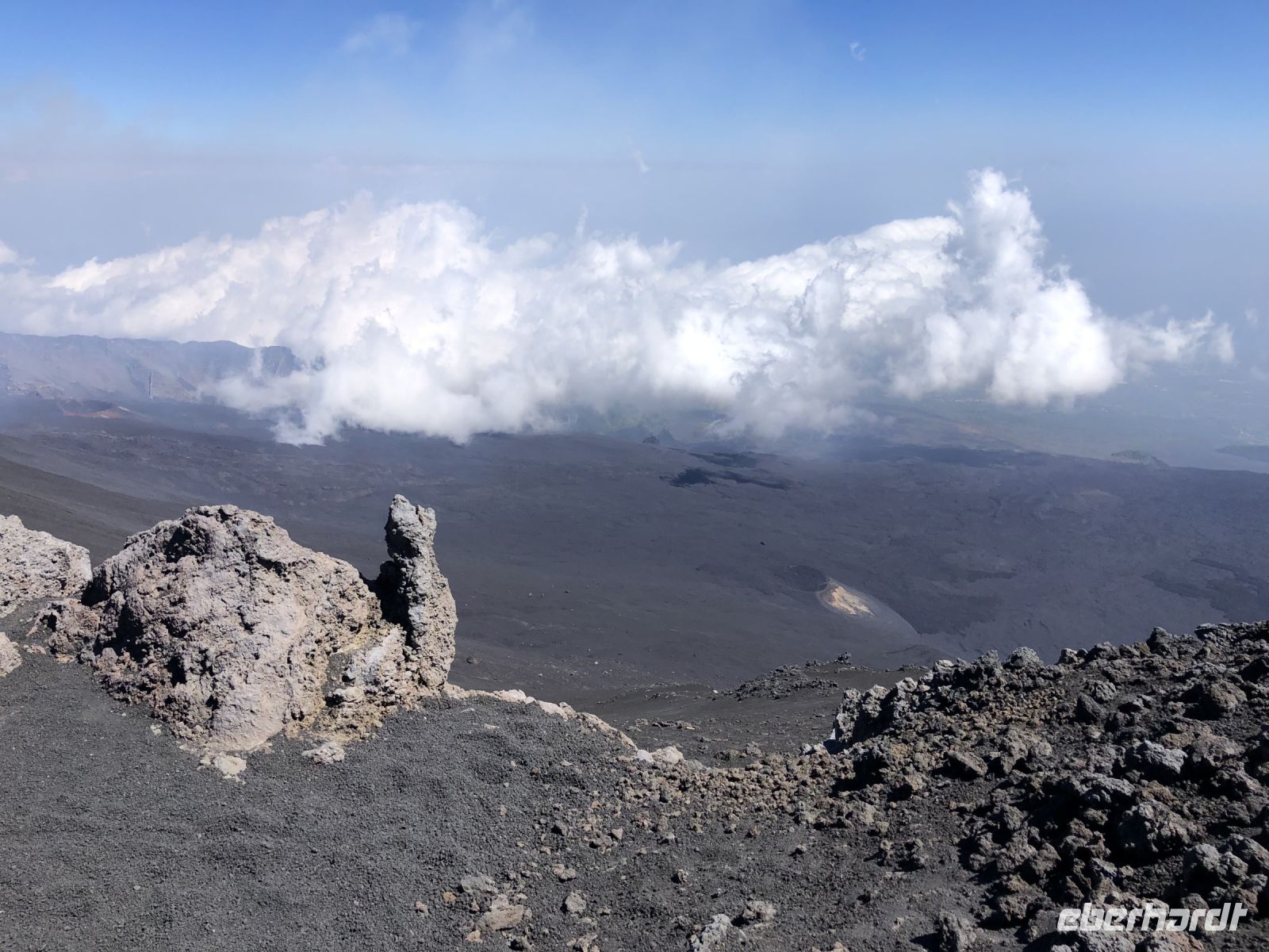 Wir wendeten uns dem Hauptakteur zu, dem Vulkan, der 924 m aus dem Wasser ragt und fast 2000 m unter die Wasseroberfläche reicht. Besonders bei Nacht sind die aufleuchtenden Flammen der Explosionen von Weitem so gut sichtbar, dass die Seeleute in der Antike den Vulkan auch als "Leuchtturm des Mittelmeers" bezeichneten. Es sei denn, der Stromboli bedeckt sich mit einer flauschigen Wolkendecke – so wie das bei uns der Fall war. Geduldig warteten wir vor dem steilen Abhang der Sciara del Fuoco - die Straße des Feuers - an der Nordseite der Insel. Alle 15-20 Minuten soll glühendes Lavagestein aus dem Vulkankegel geschleudert werden, das oft auf der Sciara del Fuoco hinunter ins Meer rollt. Auf dieses unvergessliche Erlebnis bei Nacht hofften auch wir, und mancher flehte vielleicht den Feuergott an, sich wenigstens ein wenig zu zeigen. Schließlich brach für einen kurzen Moment die Wolkendecke auf und eine Eruption erhellte für einen Augenblick den Nachthimmel. Nicht stark, keine 100 m hohe aufleuchtende Lavafontäne, aber sichtbar und ein Raunen ging durch die Menschenmenge.
